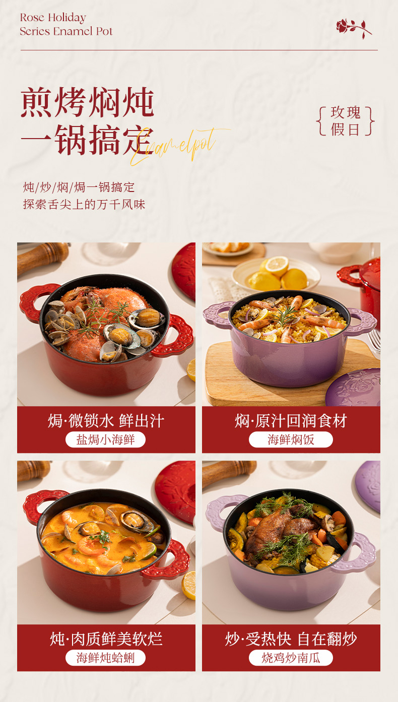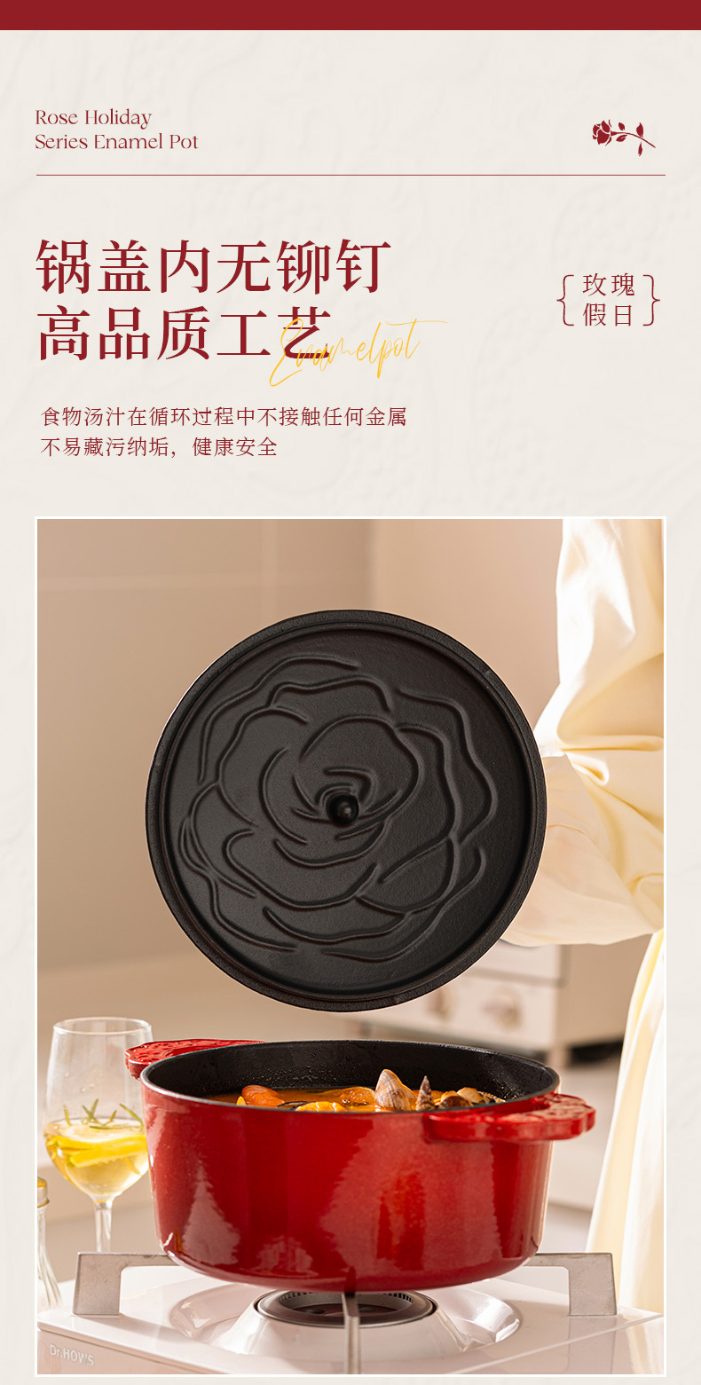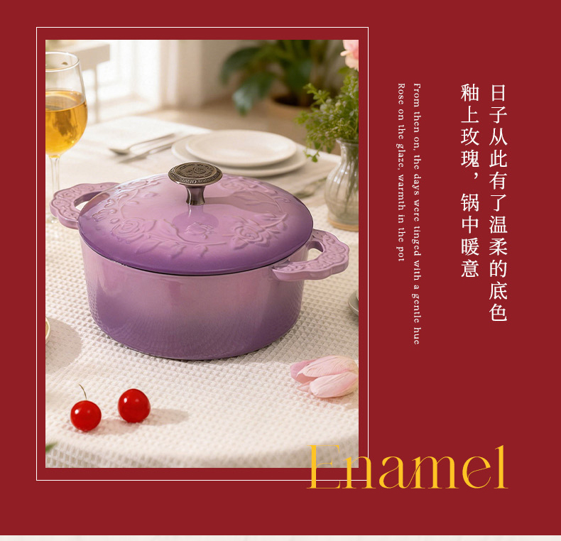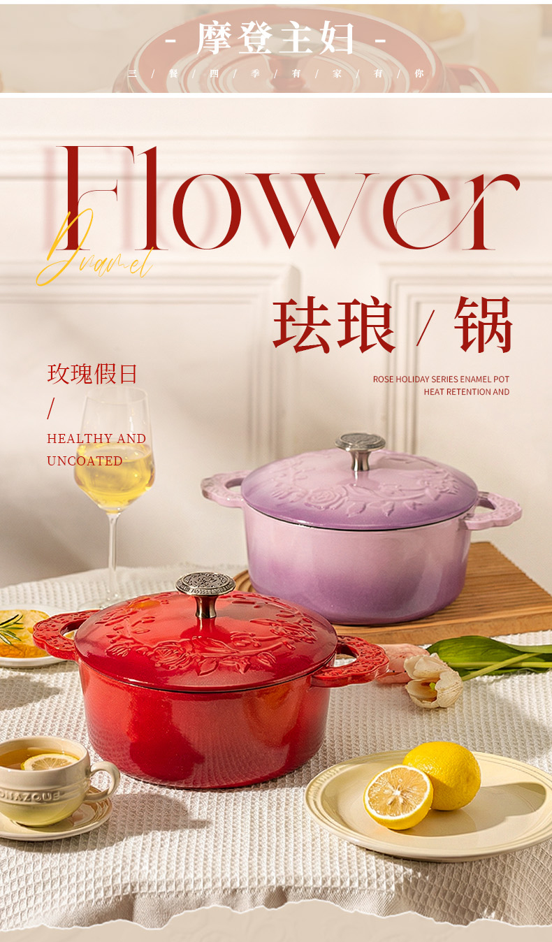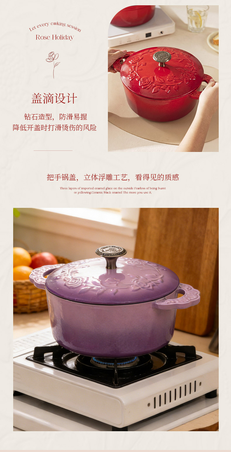 摩登主妇玫瑰假日珐琅铸铁锅新年新婚礼物家用砂锅不粘锅煲汤炖锅