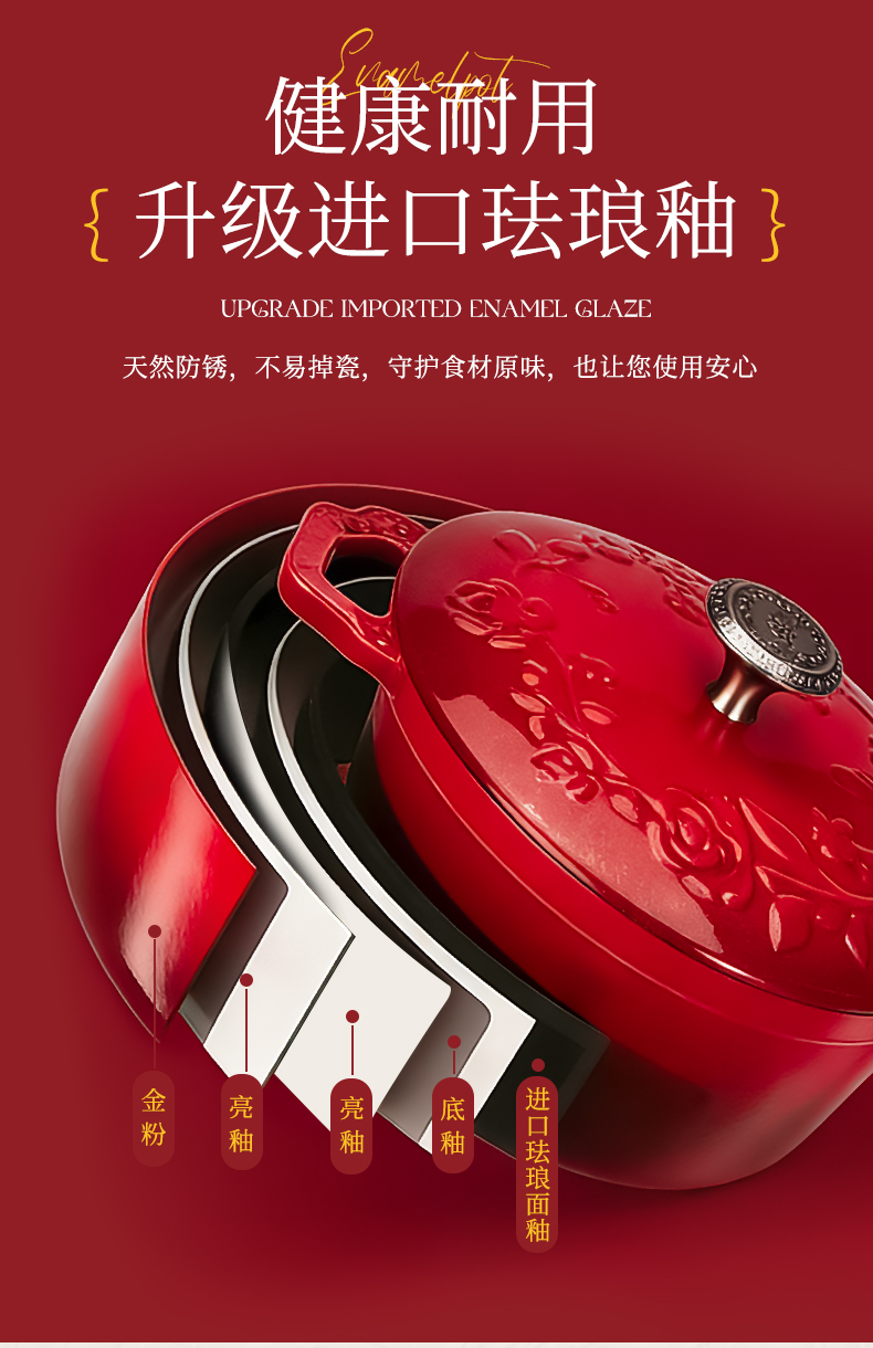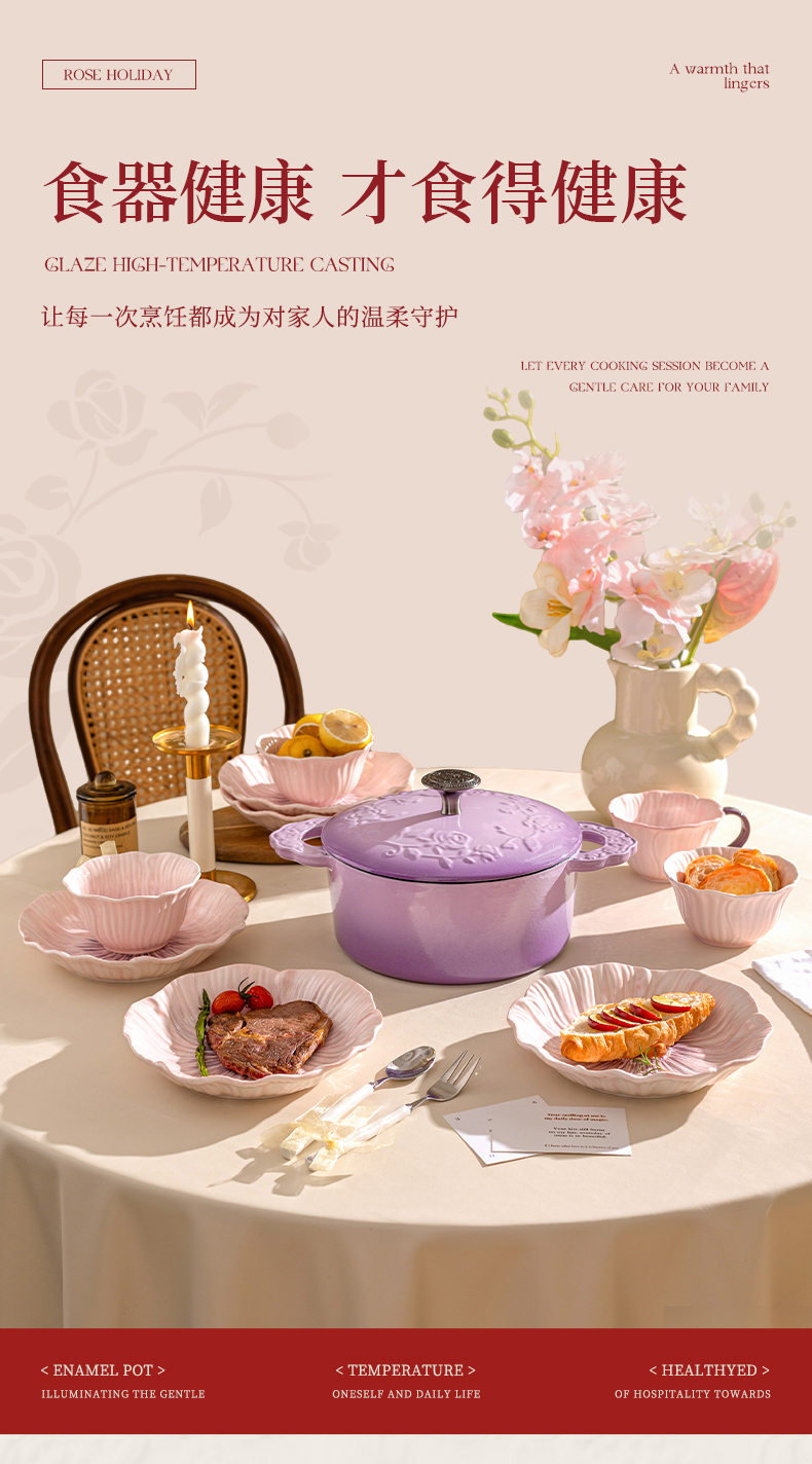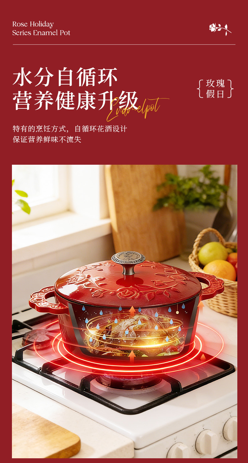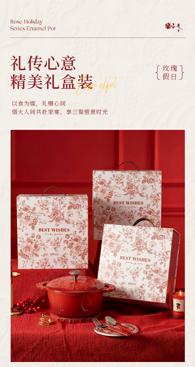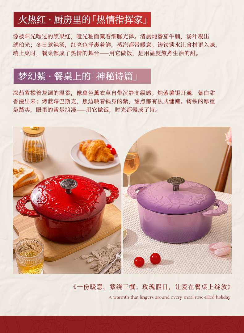 摩登主妇玫瑰假日珐琅铸铁锅新年新婚礼物家用砂锅不粘锅煲汤炖锅