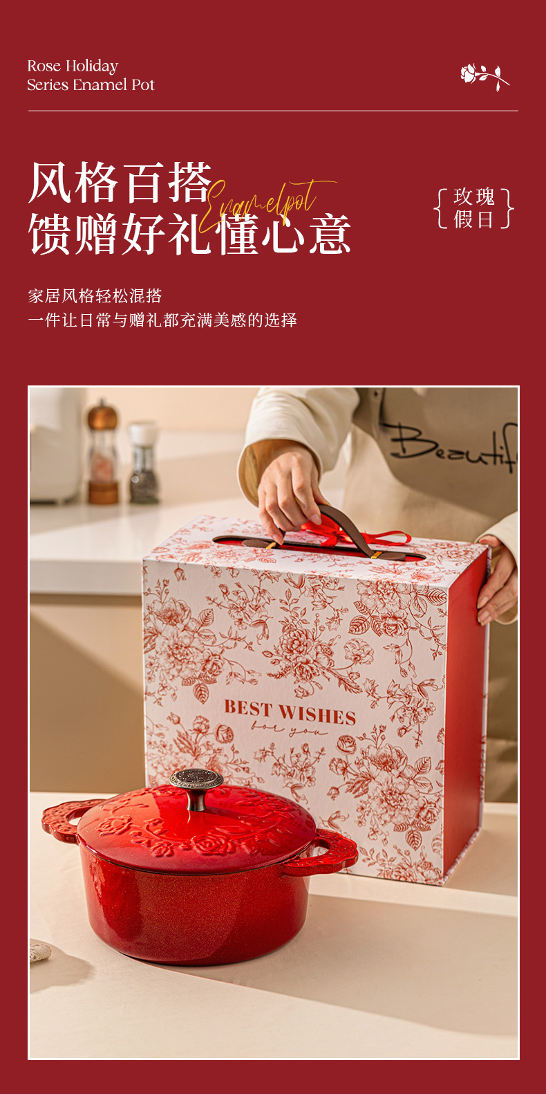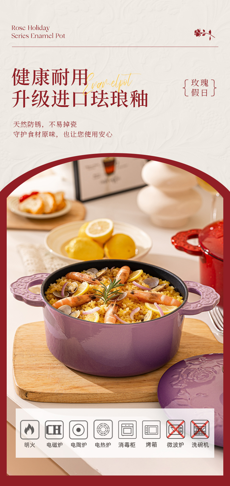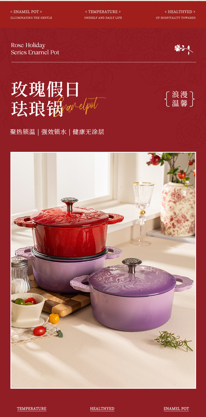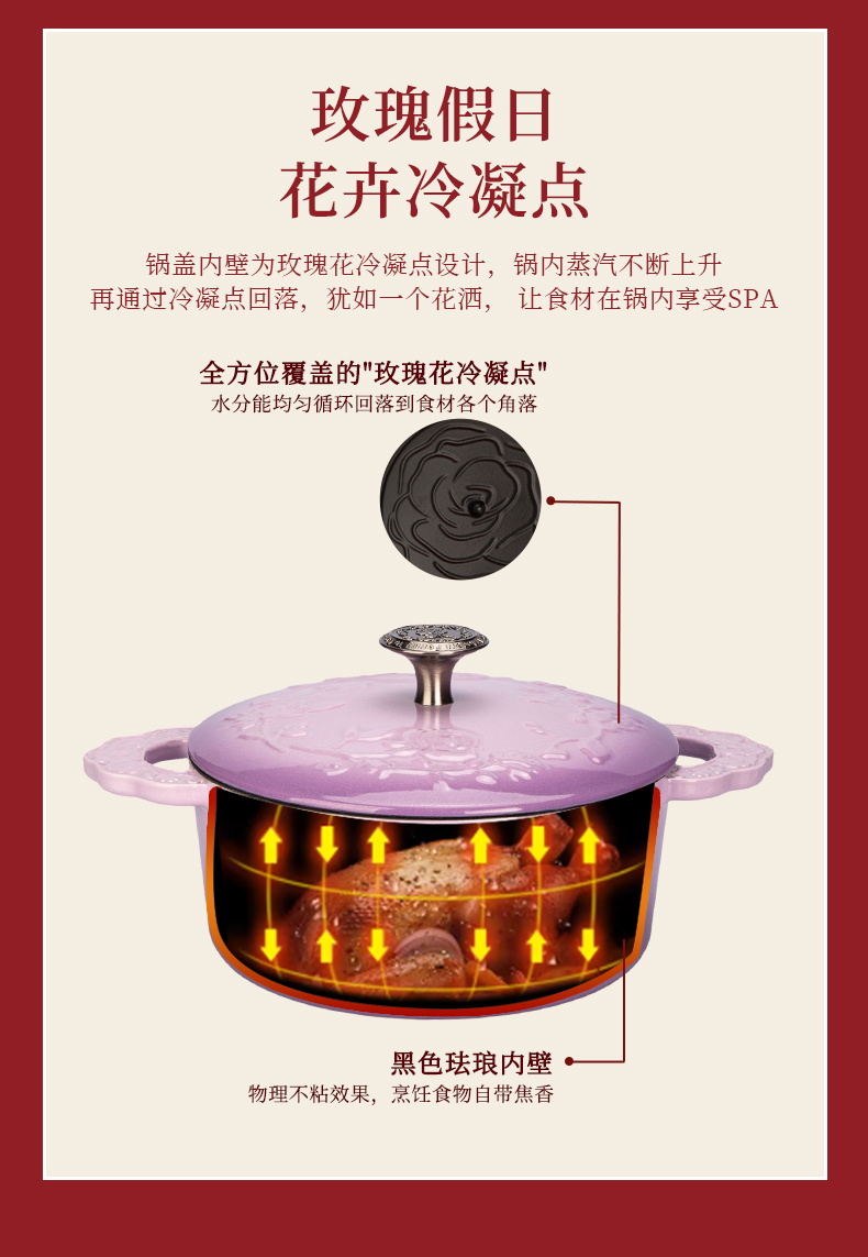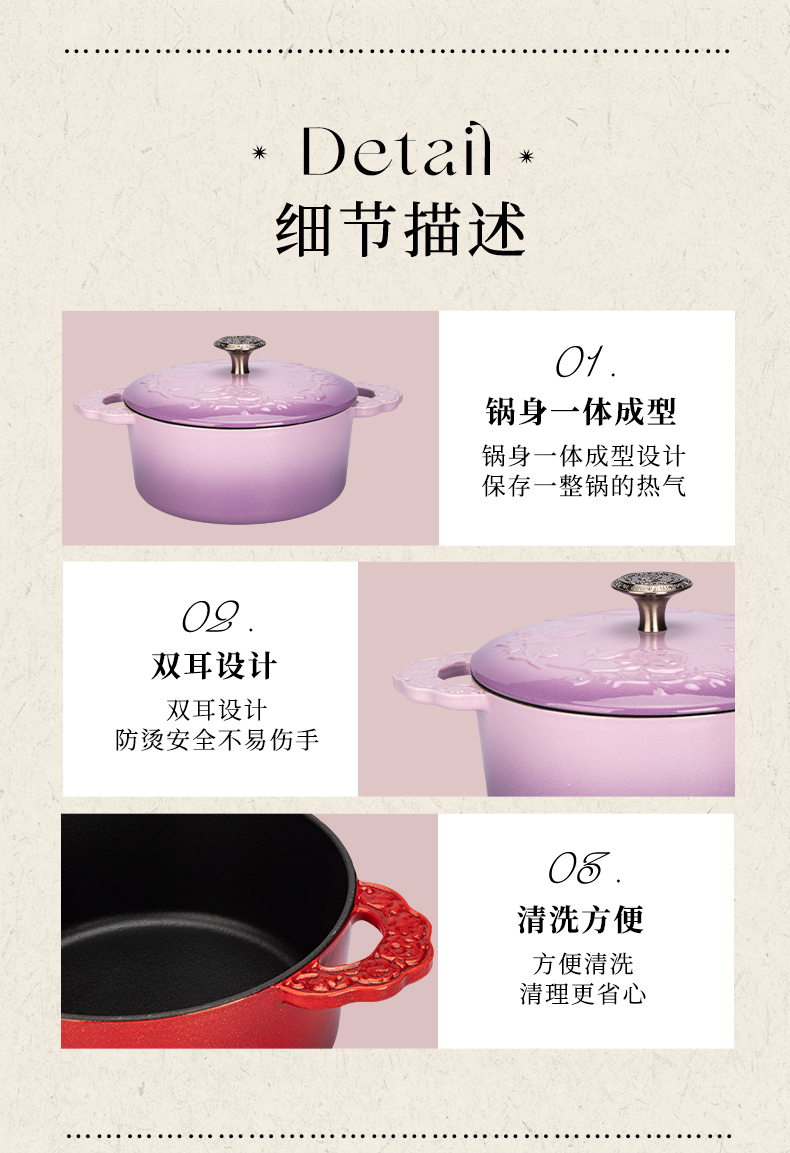 摩登主妇玫瑰假日珐琅铸铁锅新年新婚礼物家用砂锅不粘锅煲汤炖锅
