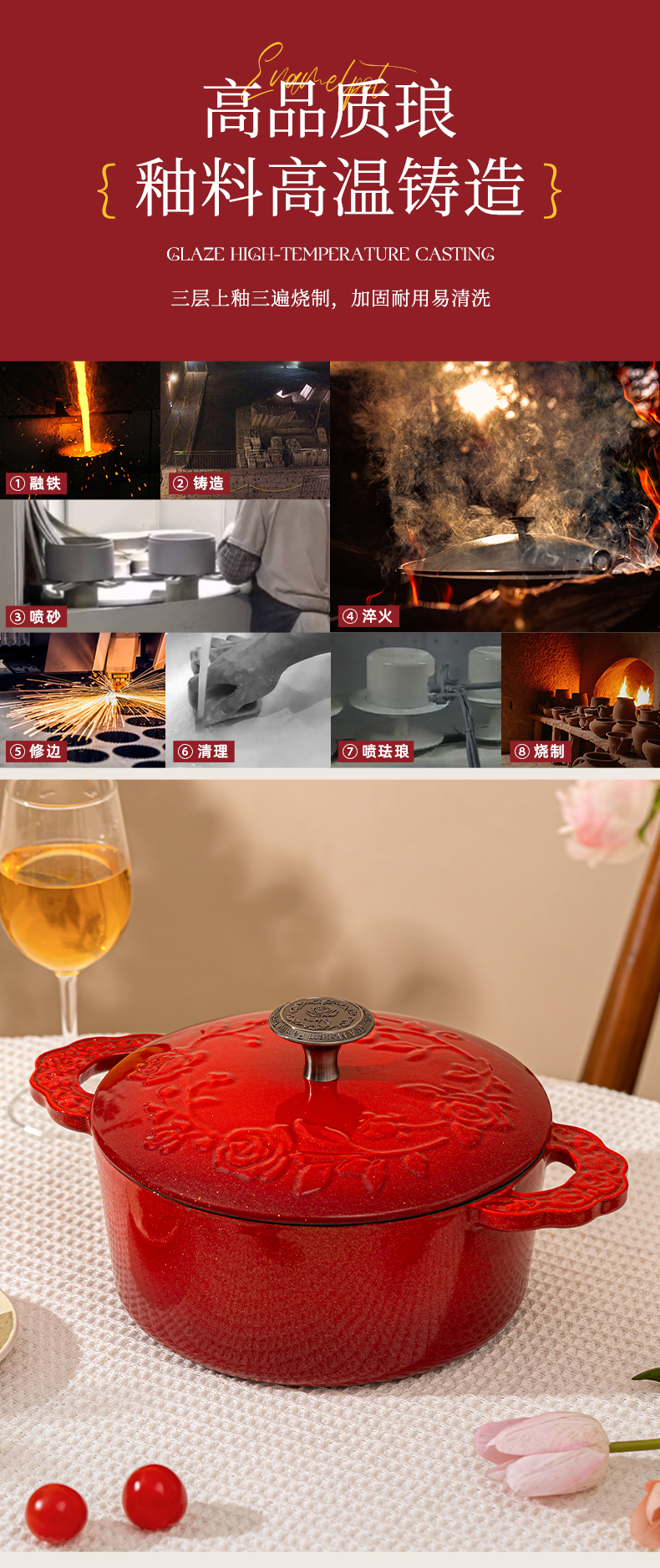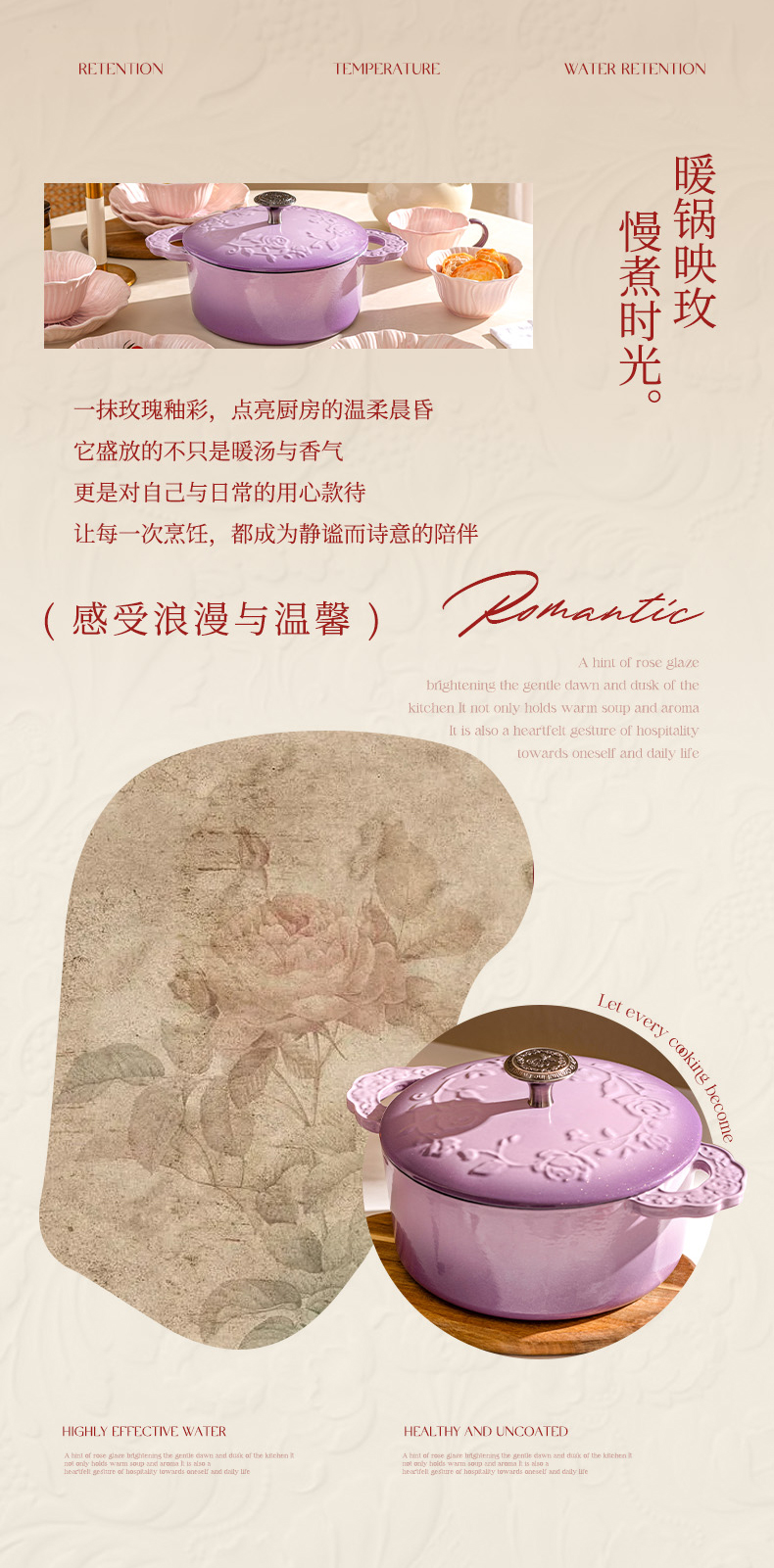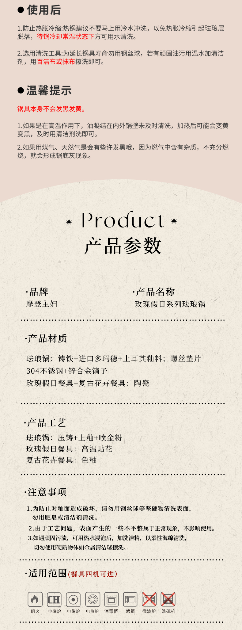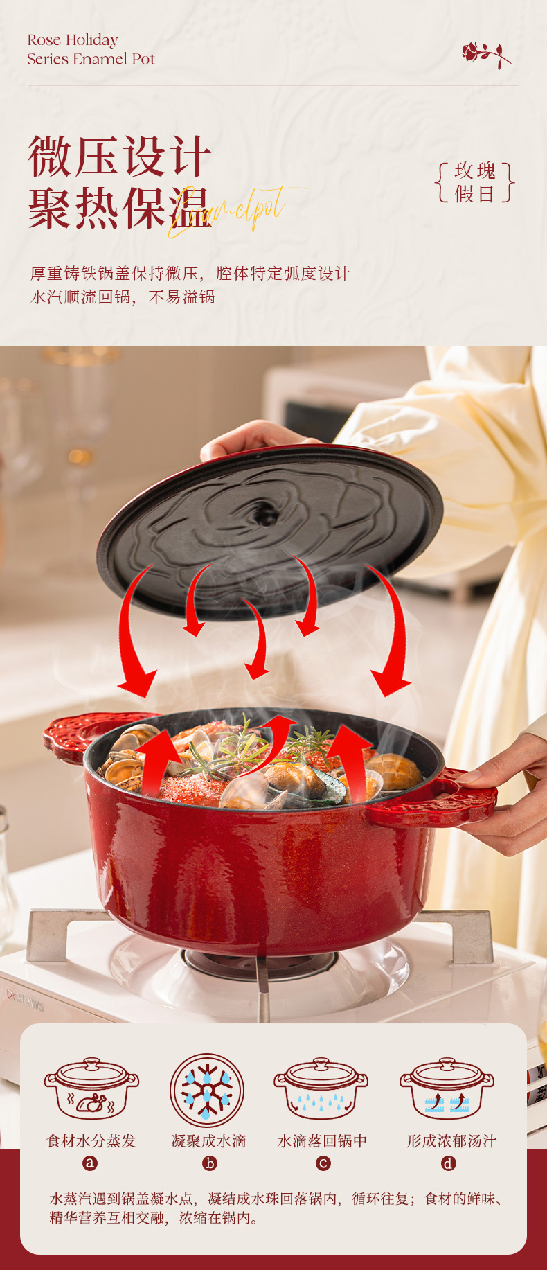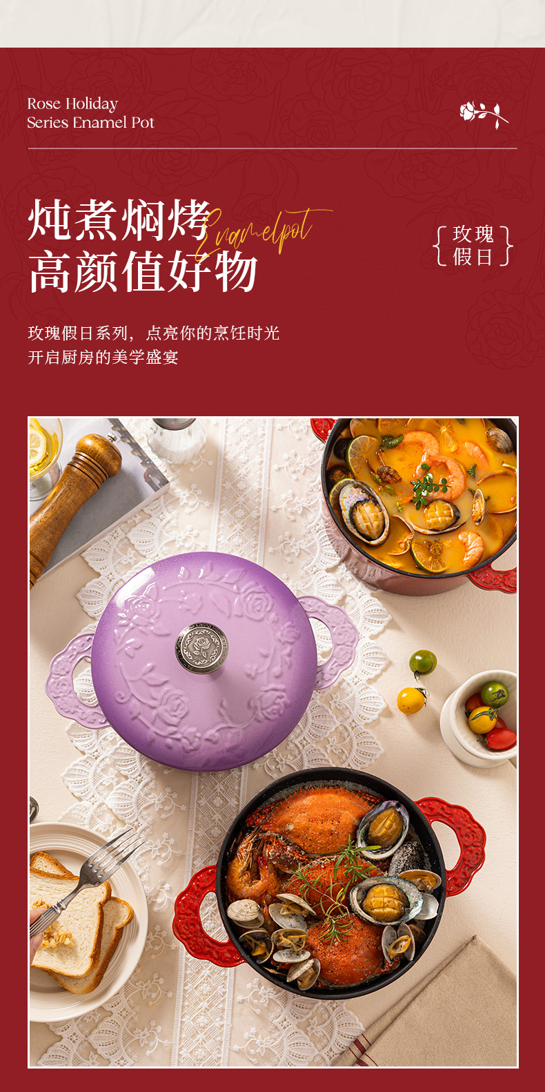摩登主妇玫瑰假日珐琅铸铁锅新年新婚礼物家用砂锅不粘锅煲汤炖锅