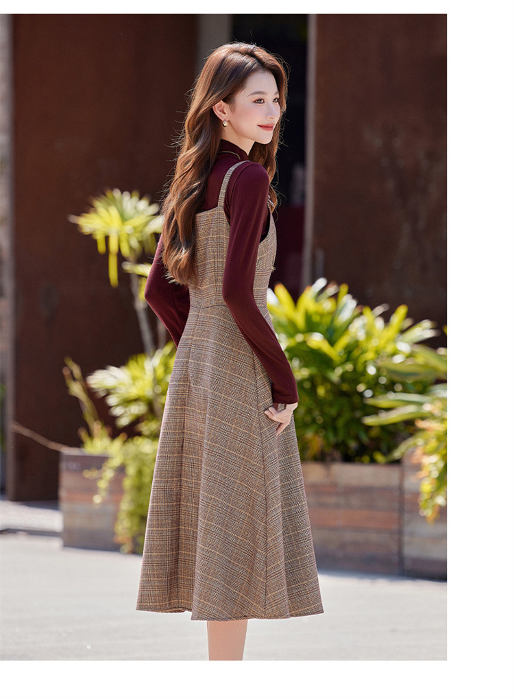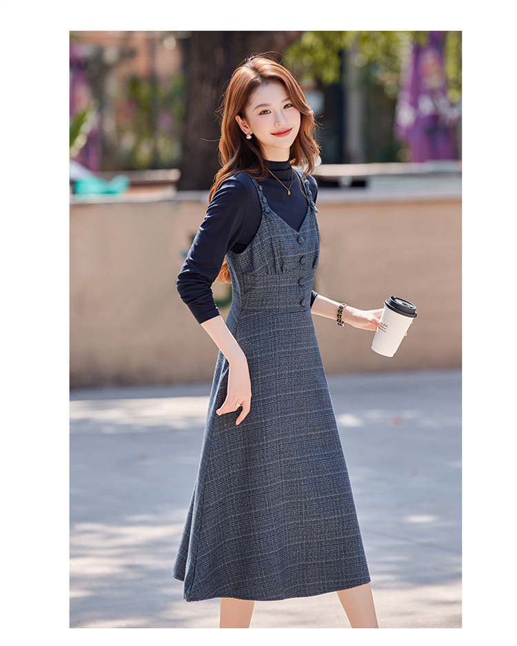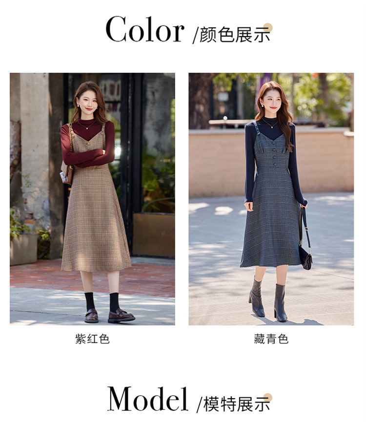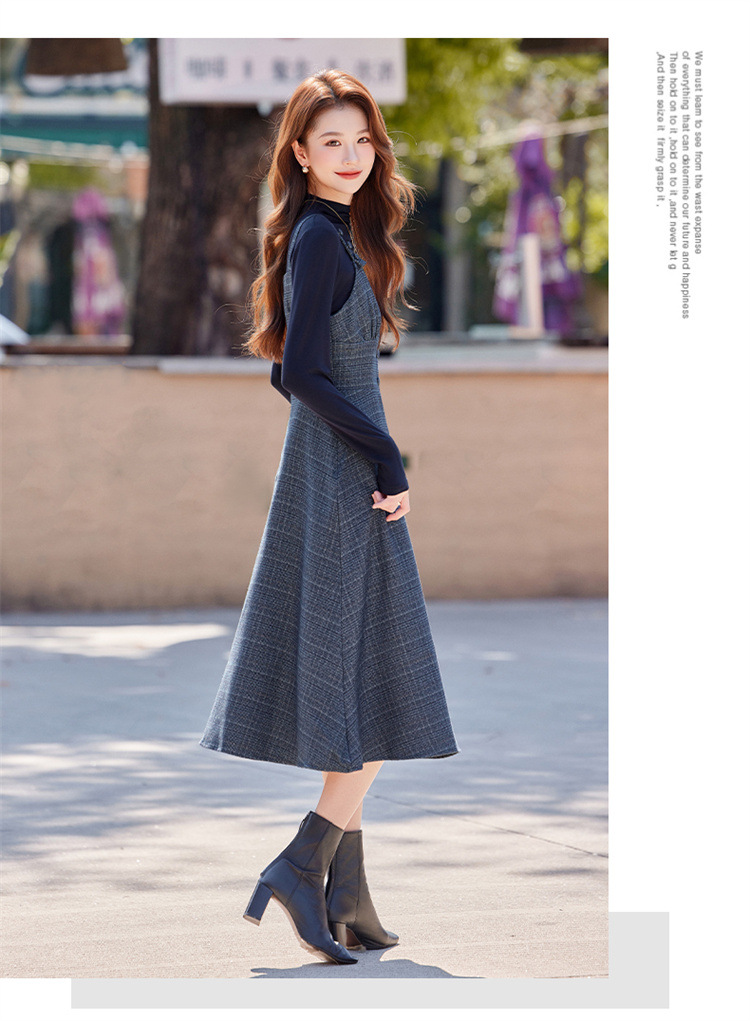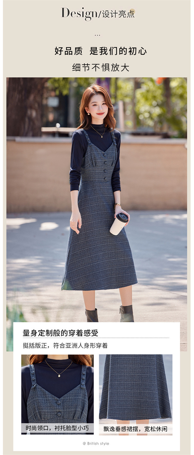 HR ABS25171法式时尚两件套裙洋气复古格纹长袖吊带裙两件套 商品图4