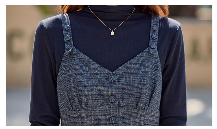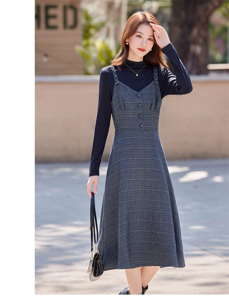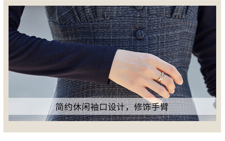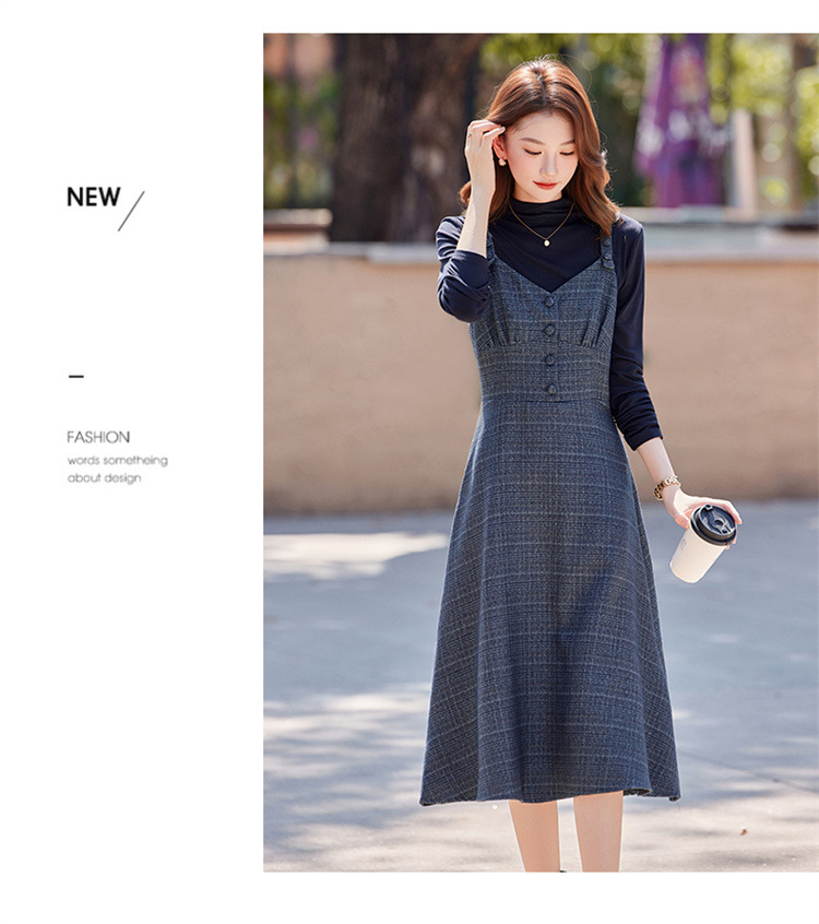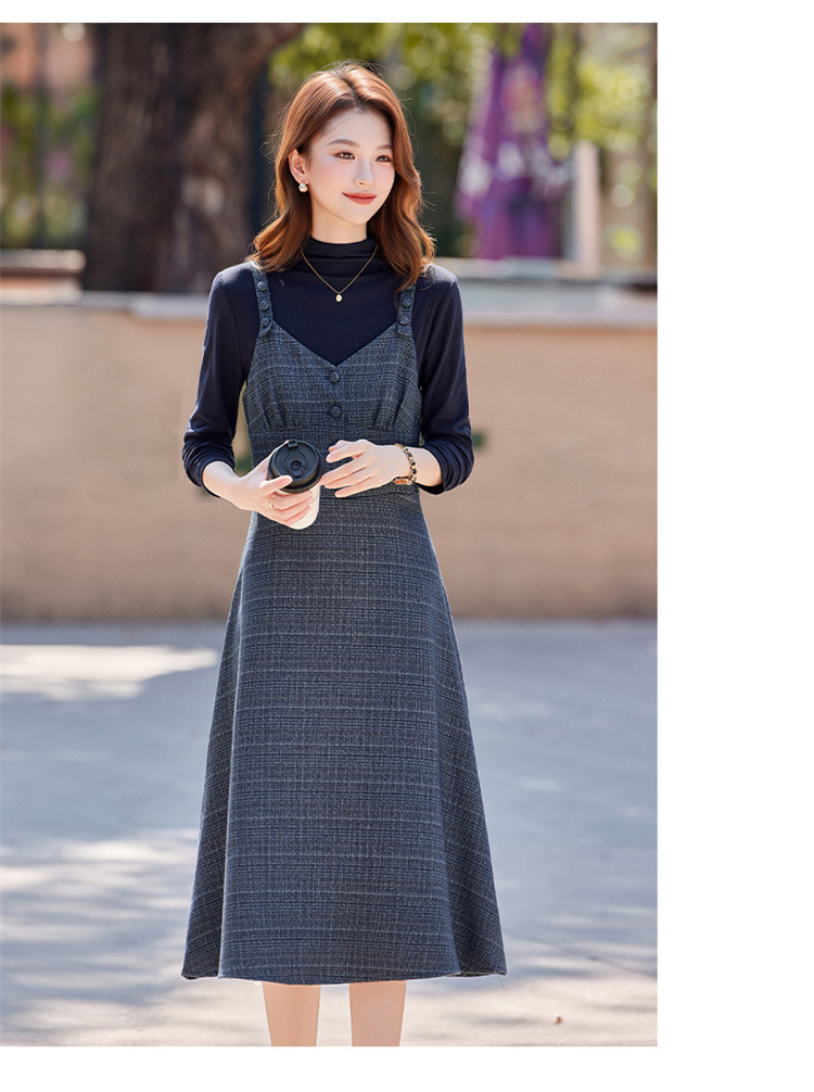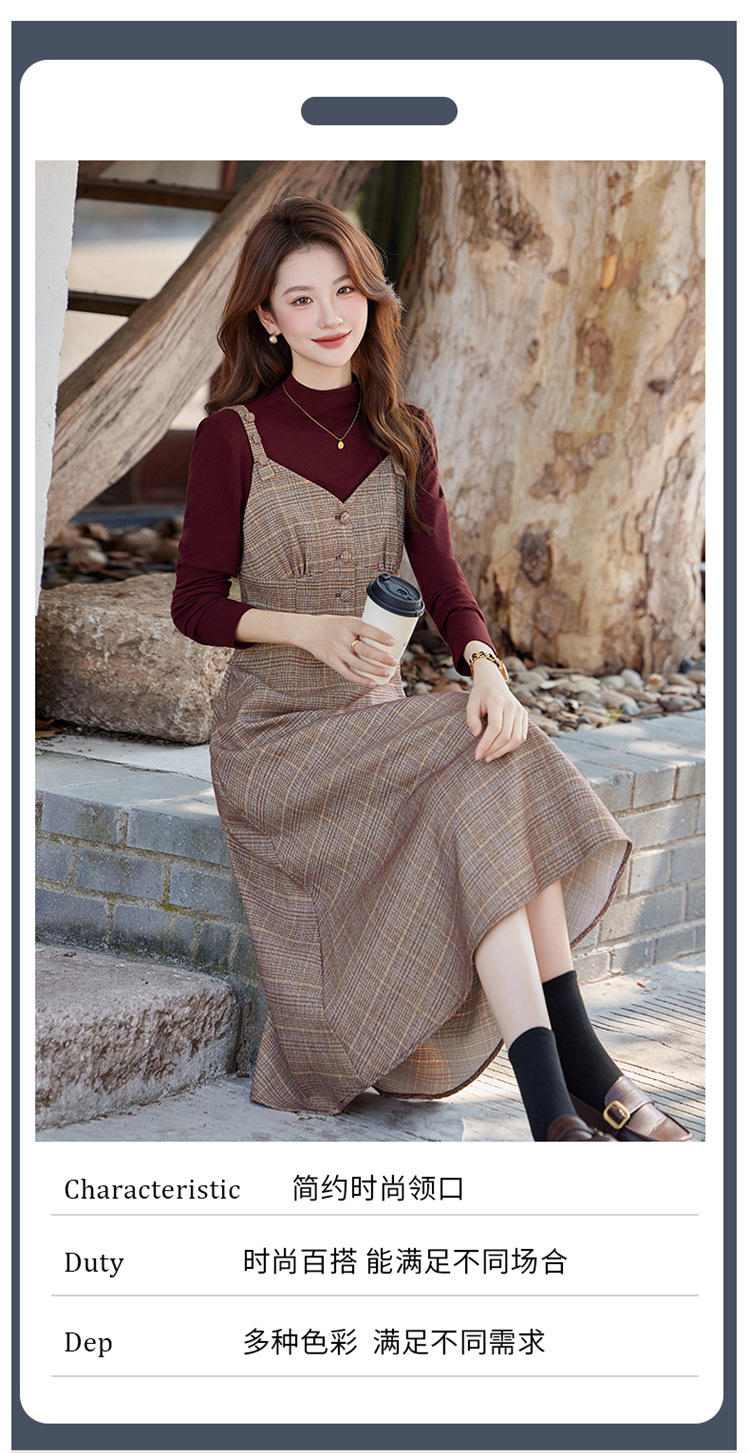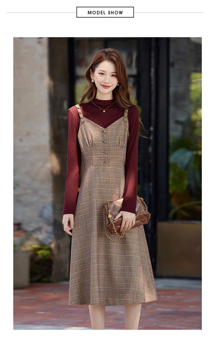 HR ABS25171法式时尚两件套裙洋气复古格纹长袖吊带裙两件套 商品图4