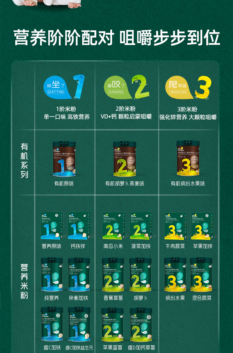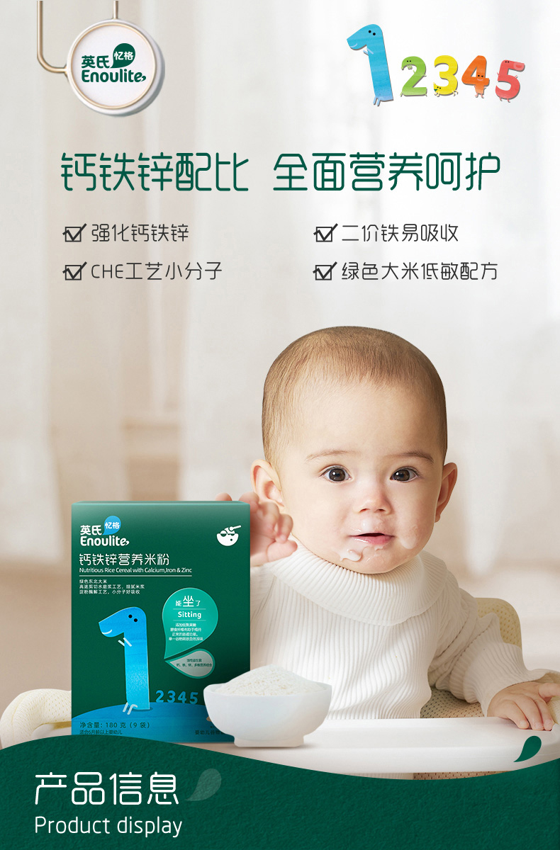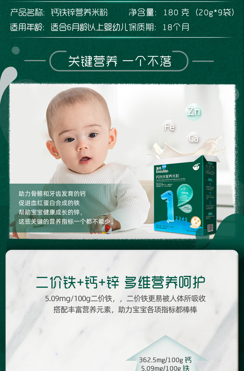 英氏*钙铁锌营养米粉1段180克(9袋)