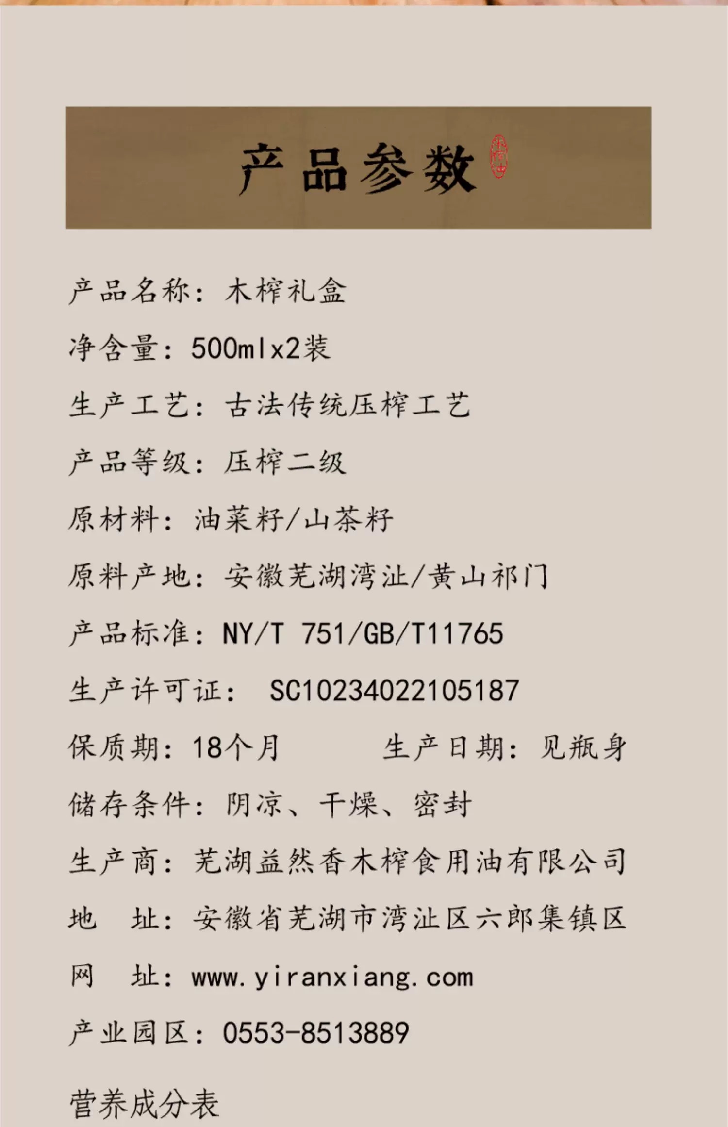 君呼甄选 益然香木榨菜籽油礼盒装500ml*2