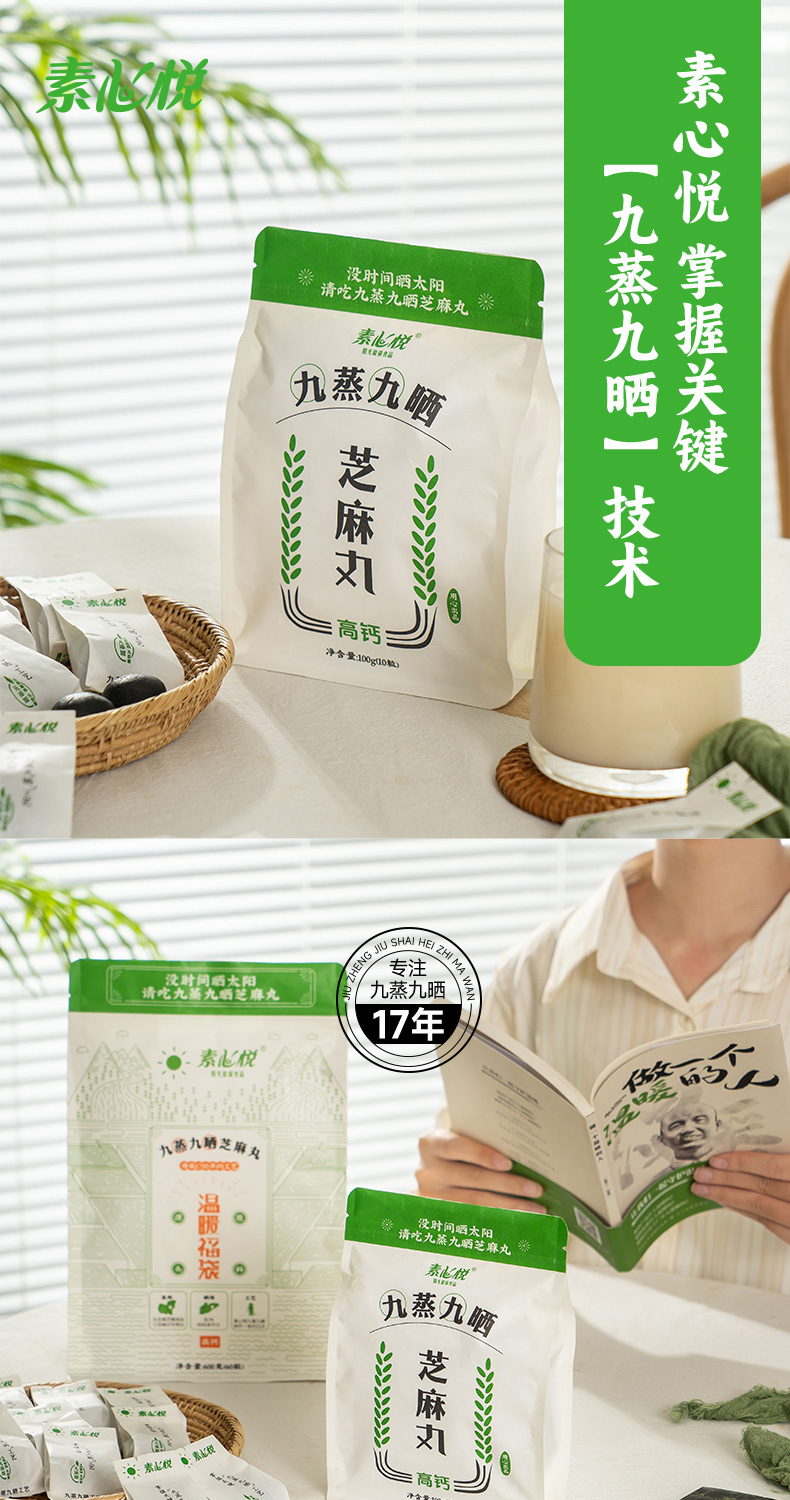 【买赠】九蒸九晒芝麻丸 | 100g/600g 钙质蛋白质维生素补充 细腻不油 全降解环保包装 素心悦「建议每天早晚各1次,每次1-2粒,600g 装送 5 袋黄精茶」