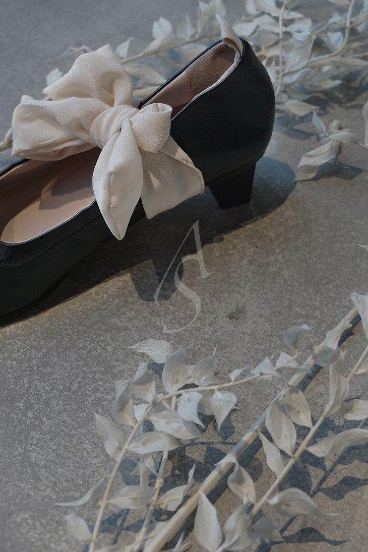 采用上等的意大利小羊皮制作,皮质细腻而柔软,脚背缩褶令穿着更加舒适。微妙的方头轮廓,双层缝制的丝带呈现出微蓬的效果,更加轻盈柔美;亦可拆卸绑带穿着。