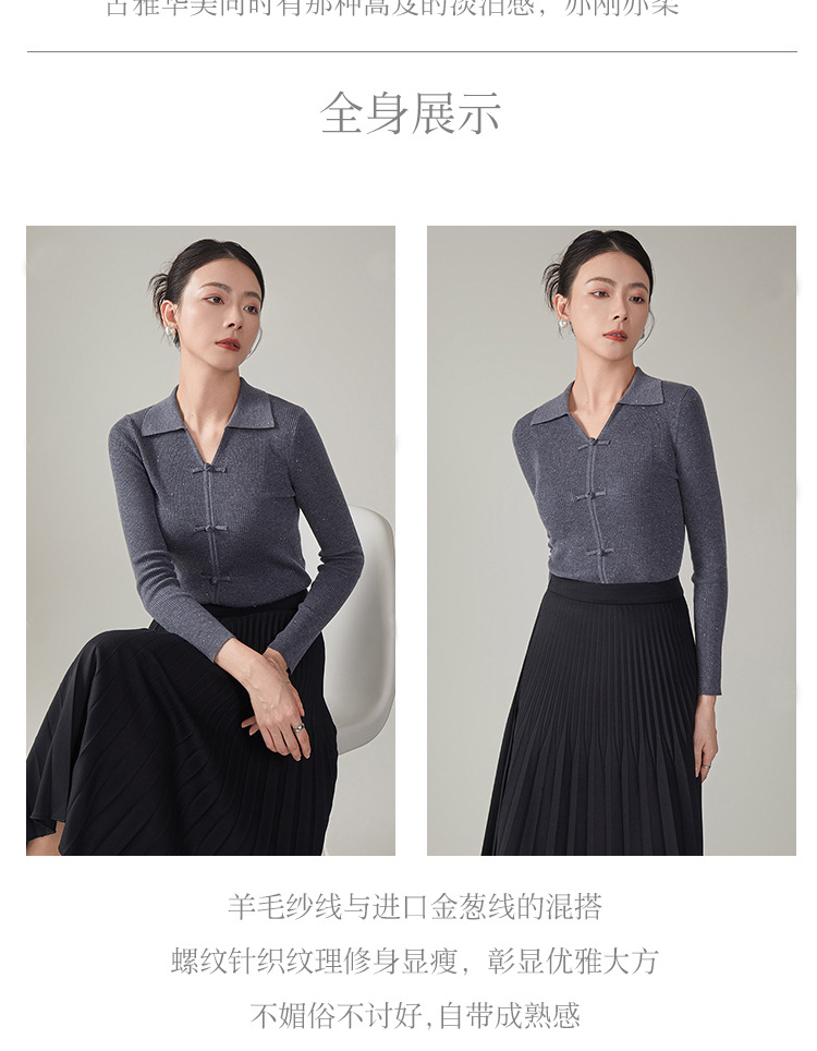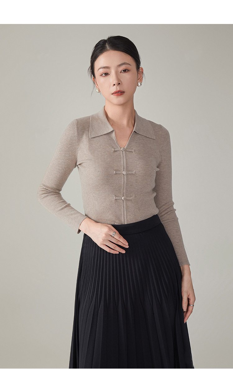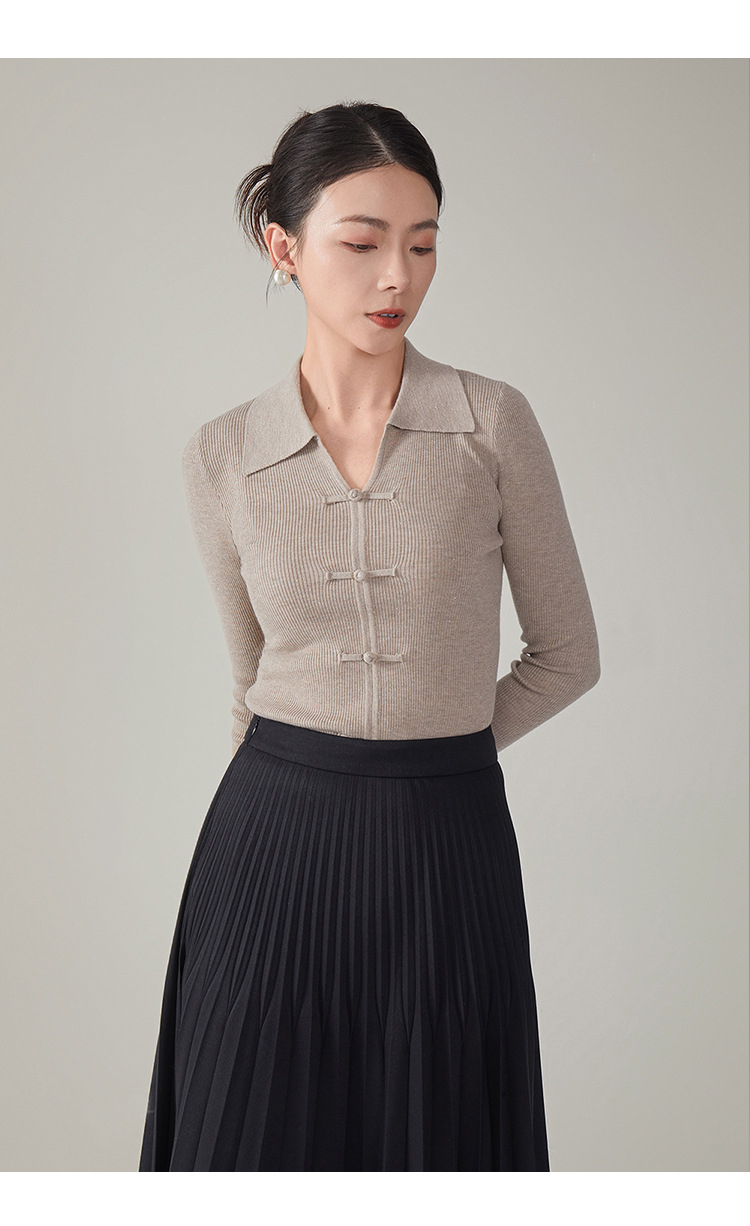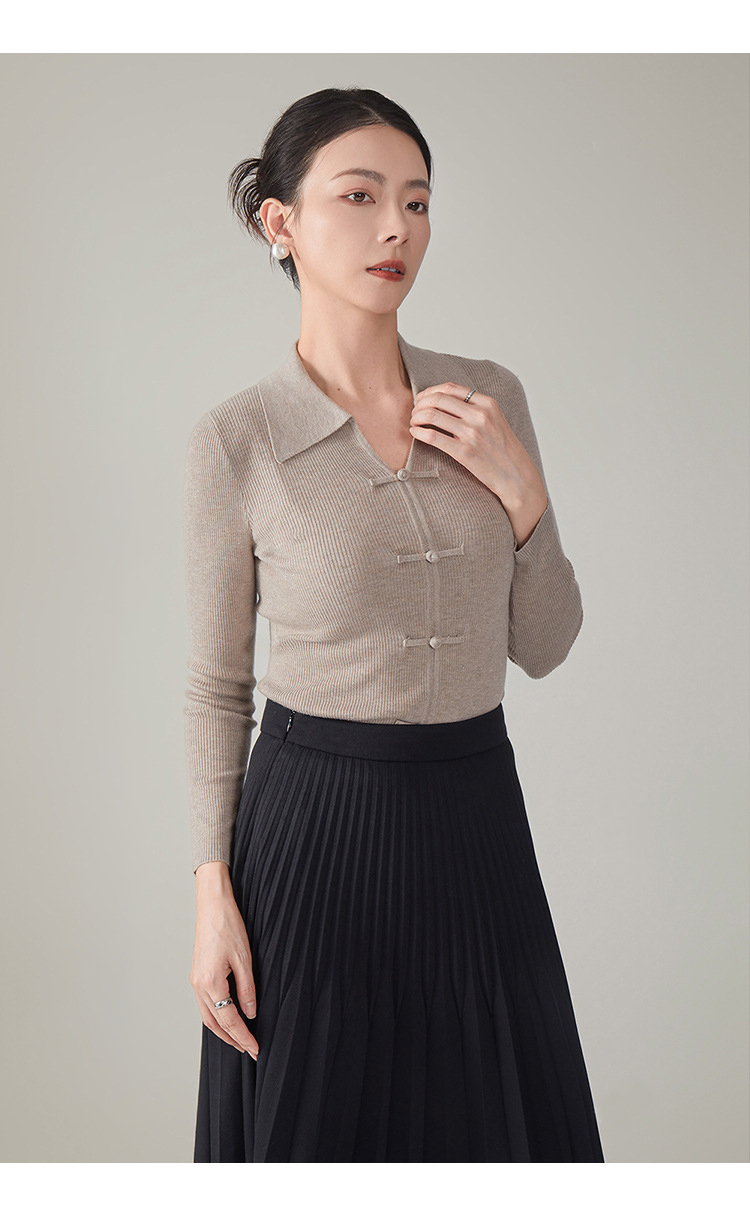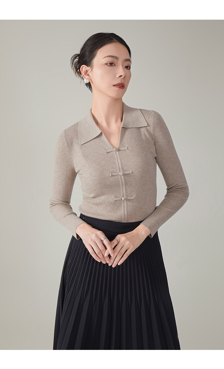【hrf】全新升级【铂金会员247/天猫339/差价92】(14920) 洛诗琳秋季新款翻领简约新中式羊毛打底衫复古针织上衣