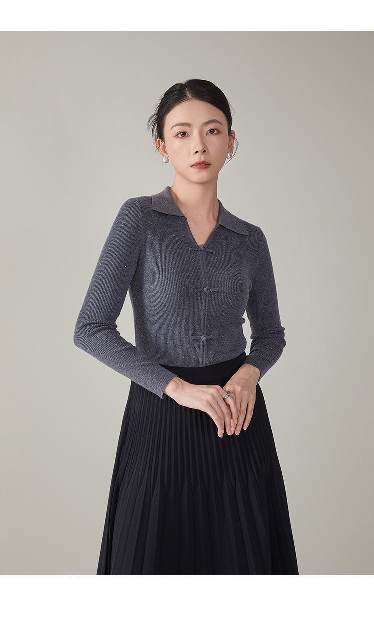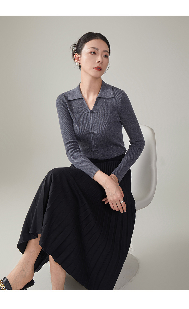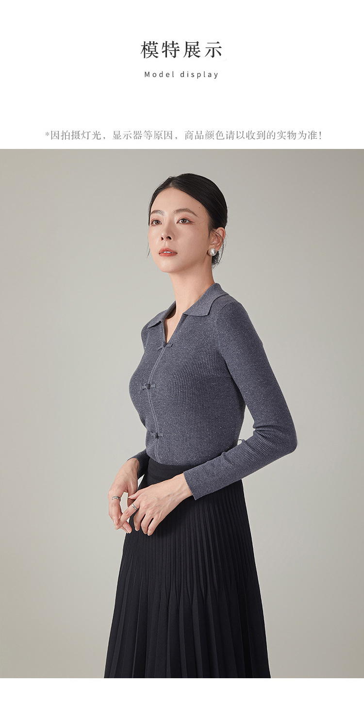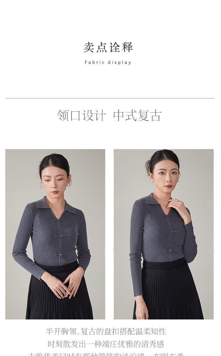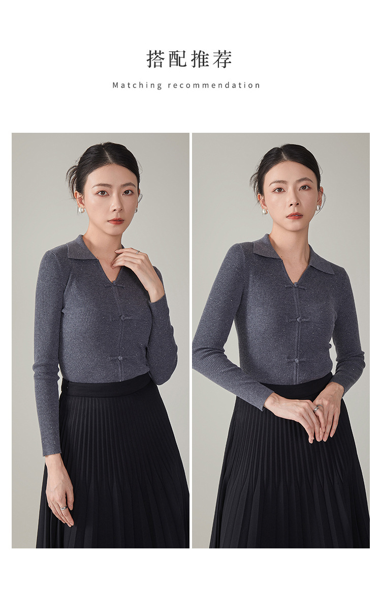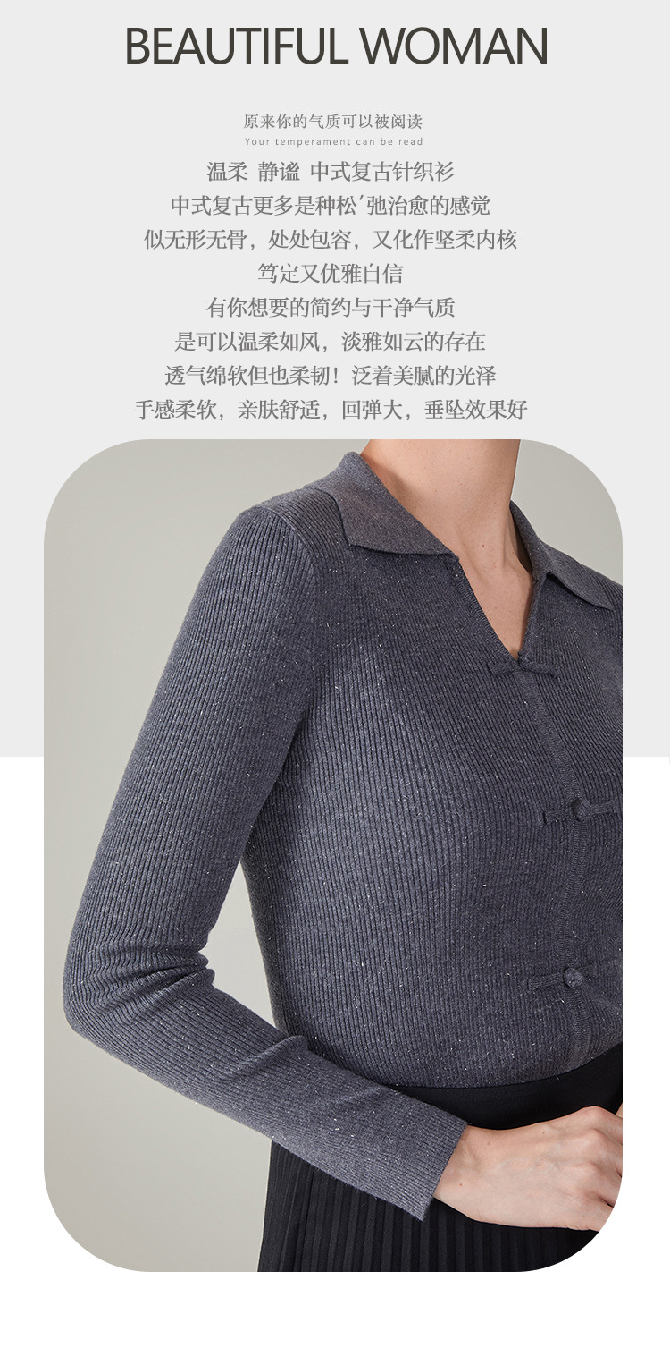 【hrf】全新升级【铂金会员247/天猫339/差价92】(14920) 洛诗琳秋季新款翻领简约新中式羊毛打底衫复古针织上衣