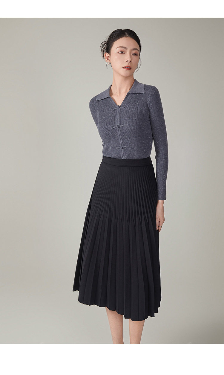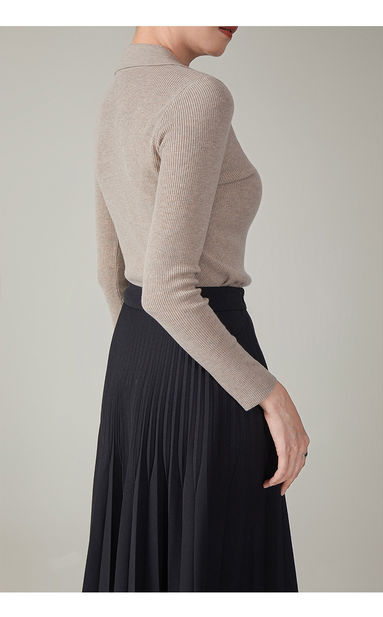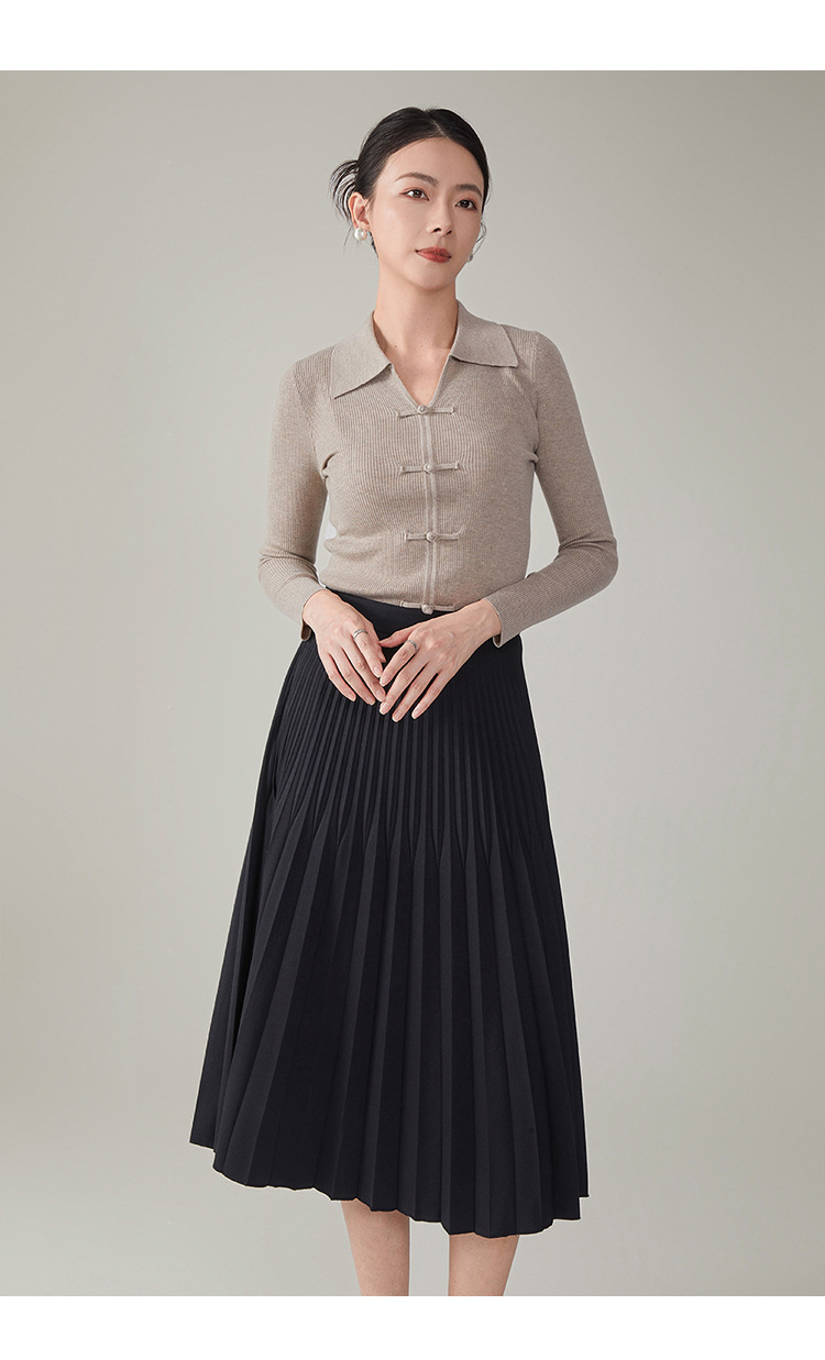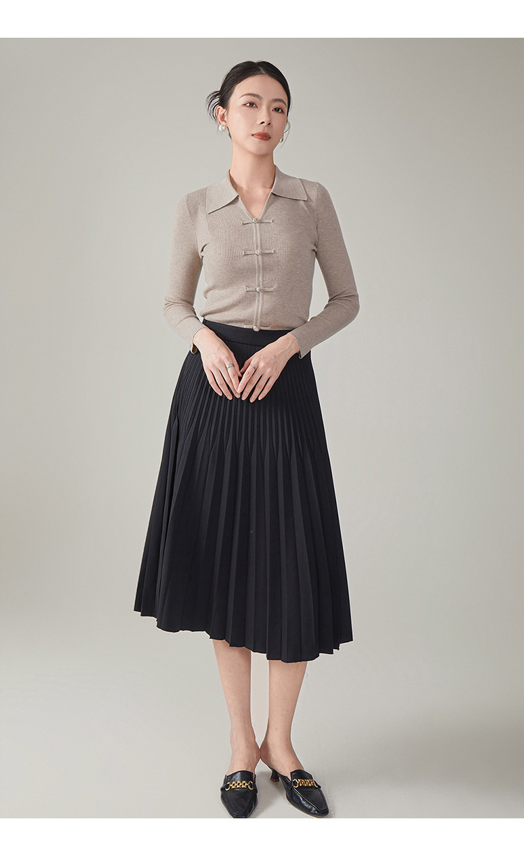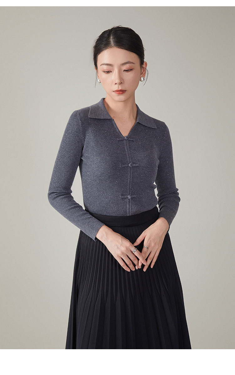 【hrf】全新升级【铂金会员247/天猫339/差价92】(14920) 洛诗琳秋季新款翻领简约新中式羊毛打底衫复古针织上衣