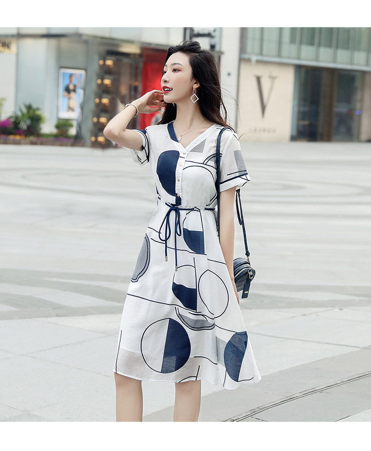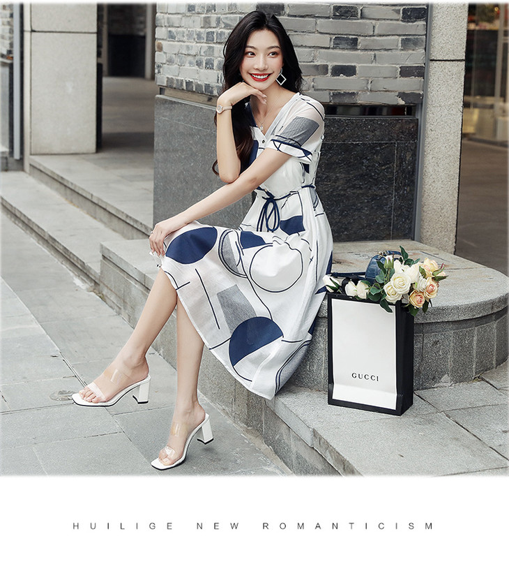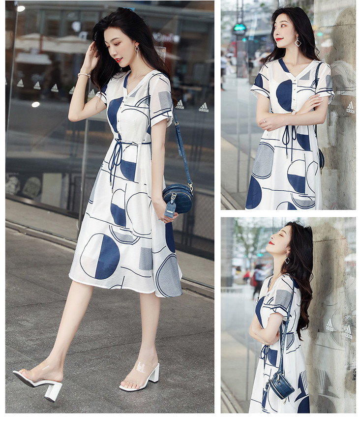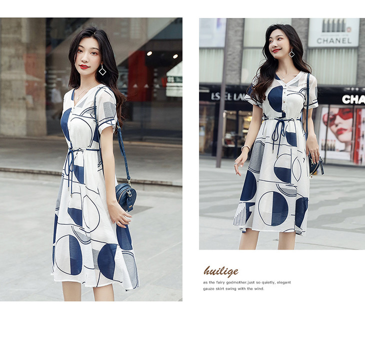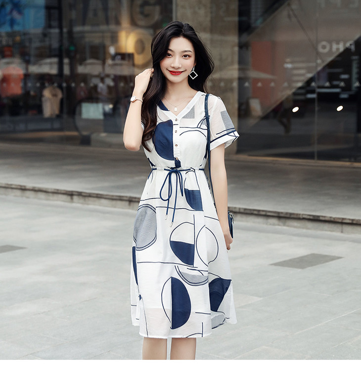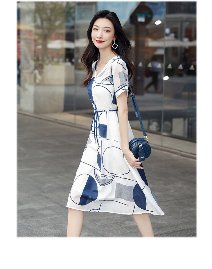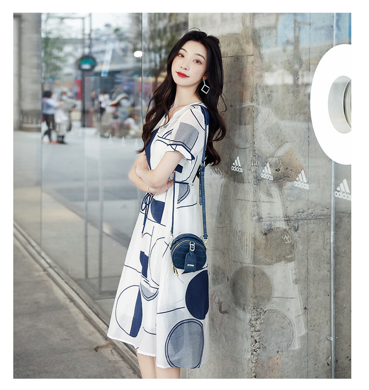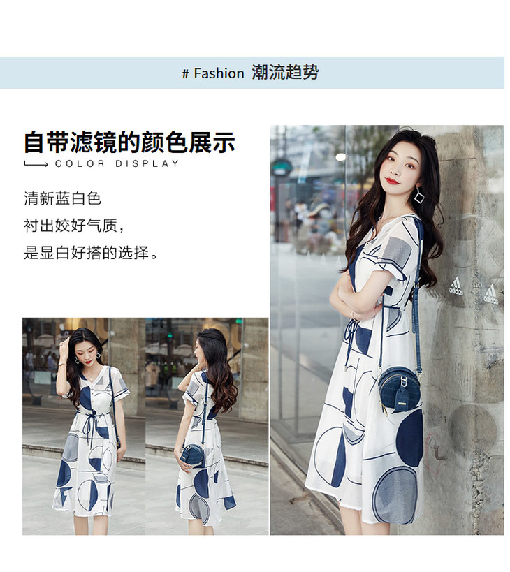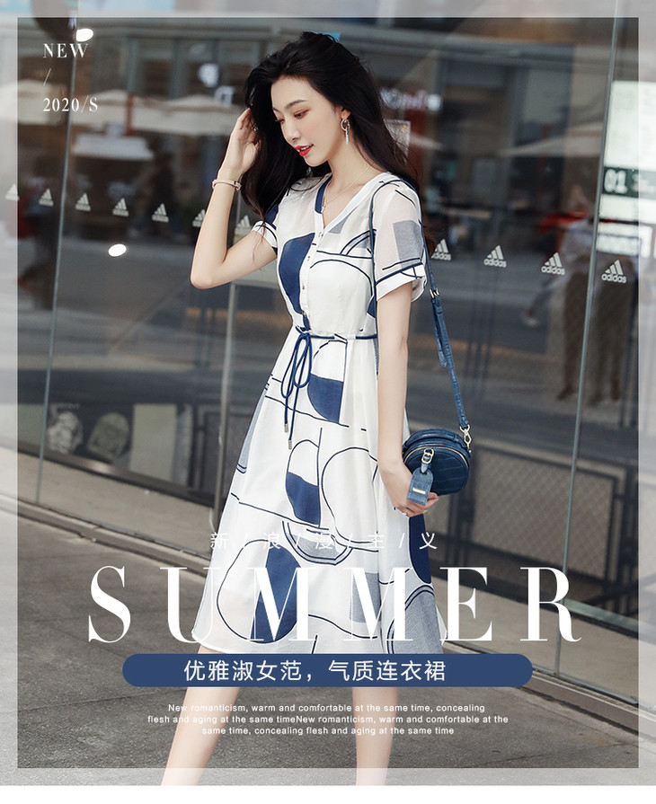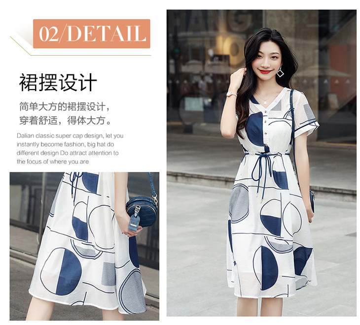 ZQ91 连衣裙女夏2021年新款休闲气质修身法式裙子雪纺碎花裙