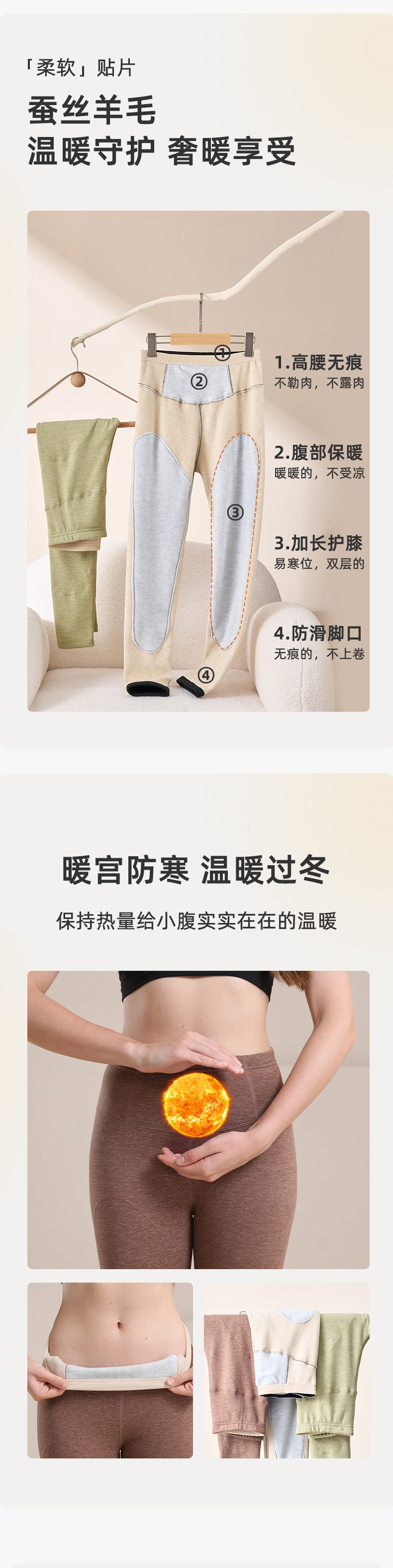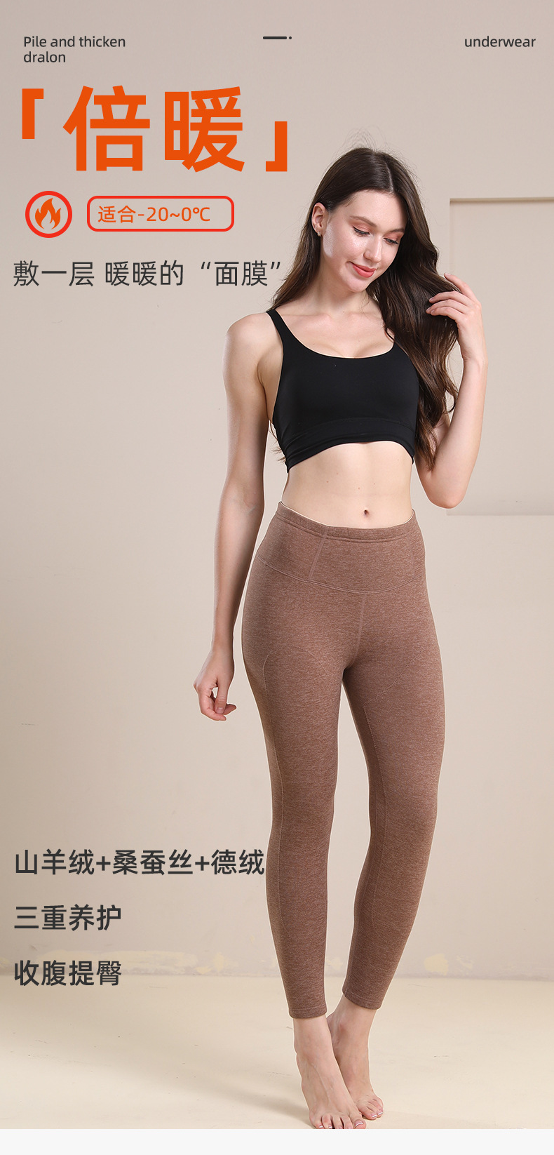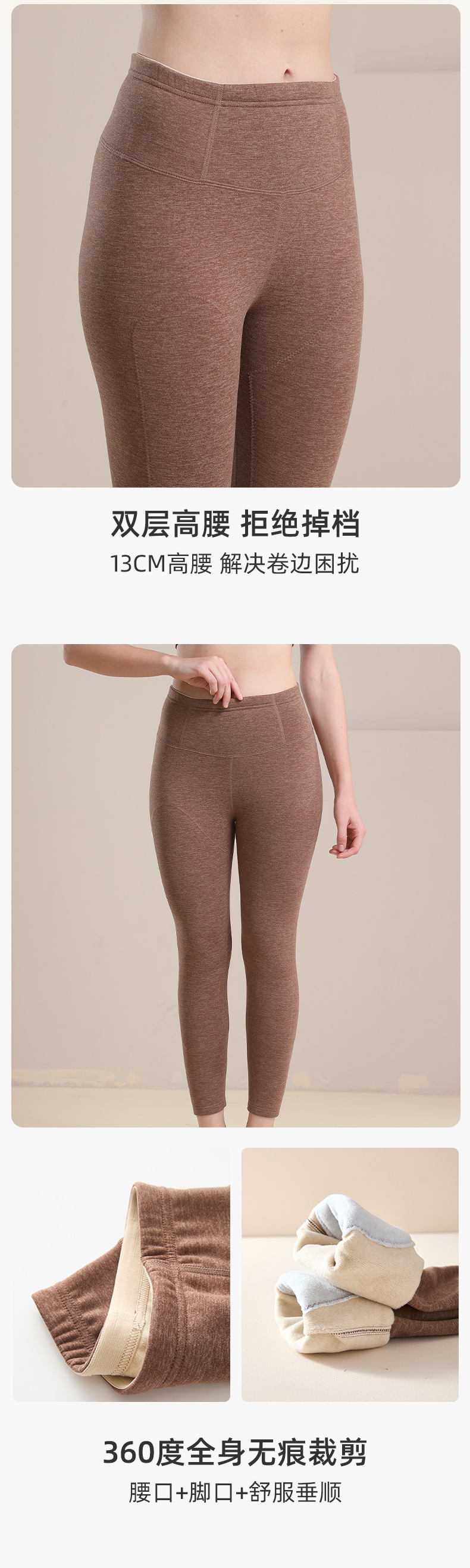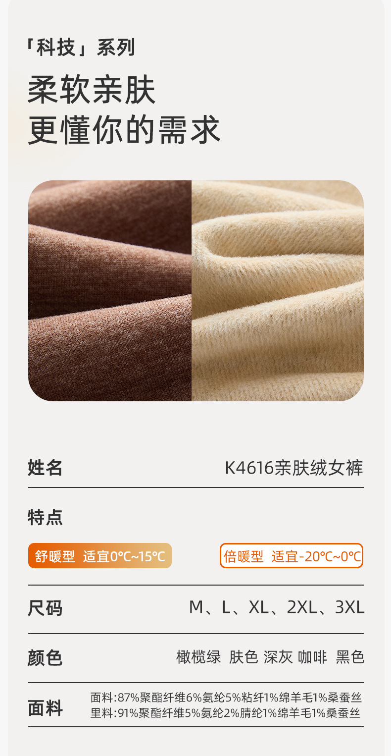 雀说 德绒高腰保暖裤内穿含蚕丝羊毛秋裤保暖裤女加绒加厚W4616