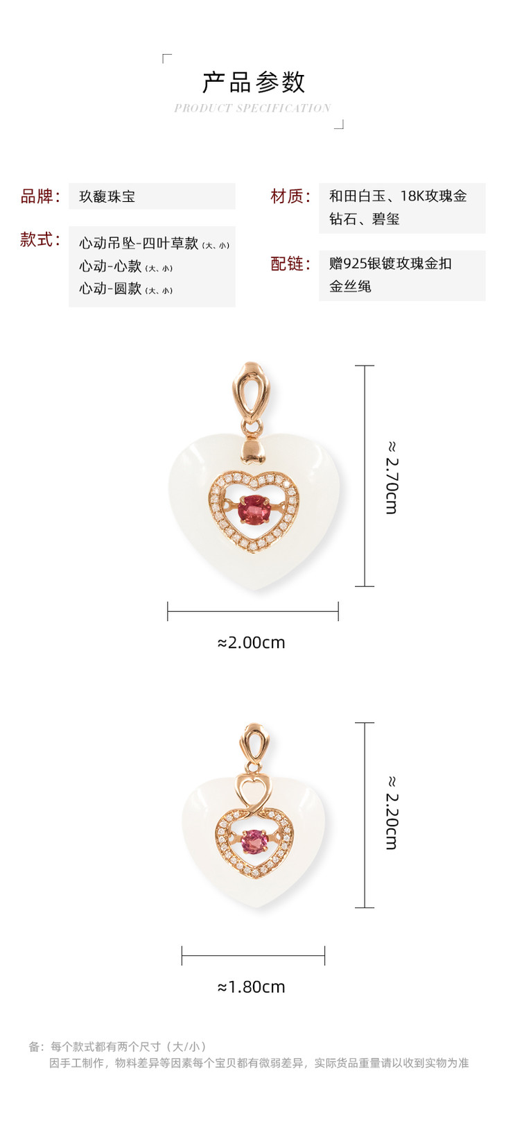 18k玫瑰金和田玉(白玉)心动系列吊坠