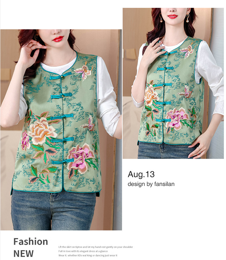 新中式国风无袖马甲,气质立领绣花盘扣上衣KQL-422H2590