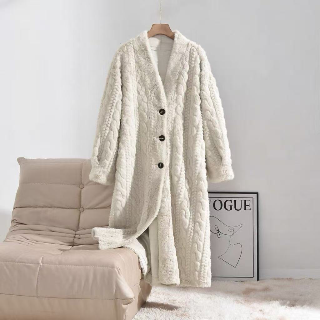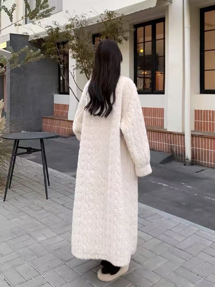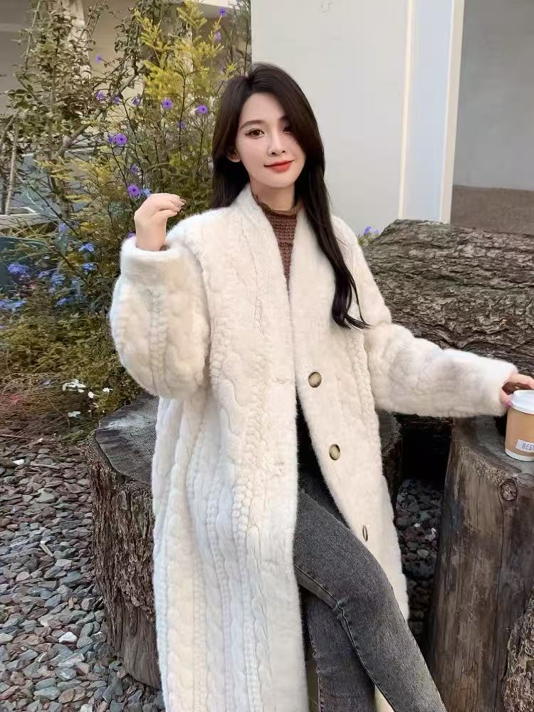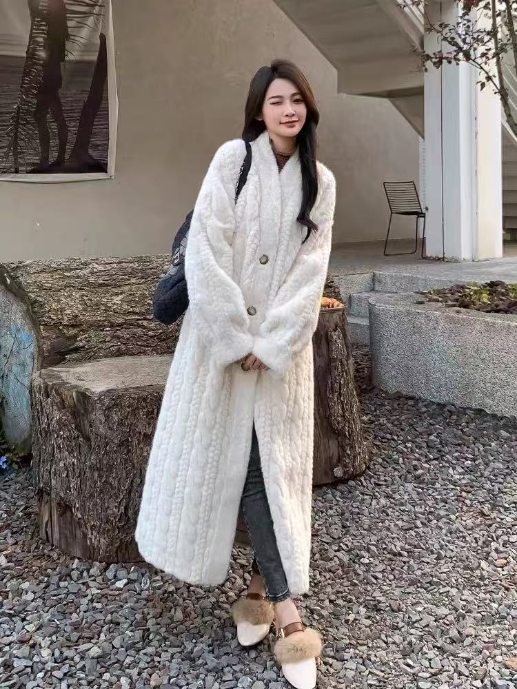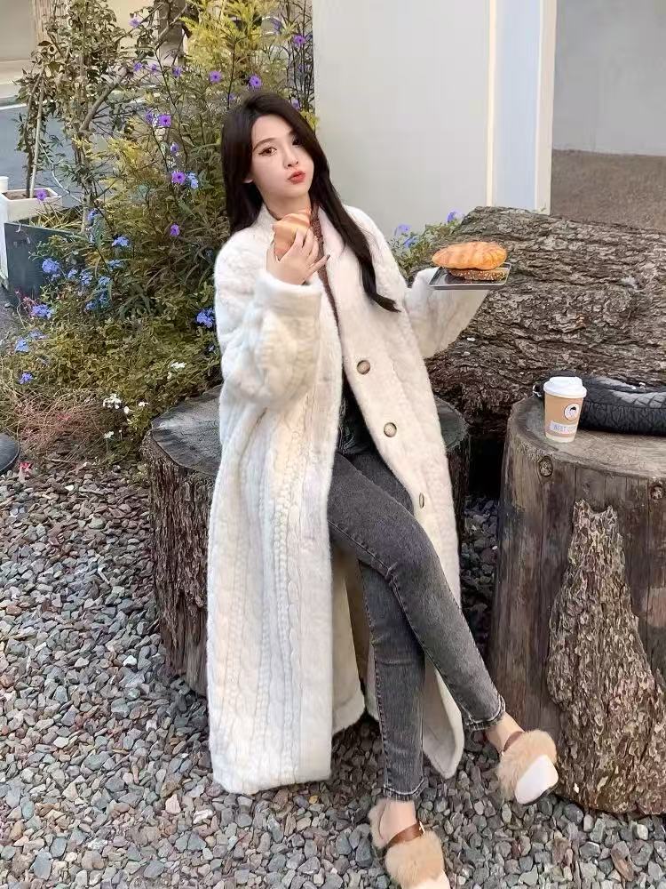 【冬季系列】环保水貂重工麻花厚款皮毛一体大衣外套-喜出