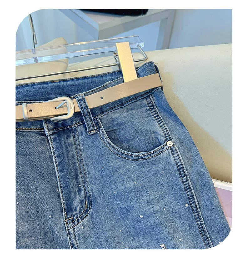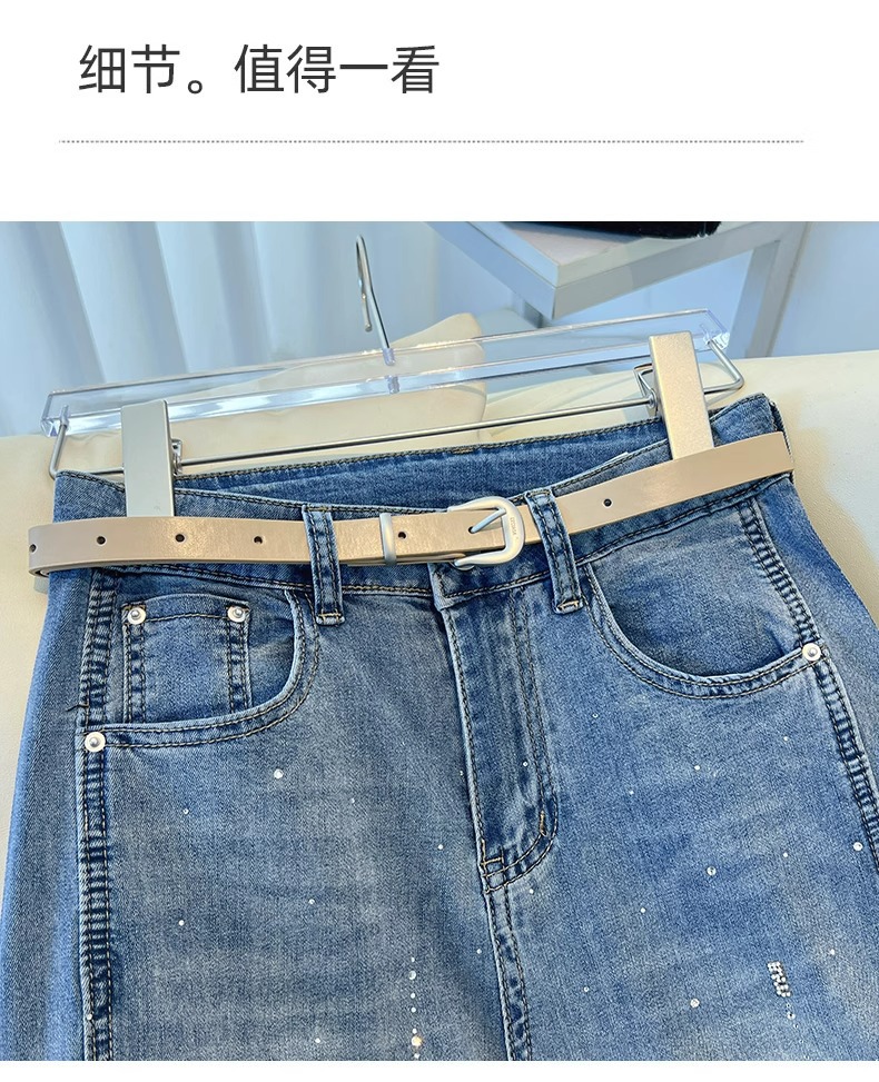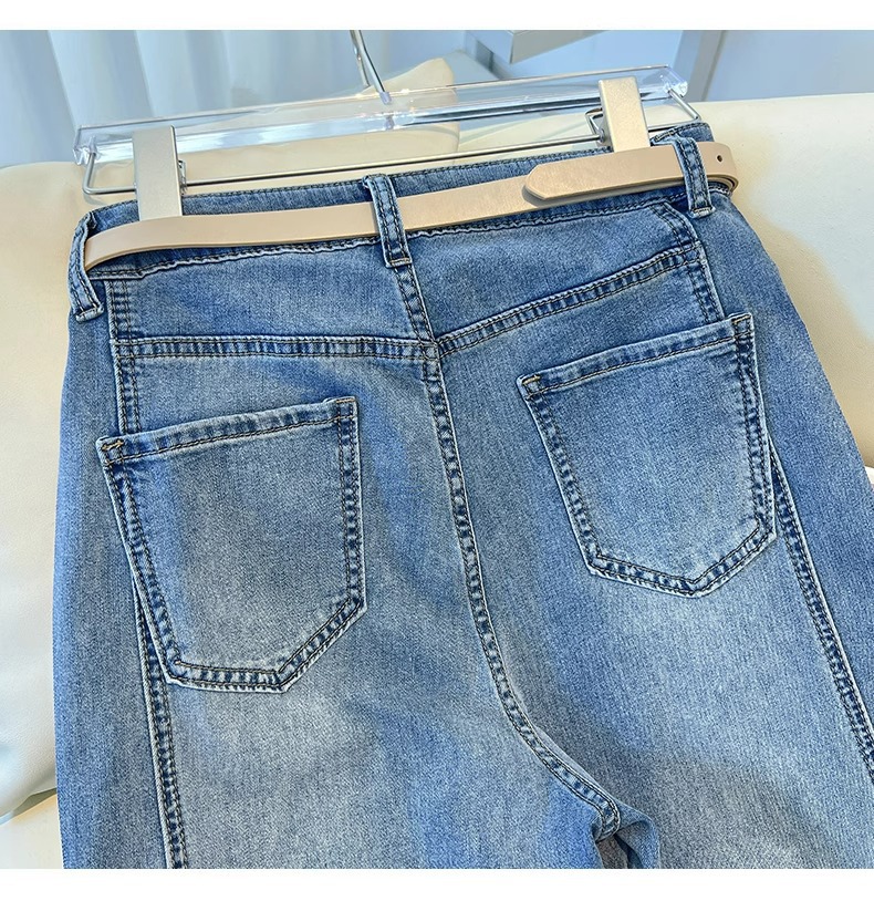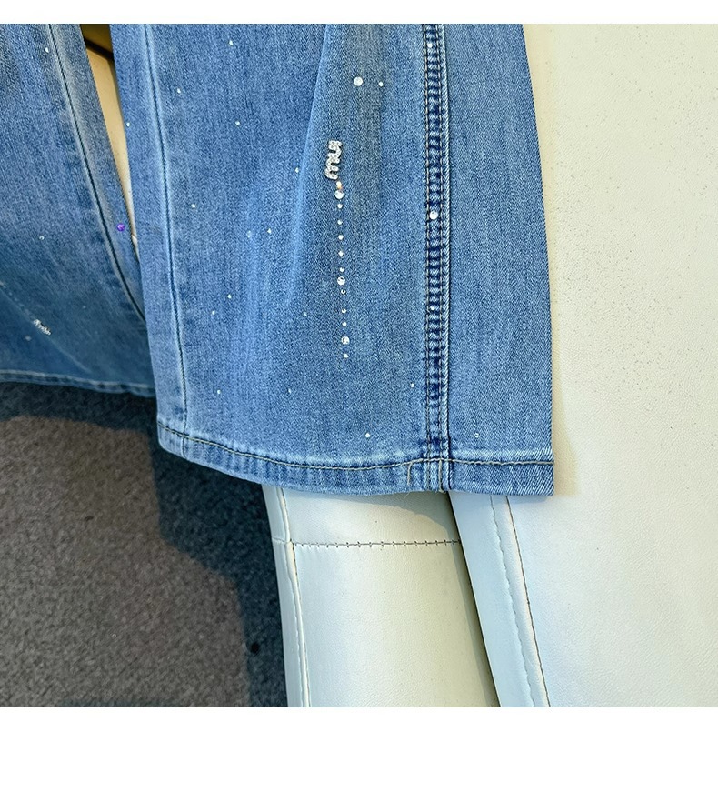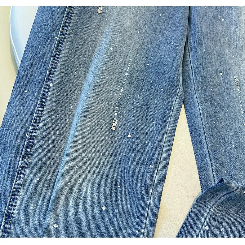 丁摩 高端【镶钻】阔腿牛仔裤女春秋季宽松显瘦烫钻垂感窄版直筒裤5ZF-914