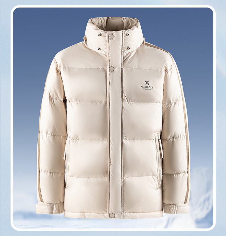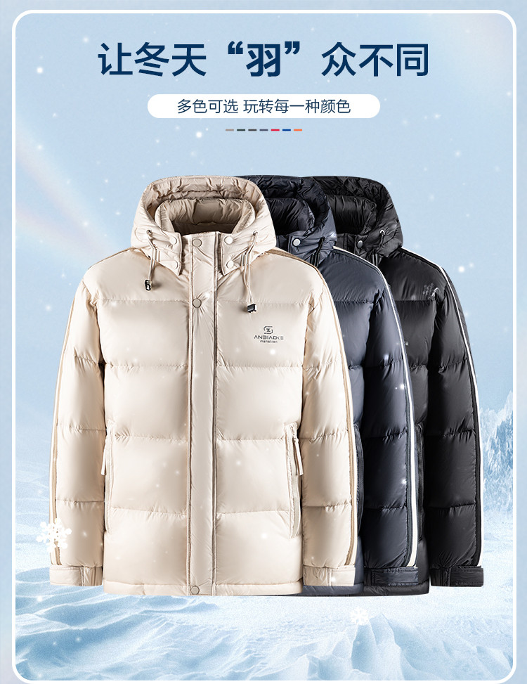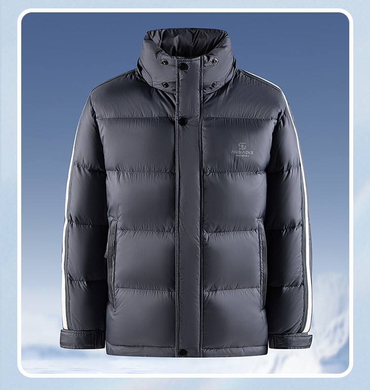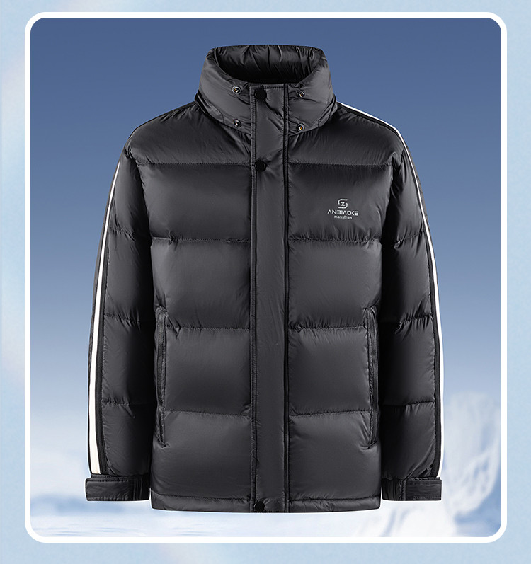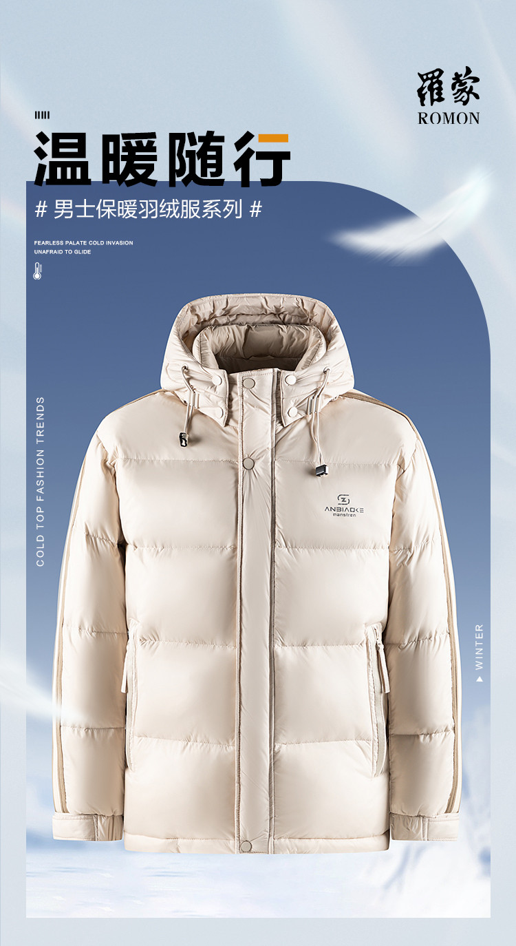 【可拆卸帽子】罗蒙冬季羽绒服男士保暖加厚90鸭绒可立领穿搭侧边条纹时尚百搭潮外套