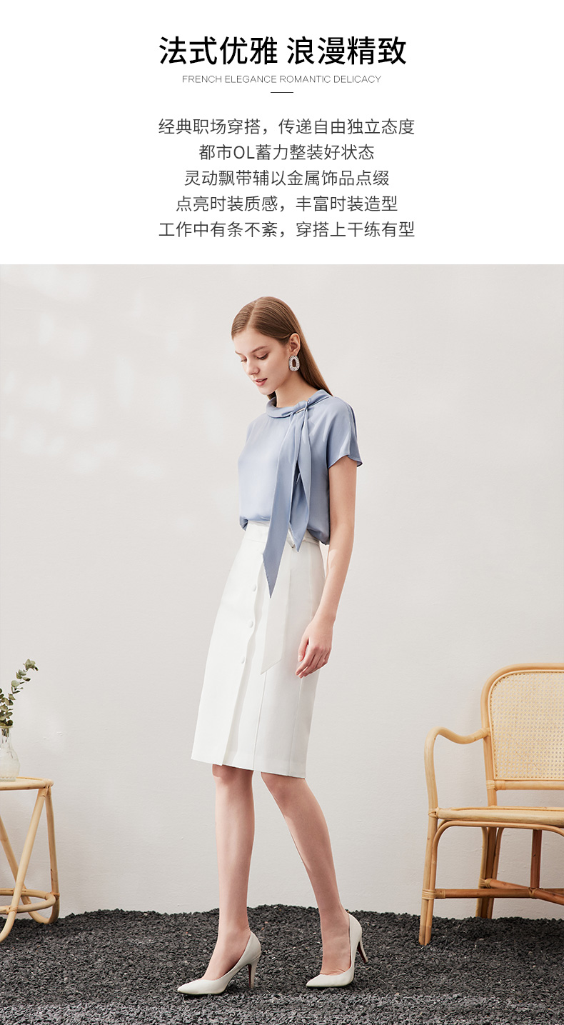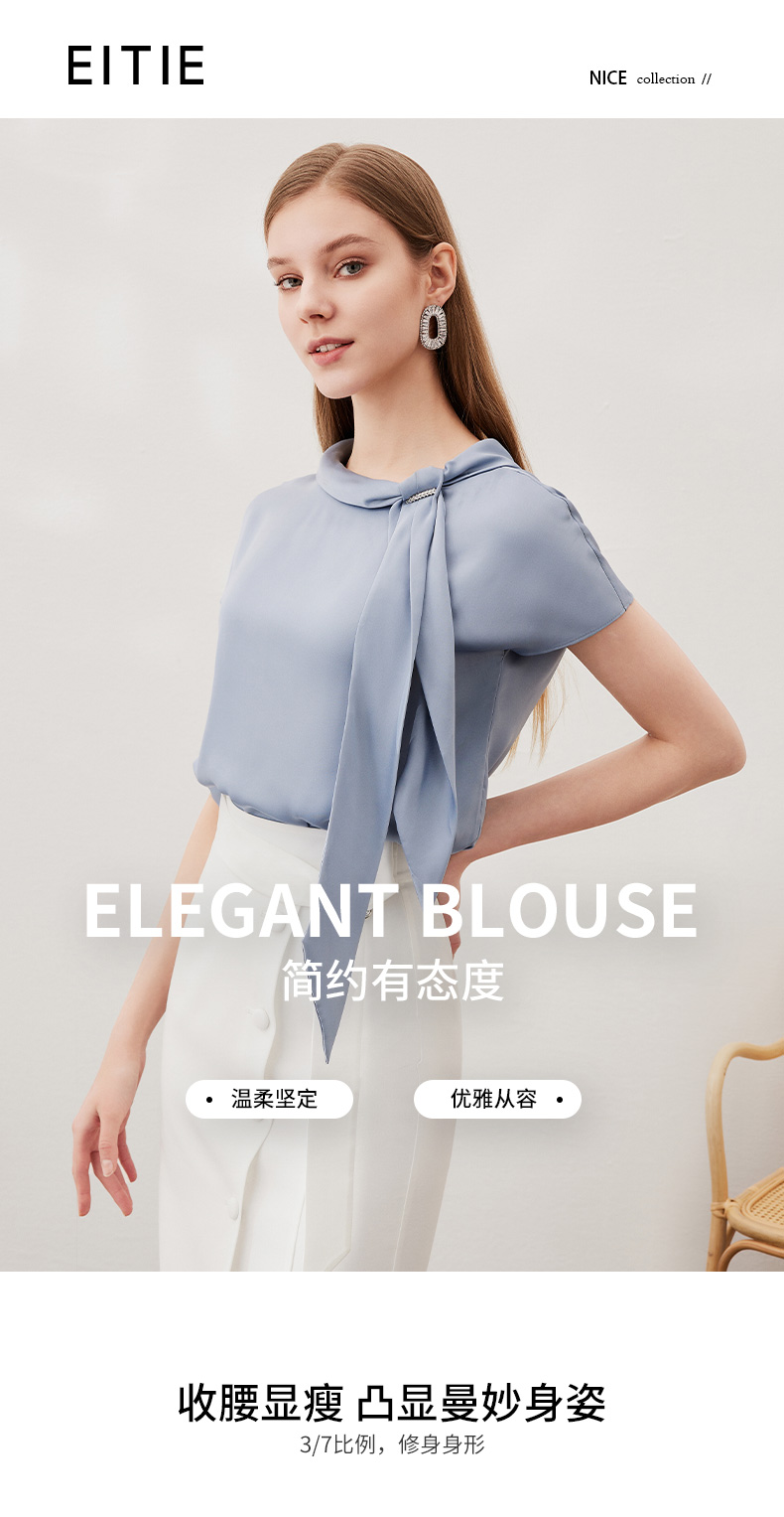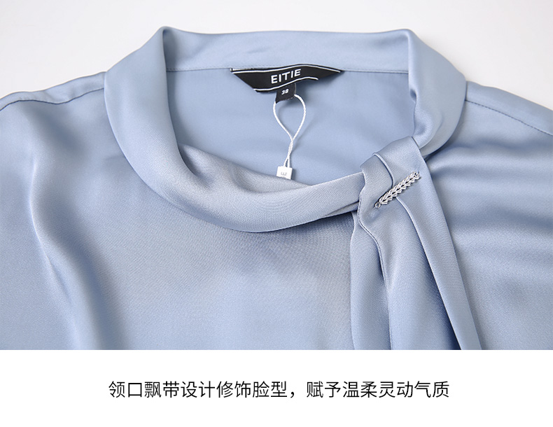 EITIE爱特爱女装春秋季新款长袖线条拼接白色简约气质衬衫薄C1909306