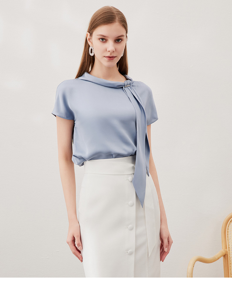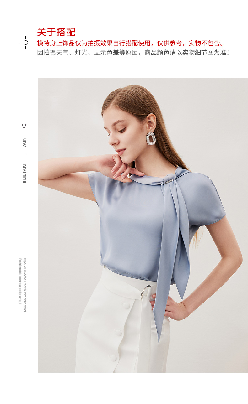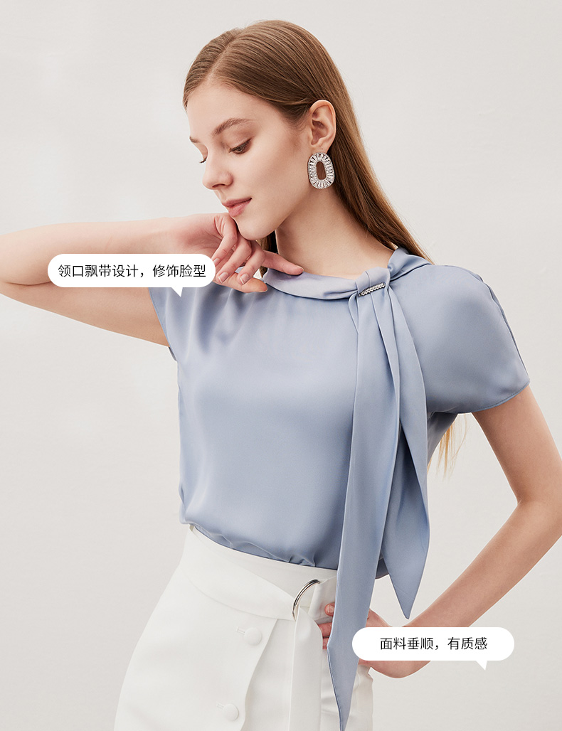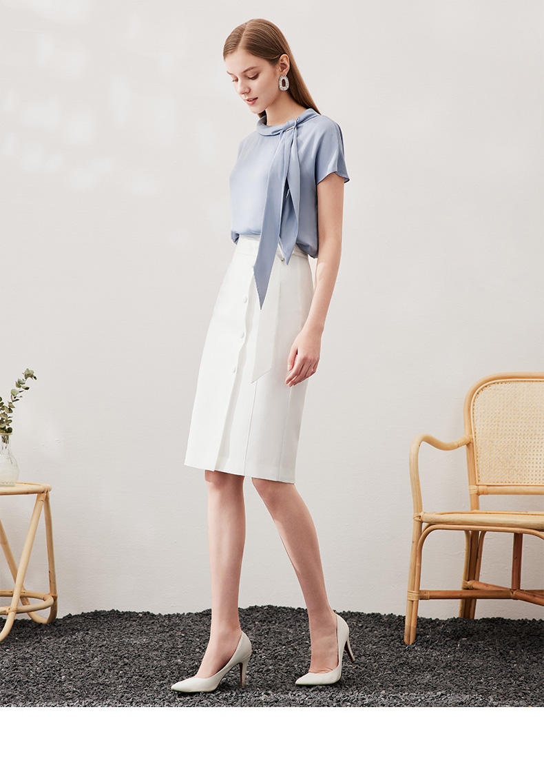 EITIE爱特爱女装春秋季新款长袖线条拼接白色简约气质衬衫薄C1909306