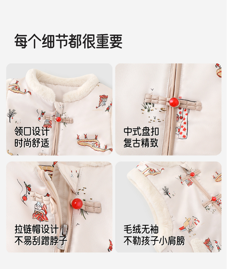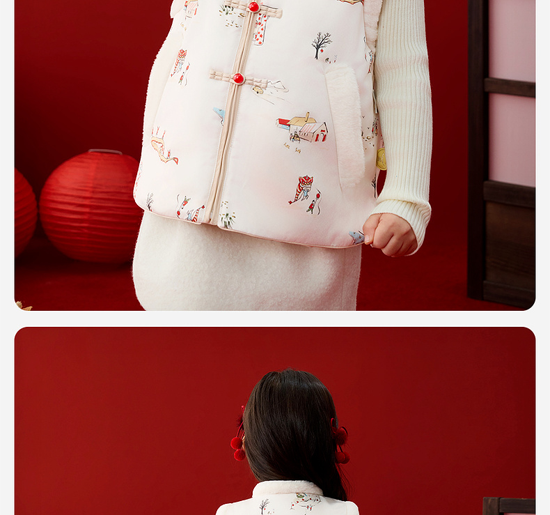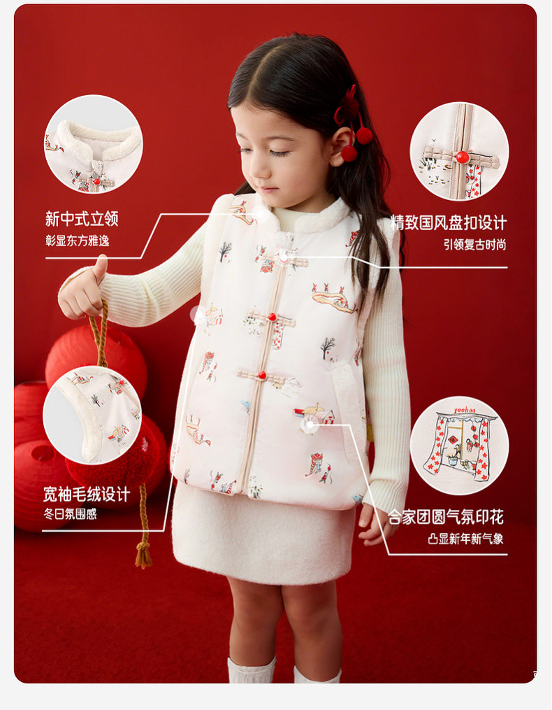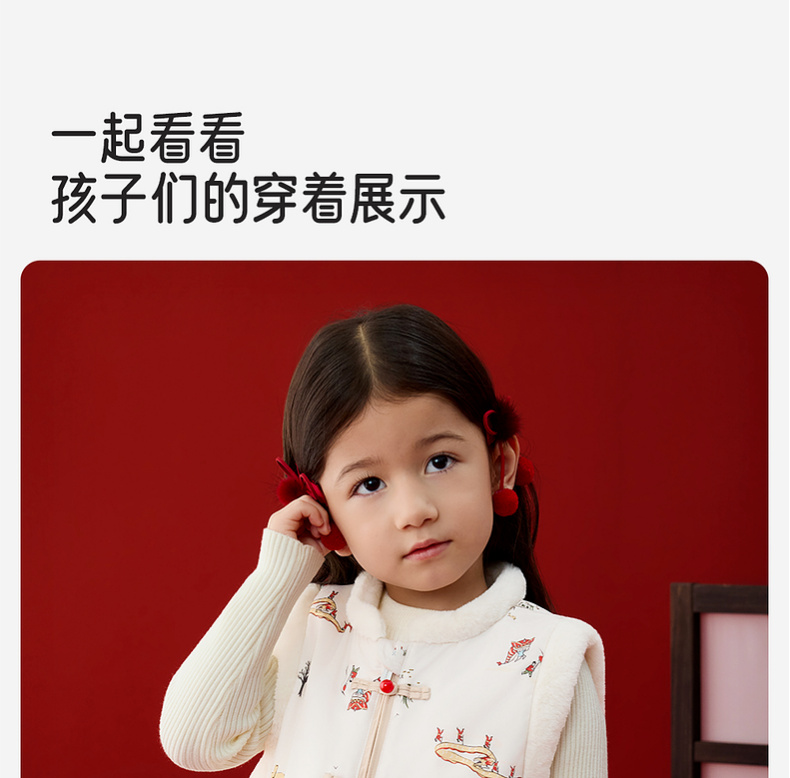 英氏儿童马甲秋冬保暖马夹拜年服喜庆新中式男宝女宝2025新款