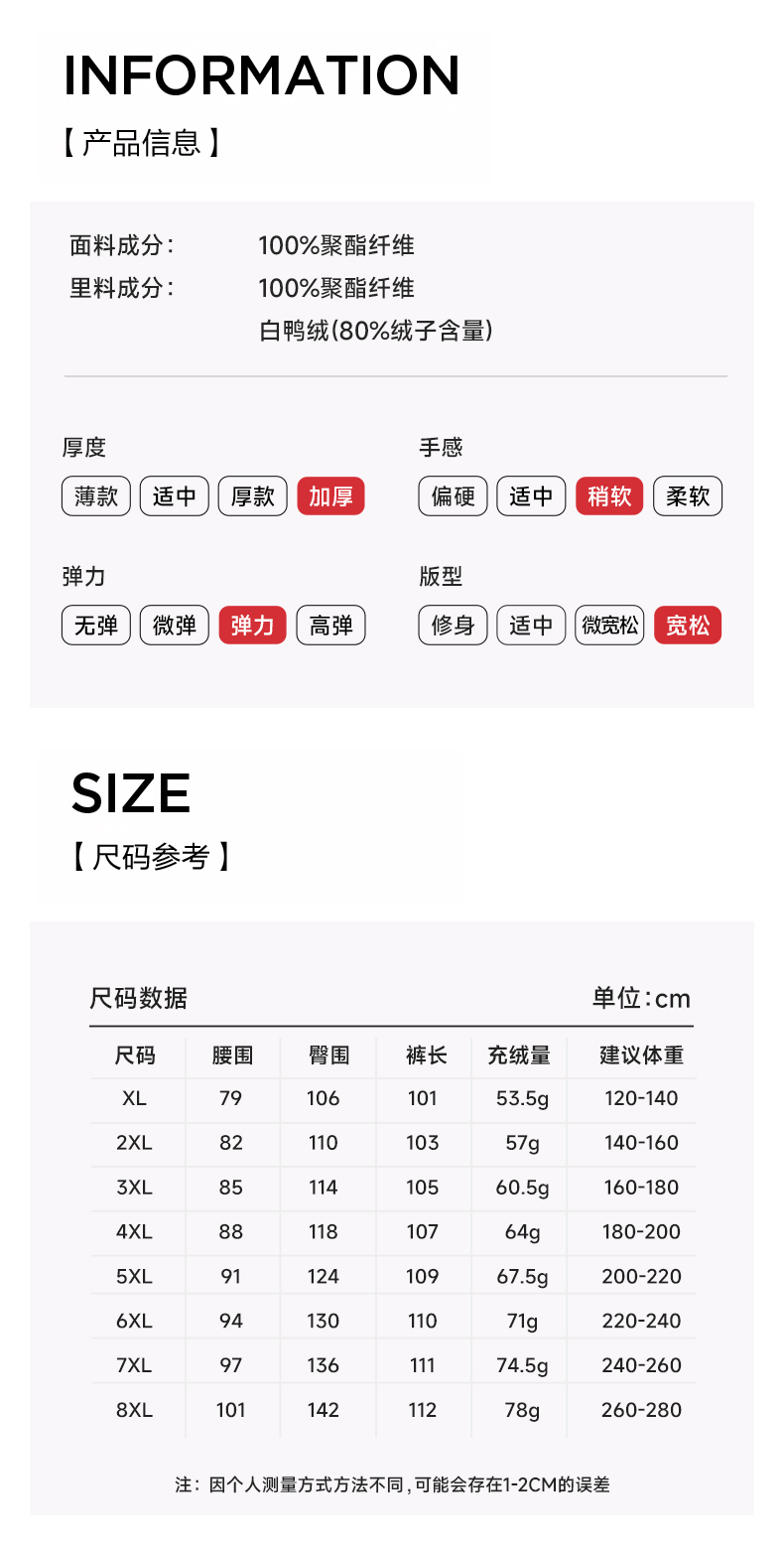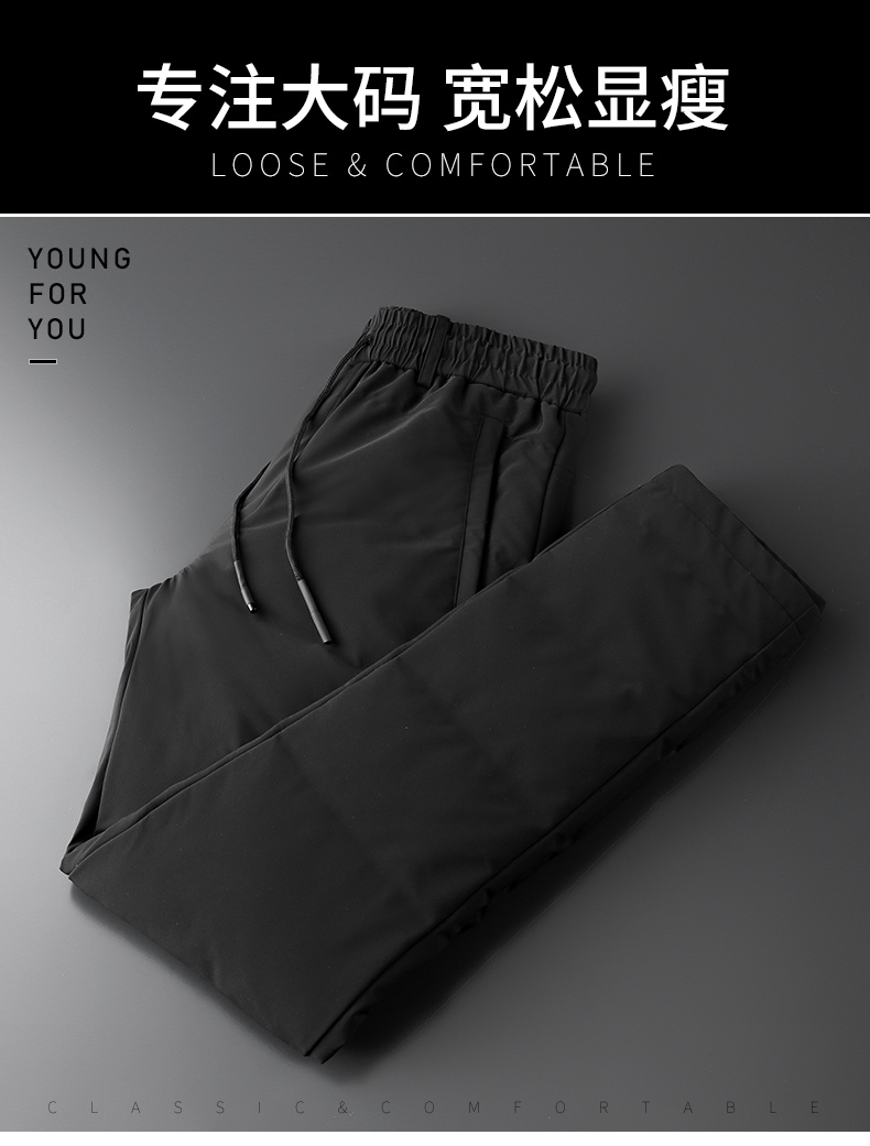 【新款DTH】大依优型大码羽绒裤松紧腰加肥加大号肥佬宽松大号休闲长裤男装胖子男士