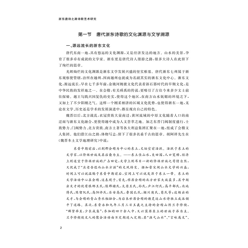 《浙东唐诗之路诗歌艺术研究》,设定八九个研究板块,涉及浙东唐诗艺术的总体风貌、文学渊源、艺术个性、地域风尚、文体演变等诸多方面的内容。第一章《唐代浙东诗歌创作的总体风貌》。第二章《浙东唐诗名篇阐释示例》。第三章《唐代浙东组诗的探讨》。第四章《唐诗用典之浙东内涵》。第五章《唐代越州的诗坛风貌》。第六章《西陵?渔浦:浙东唐诗之路的起点》。第七章《天台山:浙东唐诗之路与海上丝绸之路的交汇》。第八章《浙东唐诗之路研究谱系的建构与探索》。