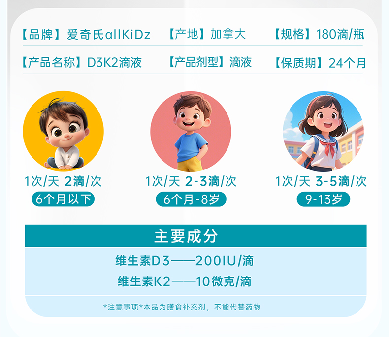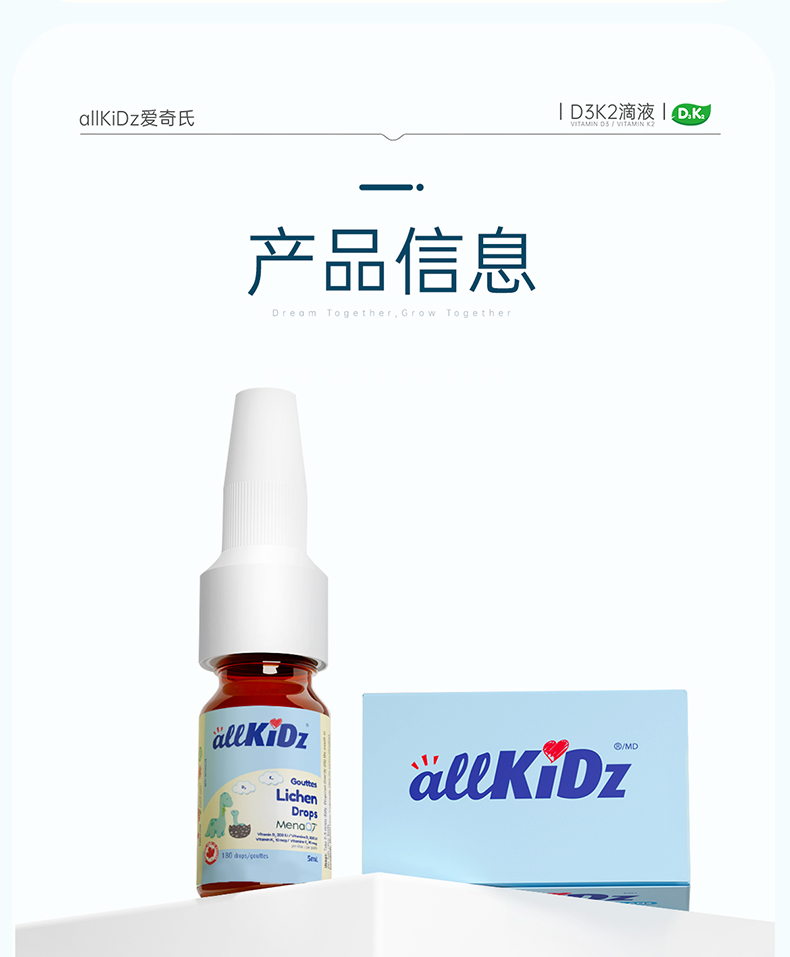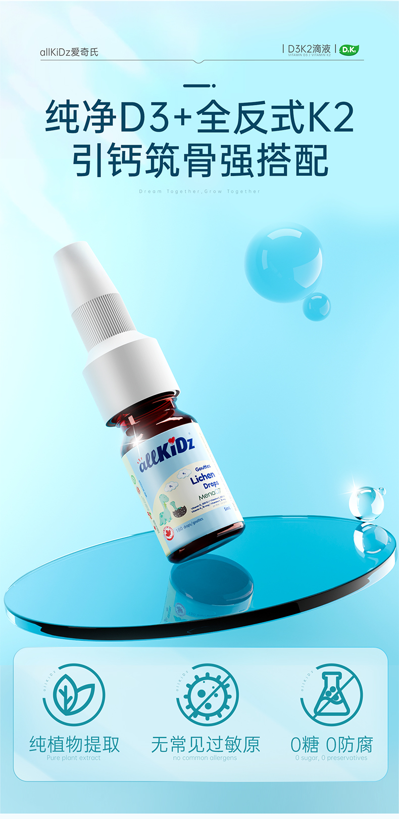 D3 +K2儿童全植物(地衣)提取维生素 5ml 加倍促进钙吸收加倍促进钙吸收【爱奇氏】YYDS-AQS