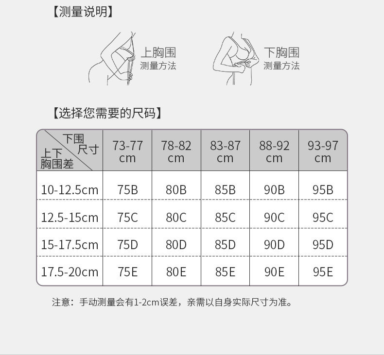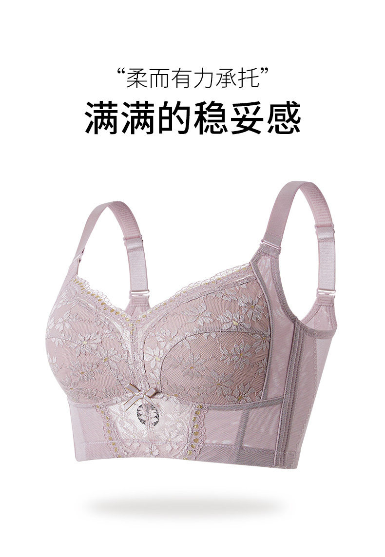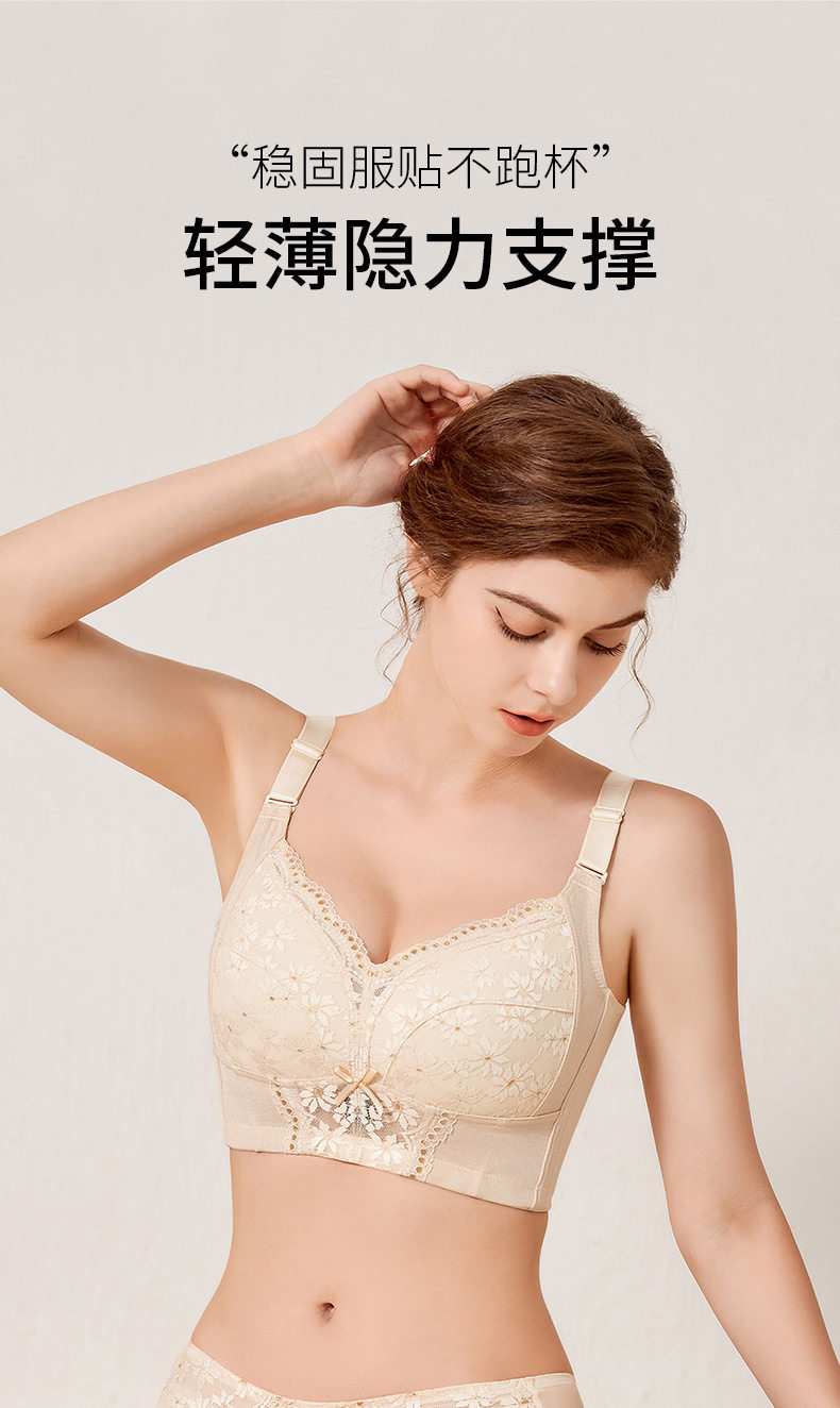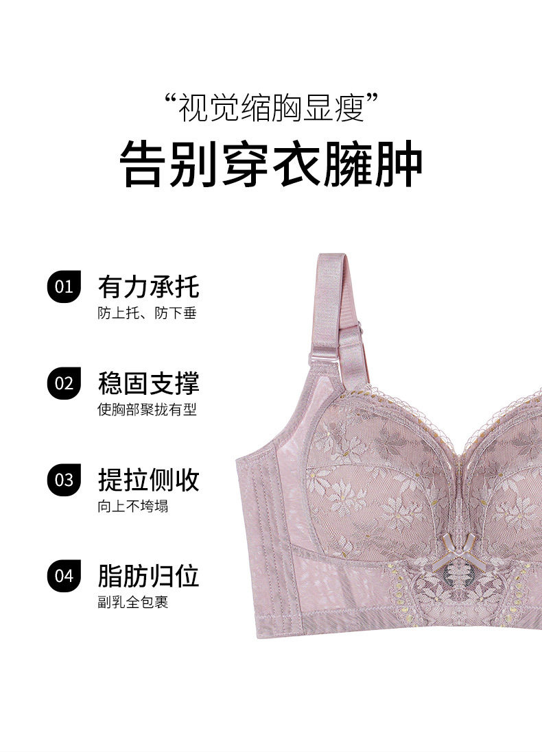 QC-W6205* 内衣女超薄款夏季无钢圈收副乳防下垂调整型全罩杯大胸显小文胸(单件)