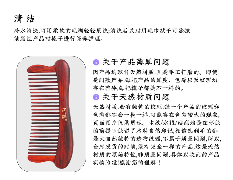 周广胜正品微凹黄檀合木梳子防静电护发男女通用家用美发顺发梳
