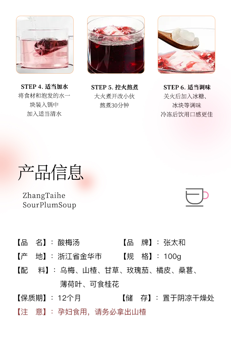 张太和酸梅汤100g原料包正宗乌梅汤2.0料包夏季解暑乌梅山楂甘草 商品图8