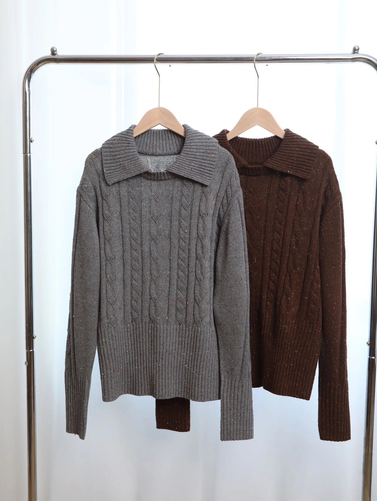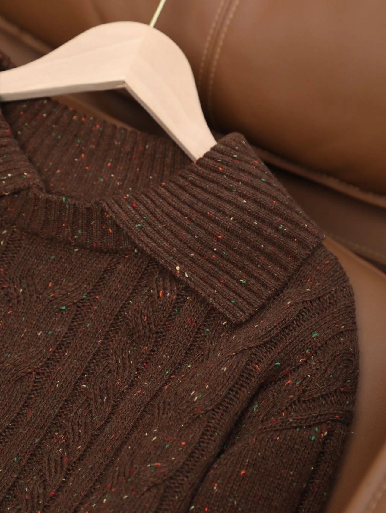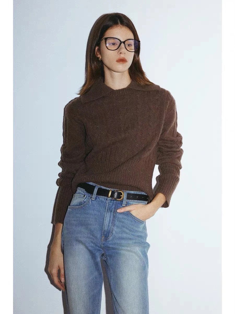 【商品品名】羊毛彩点复古翻领毛衣