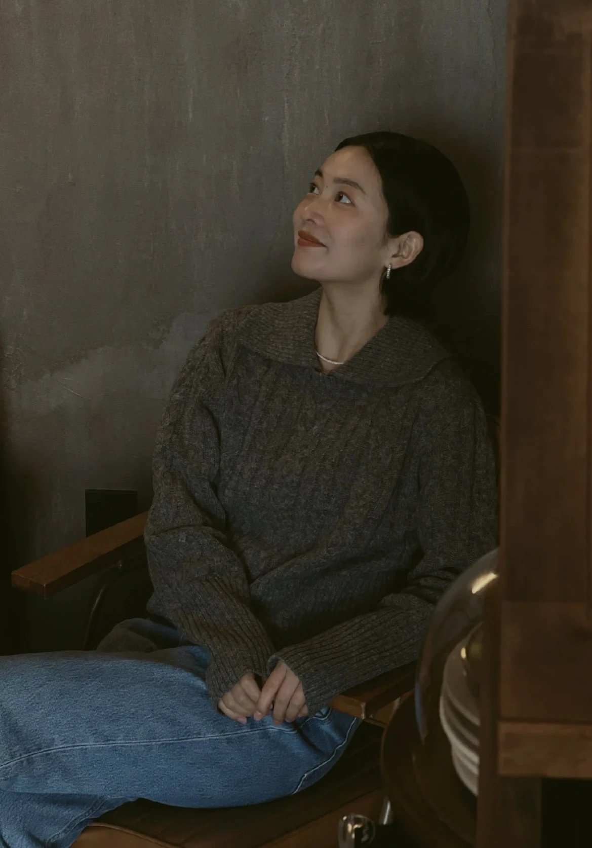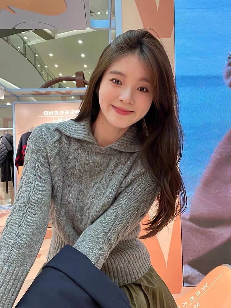 金晨同款复古翻领全羊毛毛衣❗️