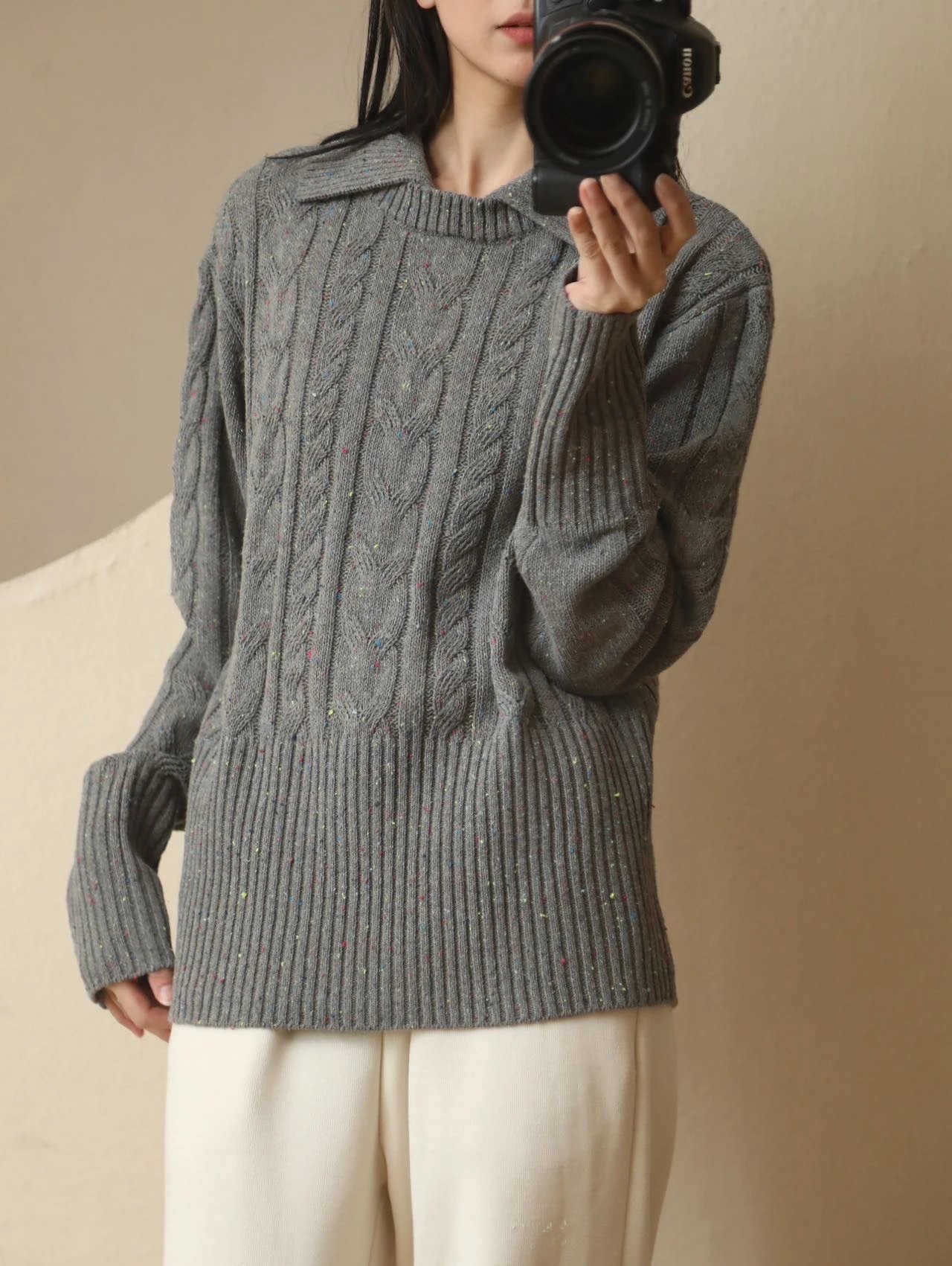 这件灰色彩点毛衣简直是真爱了