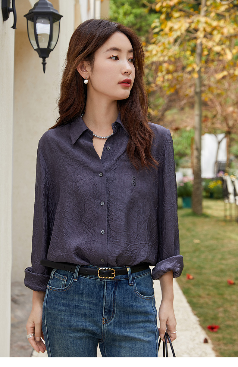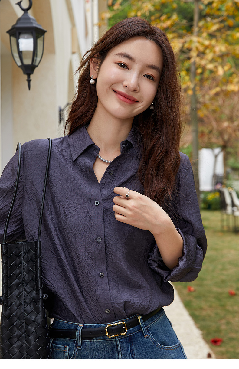 高级感爆棚!深紫色提花长袖衬衫,宽松不挑身材