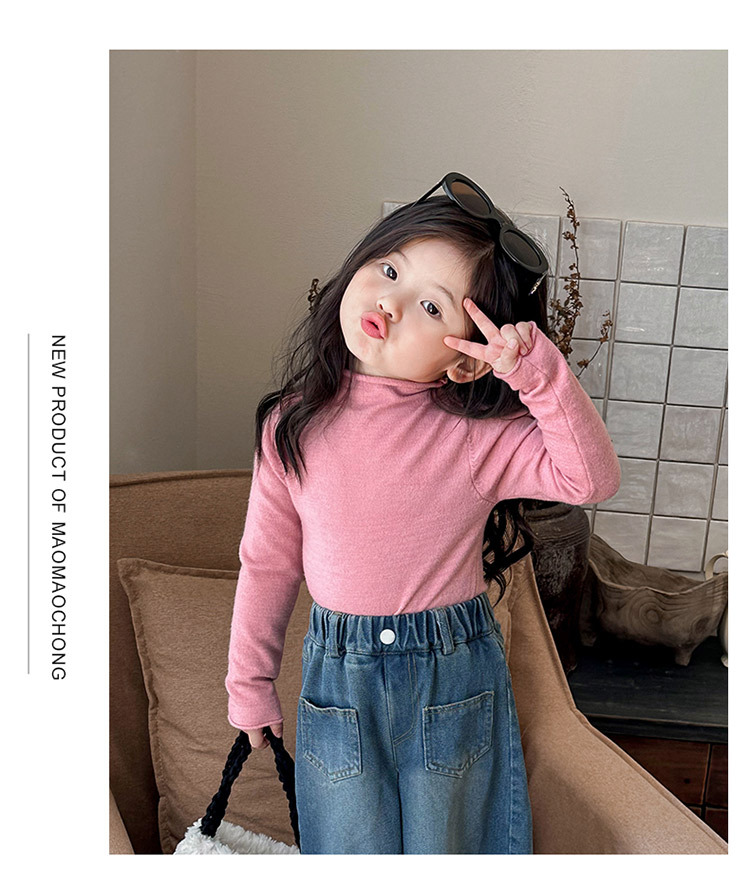 【纯色设计,简洁时尚!】儿童打底衫2023秋装新款男女童韩版弹力宝宝半高领纯色内搭T恤潮lm