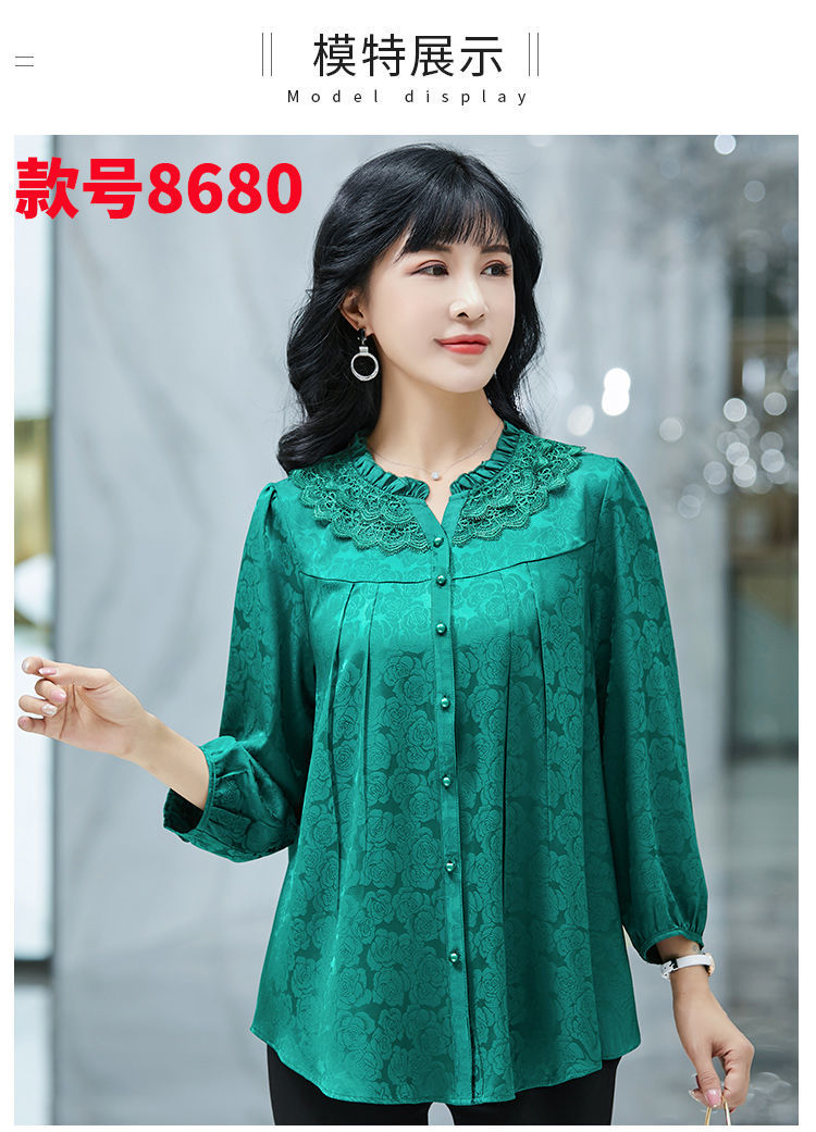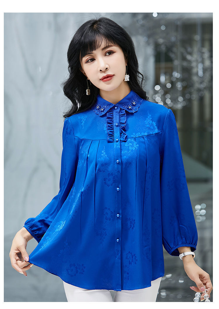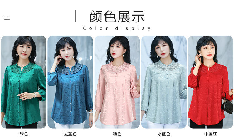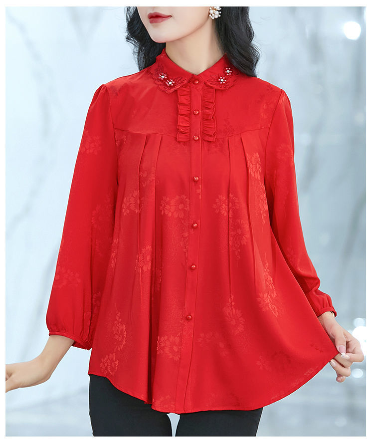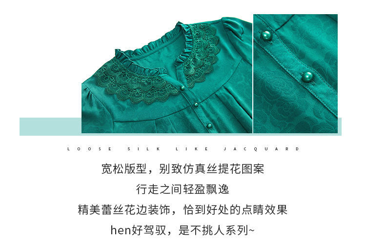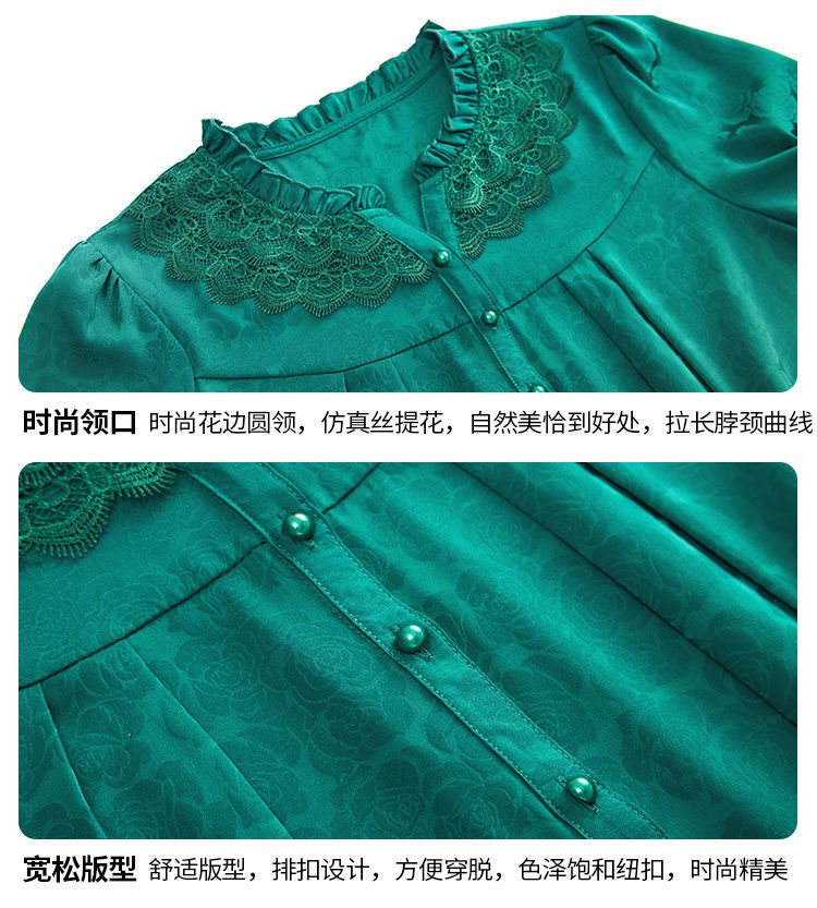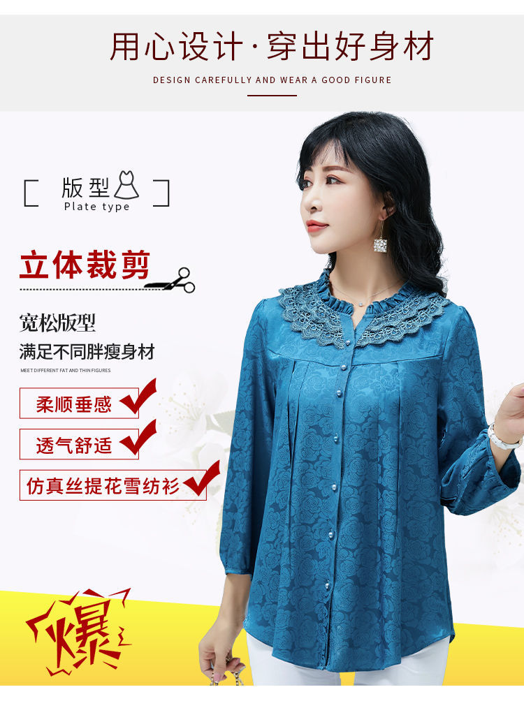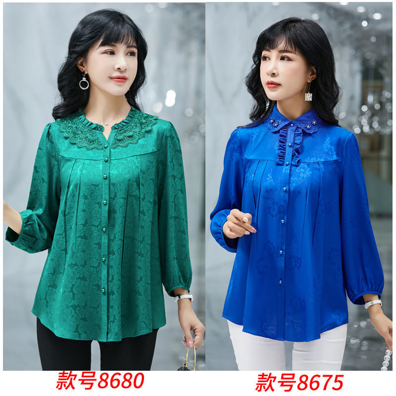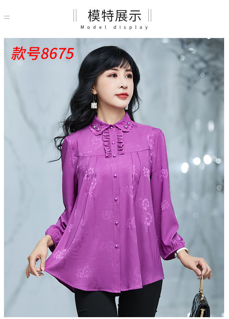 X009 长袖雪纺衫女新款洋气时尚大码小衫遮肚子宽松中年妈妈显瘦上衣