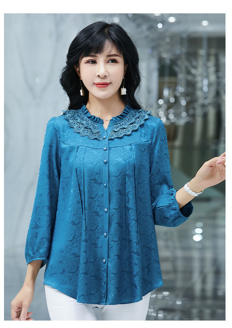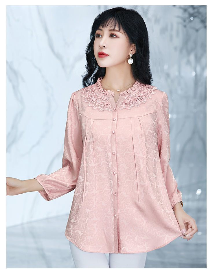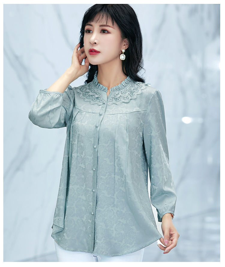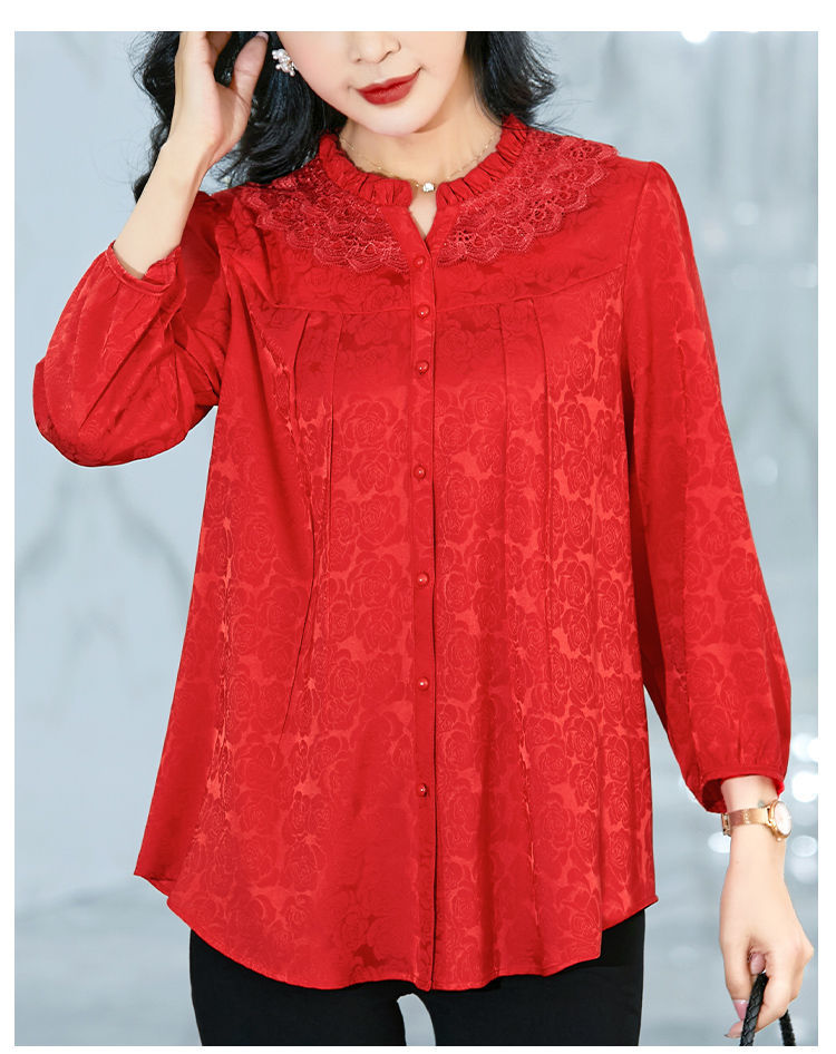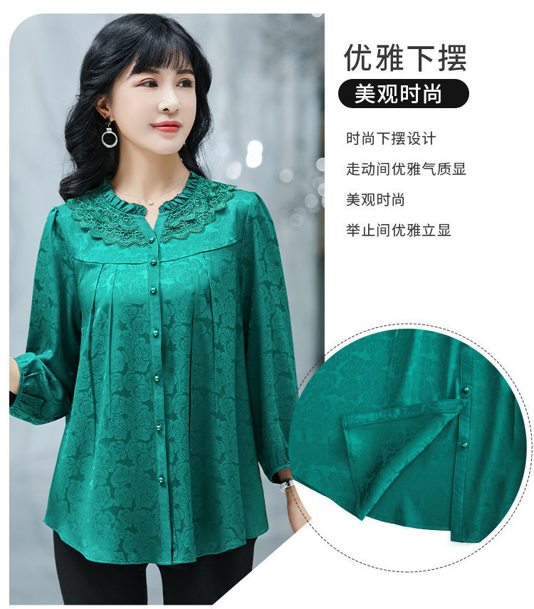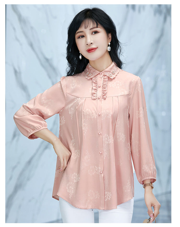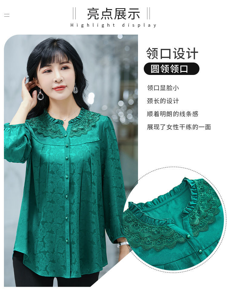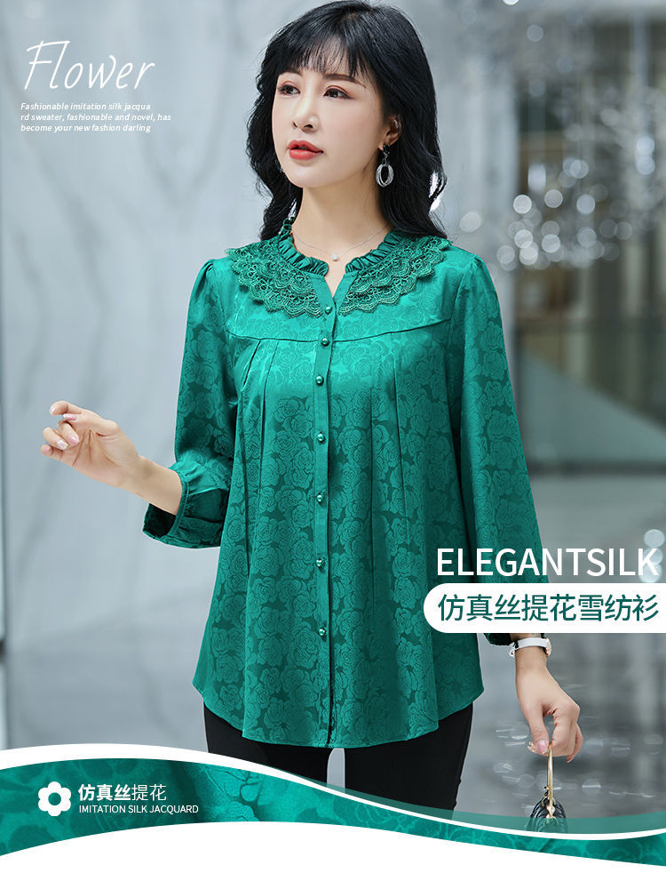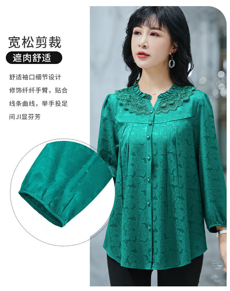 X009 长袖雪纺衫女新款洋气时尚大码小衫遮肚子宽松中年妈妈显瘦上衣