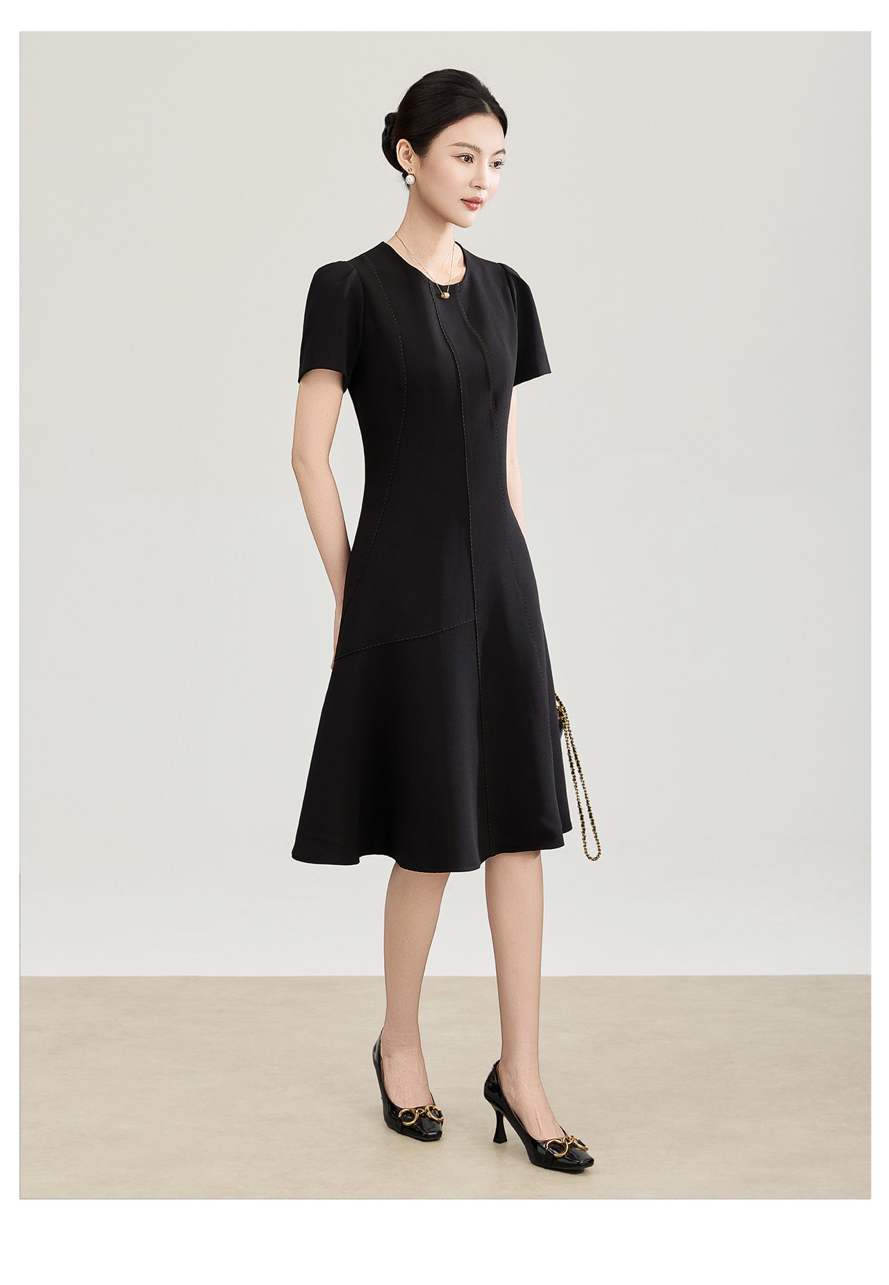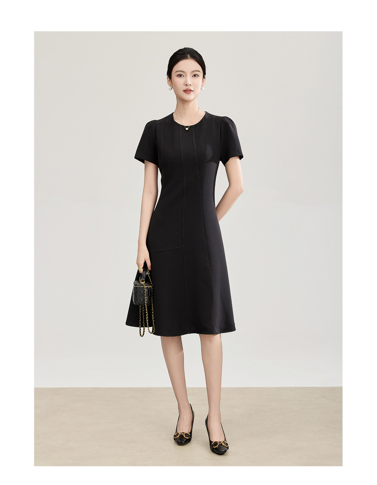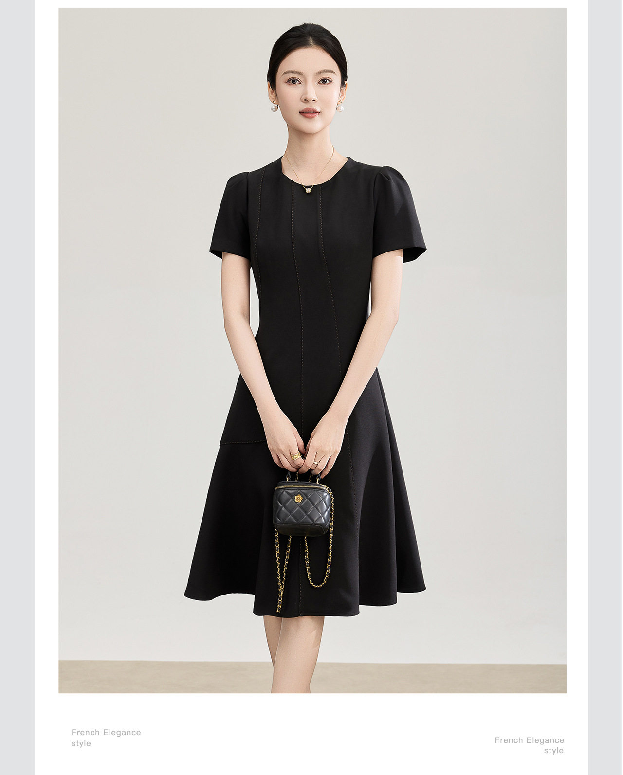 「高货wl」全新升级【铂金会员349/天猫469/差价120】(01521)洛诗琳气质短袖修身连衣裙2026春夏新款通勤收腰显瘦A字裙