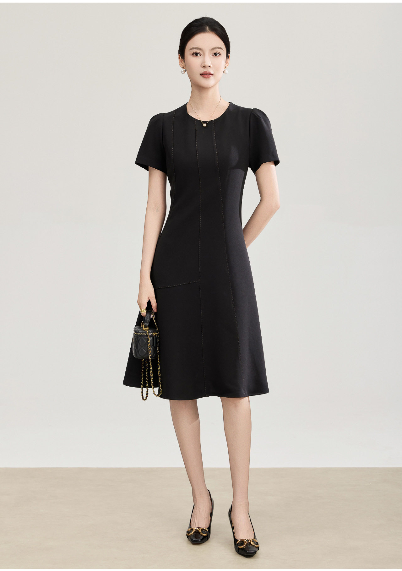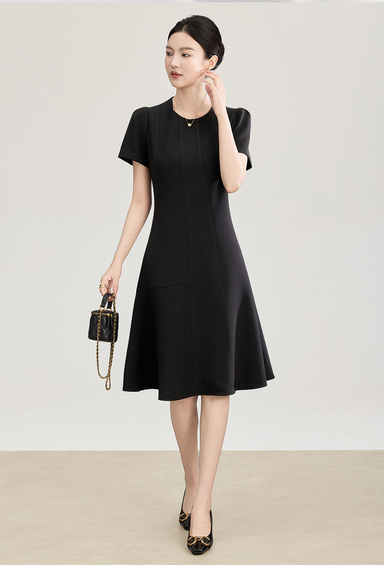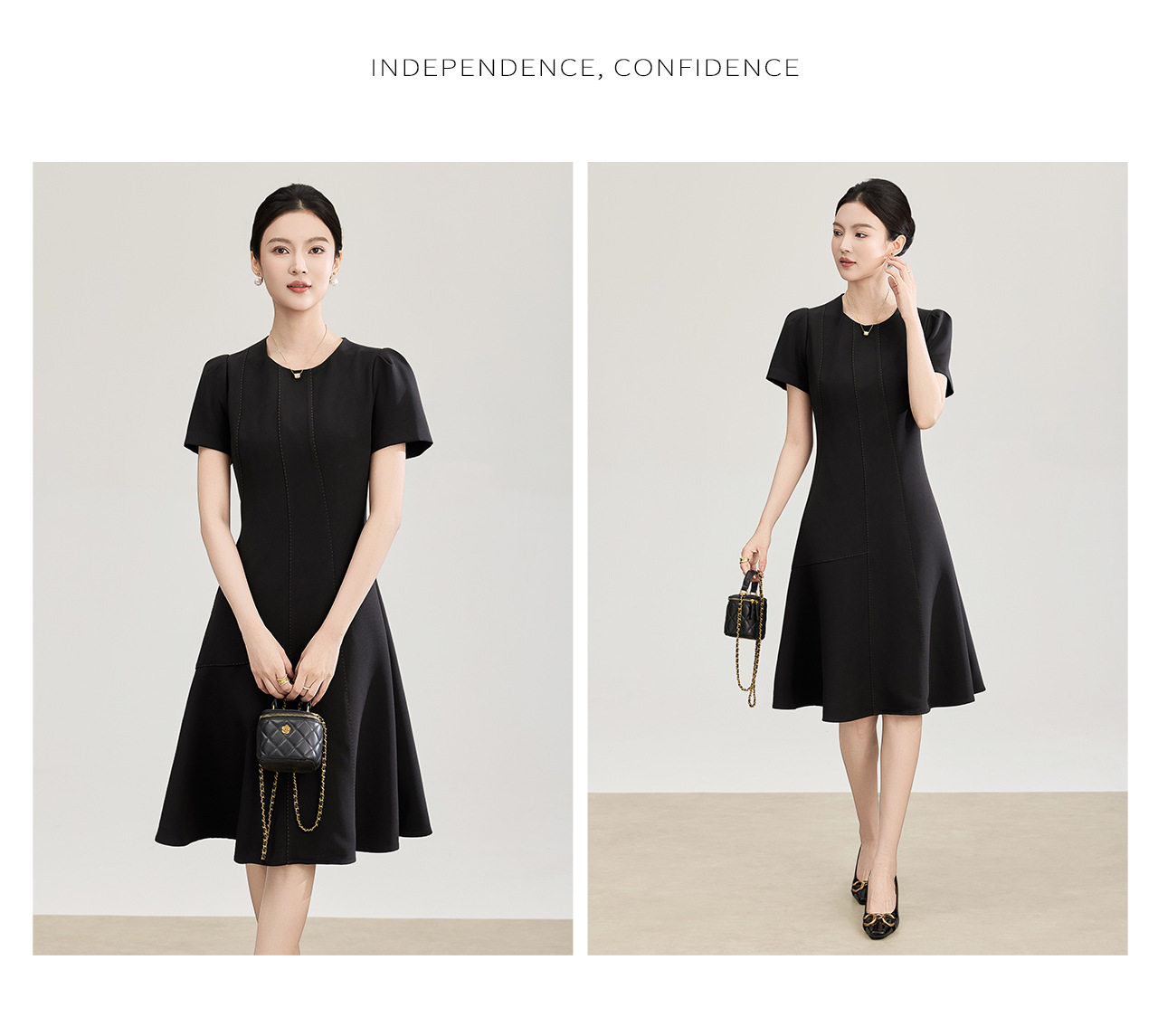 「高货wl」全新升级【铂金会员349/天猫469/差价120】(01521)洛诗琳气质短袖修身连衣裙2026春夏新款通勤收腰显瘦A字裙