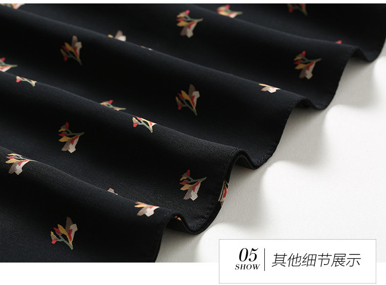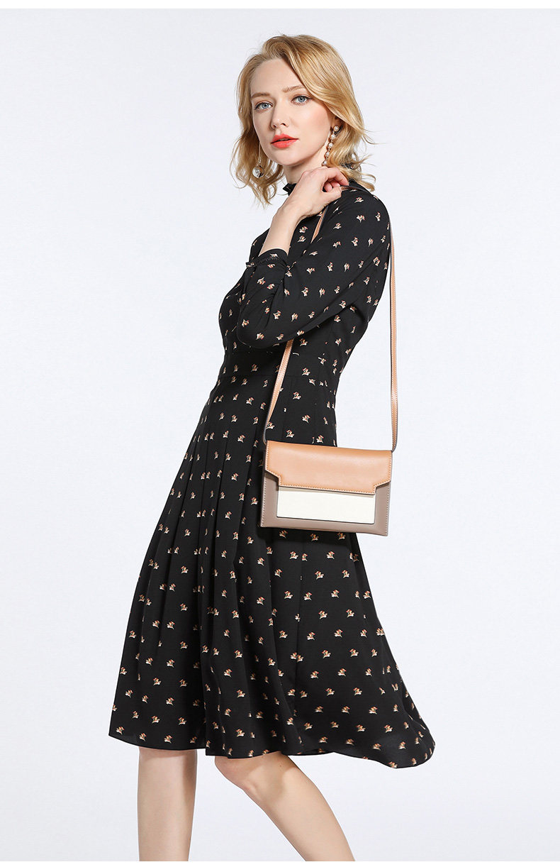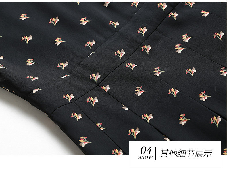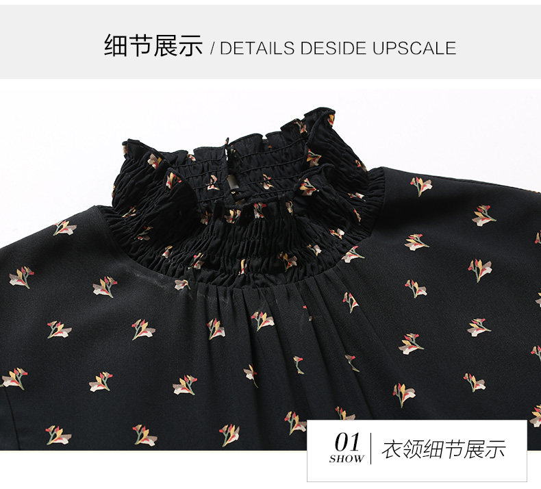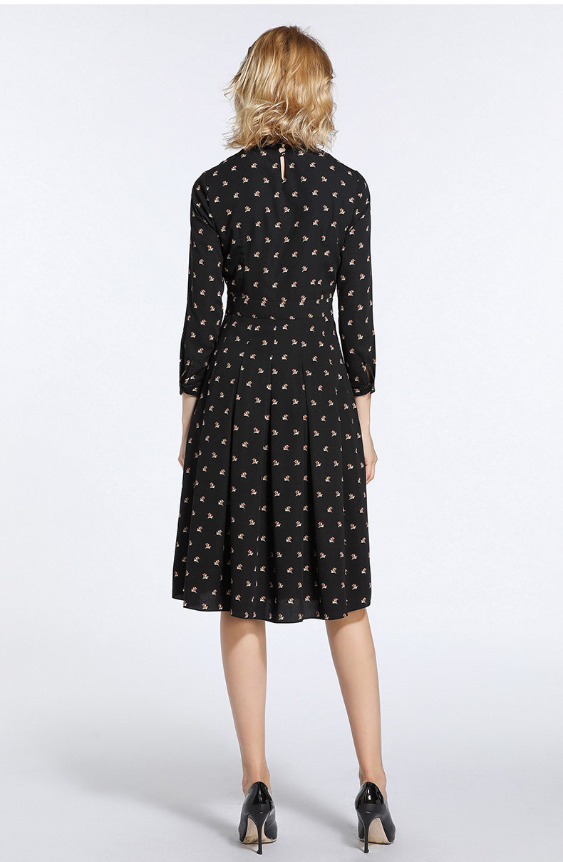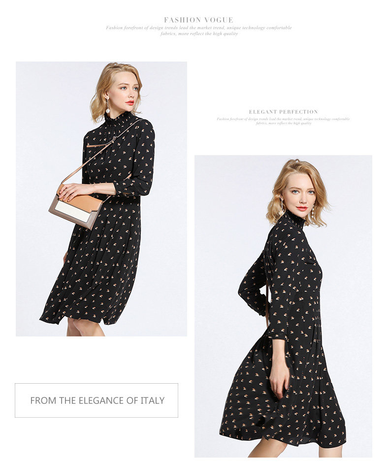 乔万尼春装女 复古高领修身气质碎花长袖连衣裙长裙EB3E203