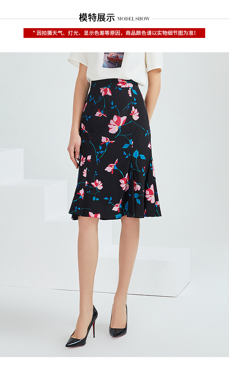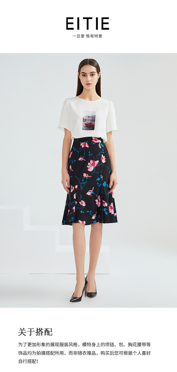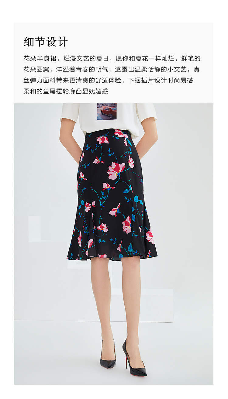 EITIE爱特爱夏季女装高腰文艺印花包臀半身裙5906611半裙