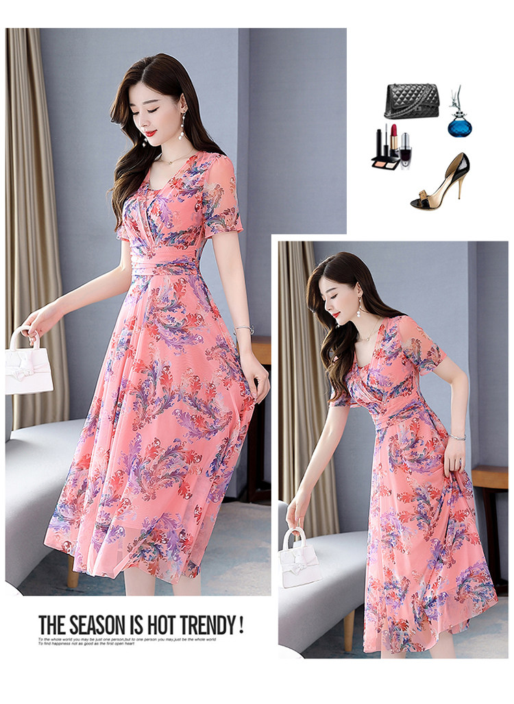 WZNH-MLJL2052新款夏天中长款修身显瘦收腰女神范连衣裙