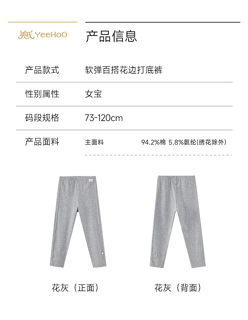 【商场同款】英氏童装女宝宝打底裤儿童百搭休闲长裤春夏针织秋裤
