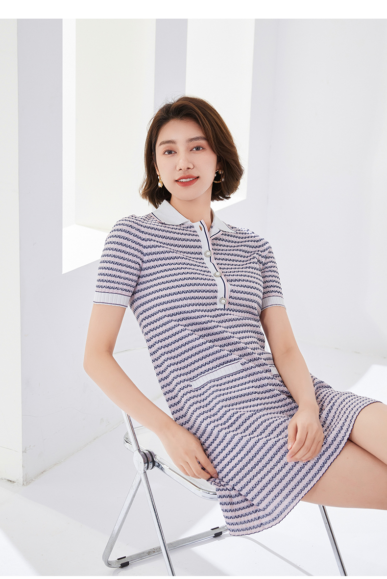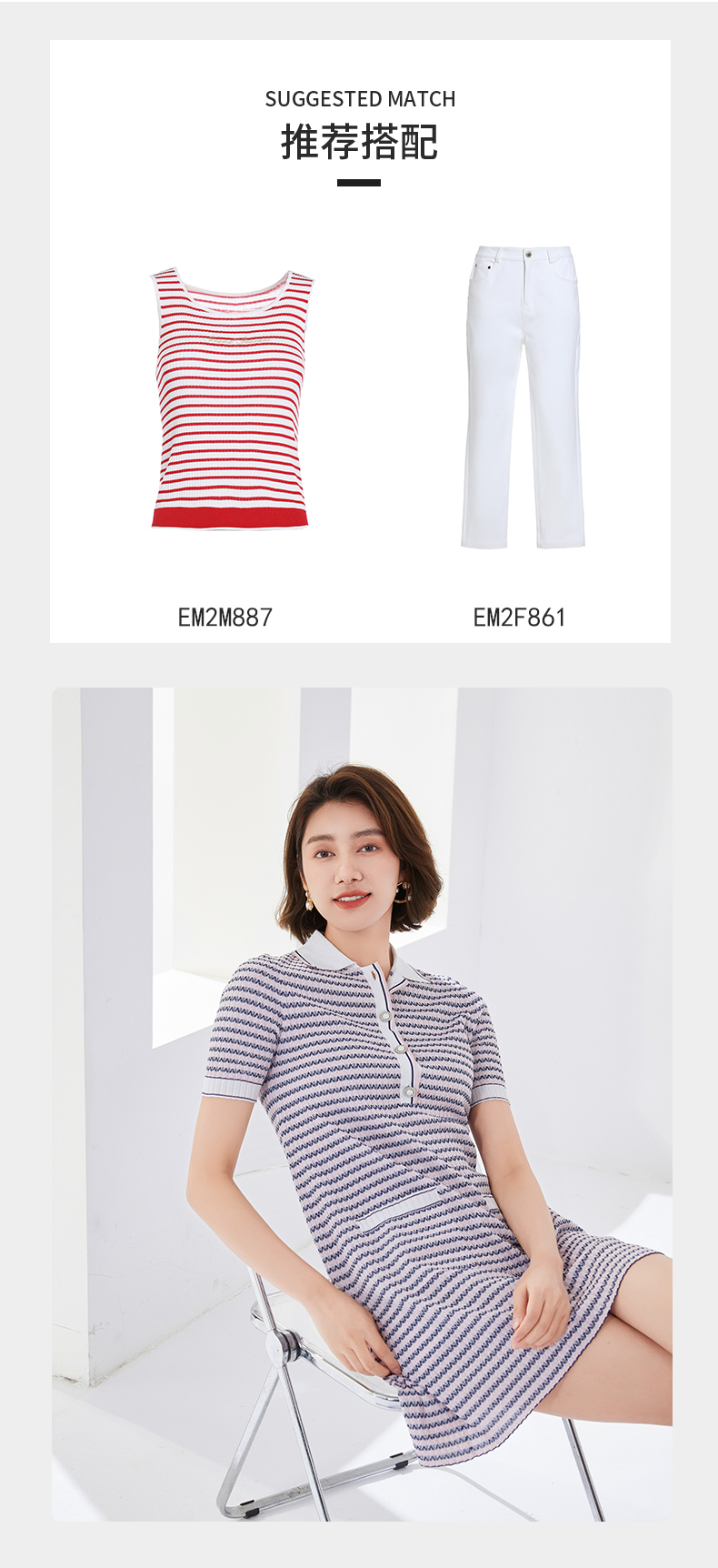 乔万尼新款连衣裙蓝粉条纹运动风EM2M857