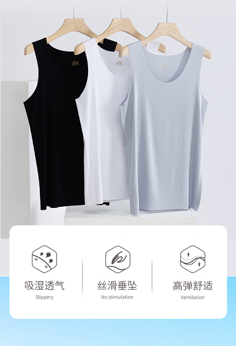 红览 100支莫代尔蚕丝男士内穿凉感背心3900