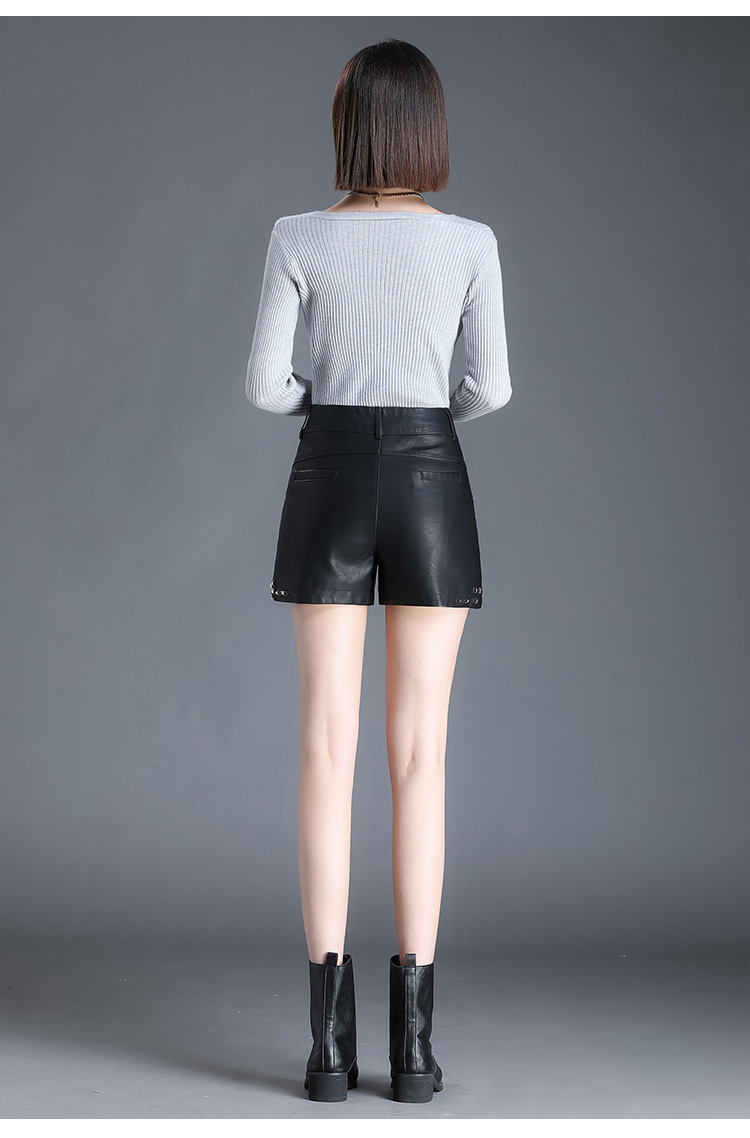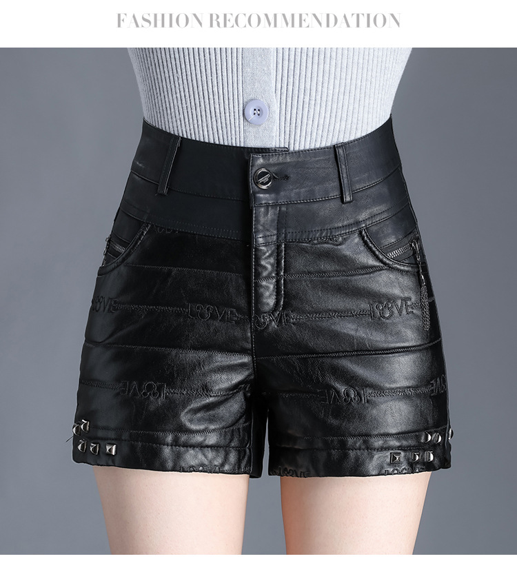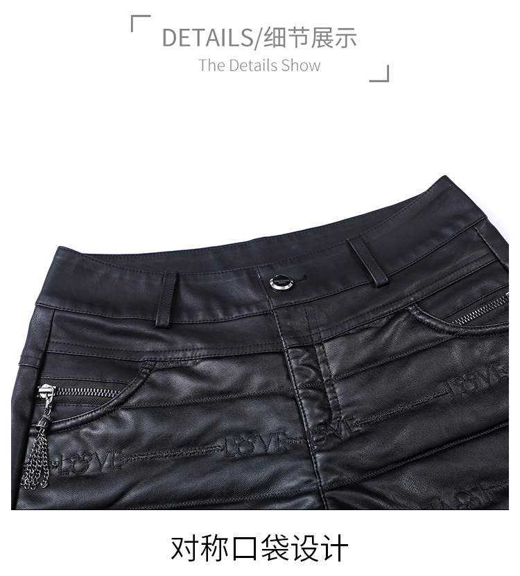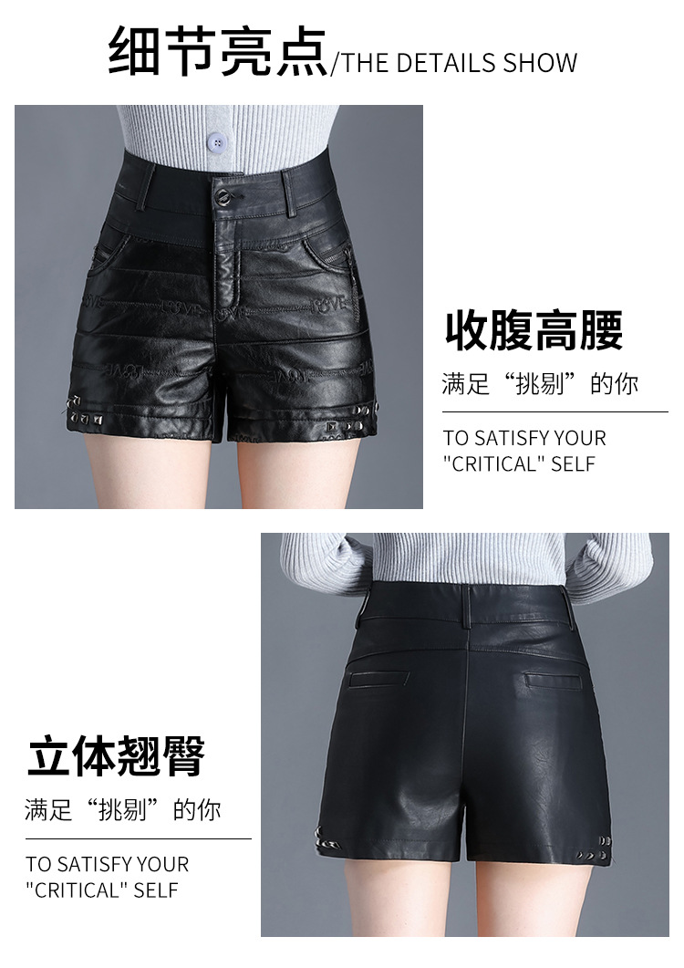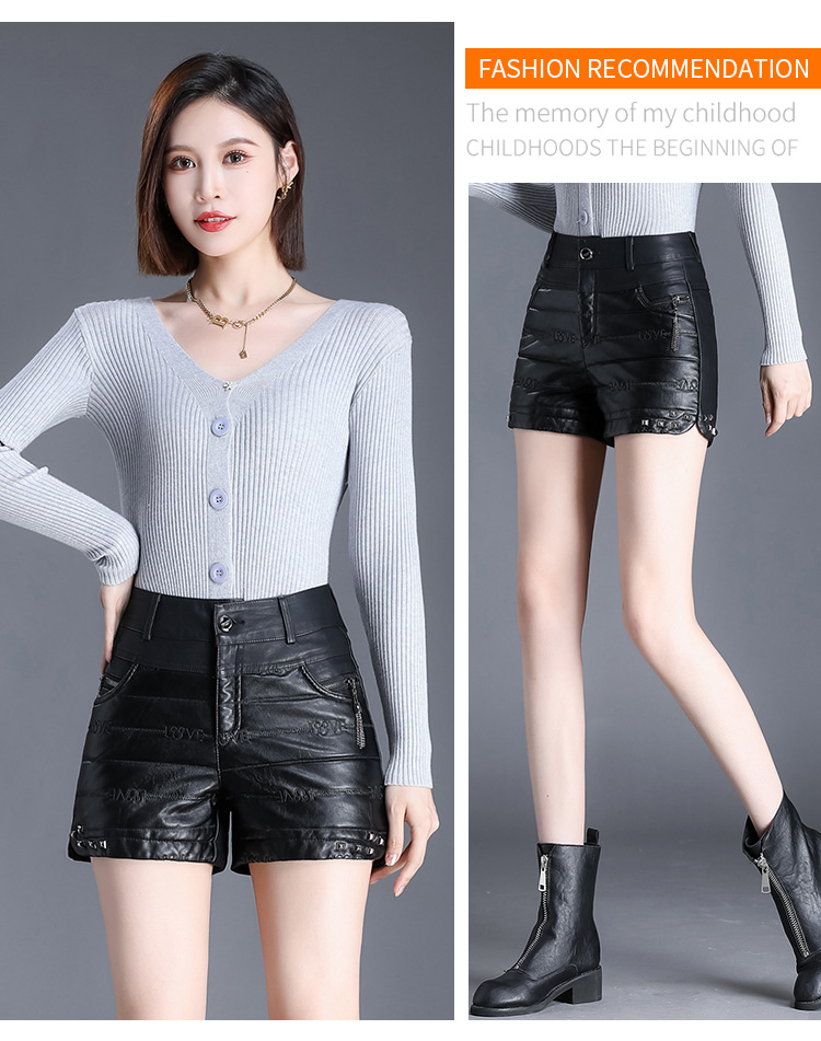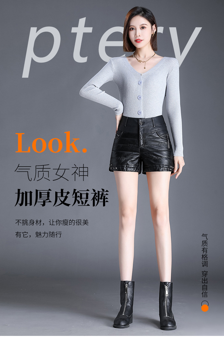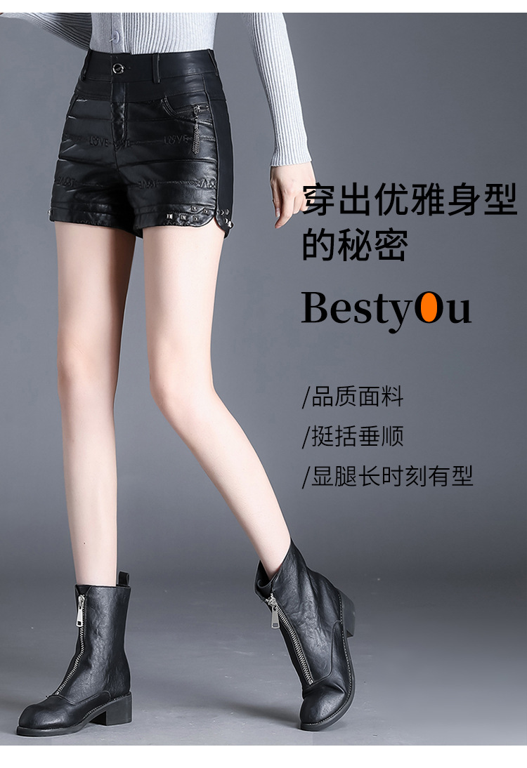 加棉时尚阔腿短裤冬款高腰修身简约休闲气质PU皮靴裤 MYX-OY-950-L
