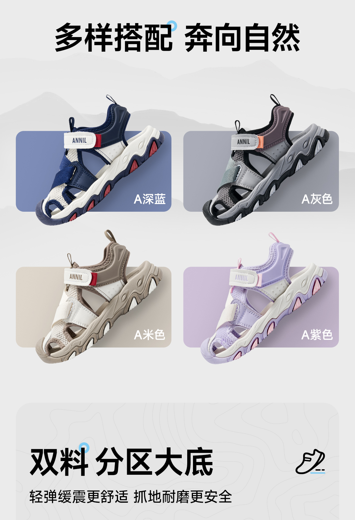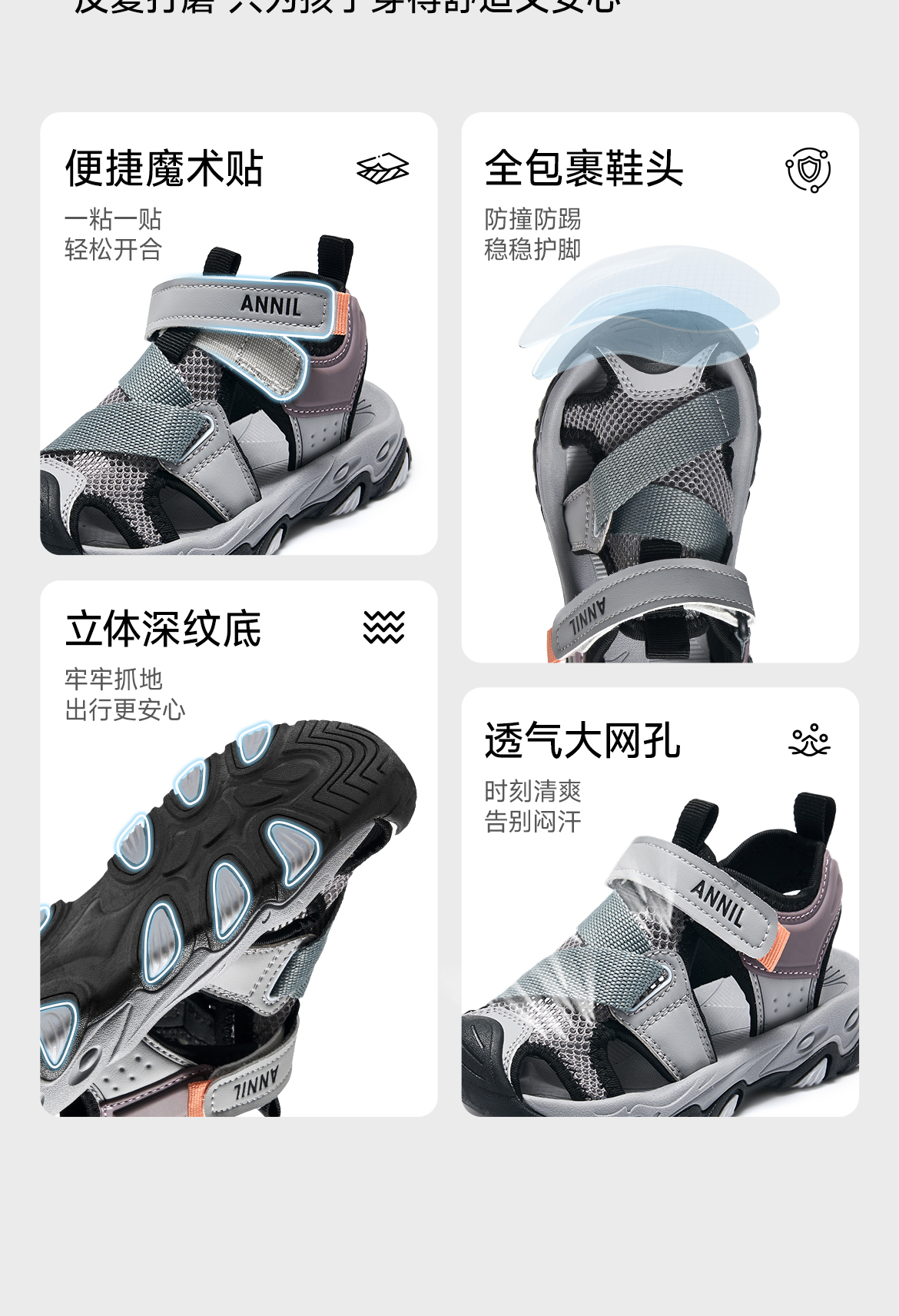 ANNIL/安奈儿童鞋男女童夏季运动包头凉鞋百搭透气HM6206827