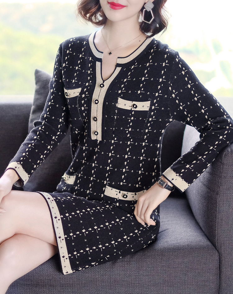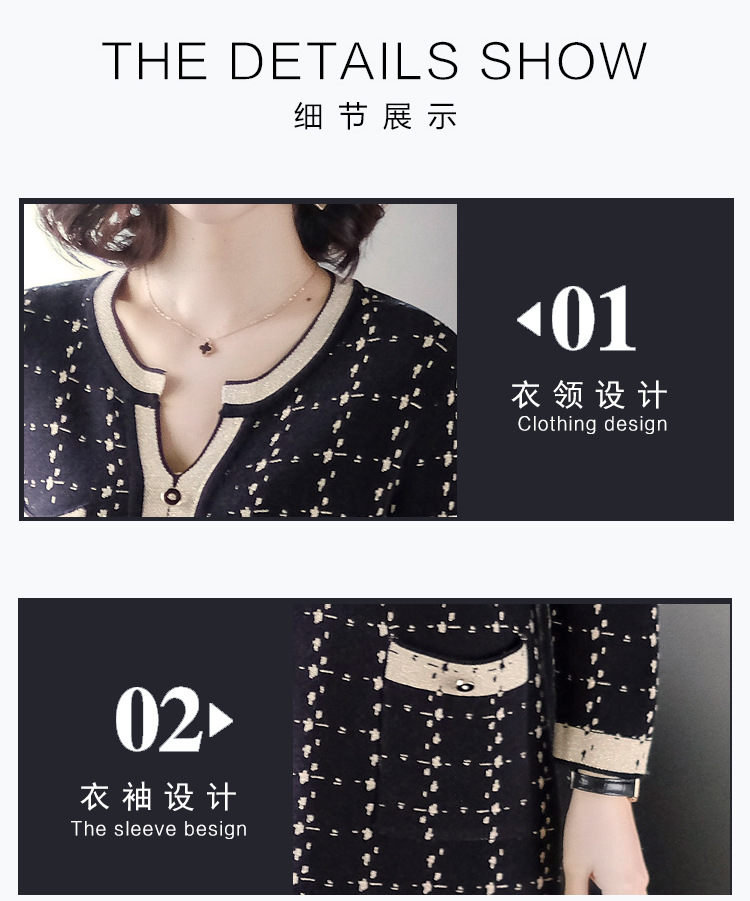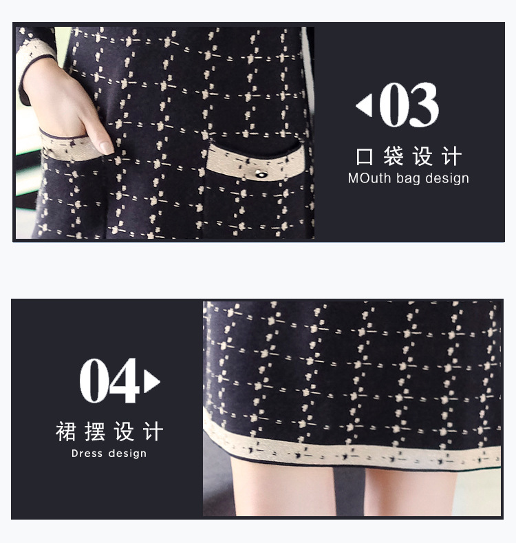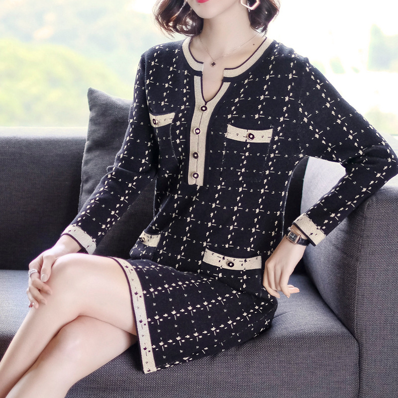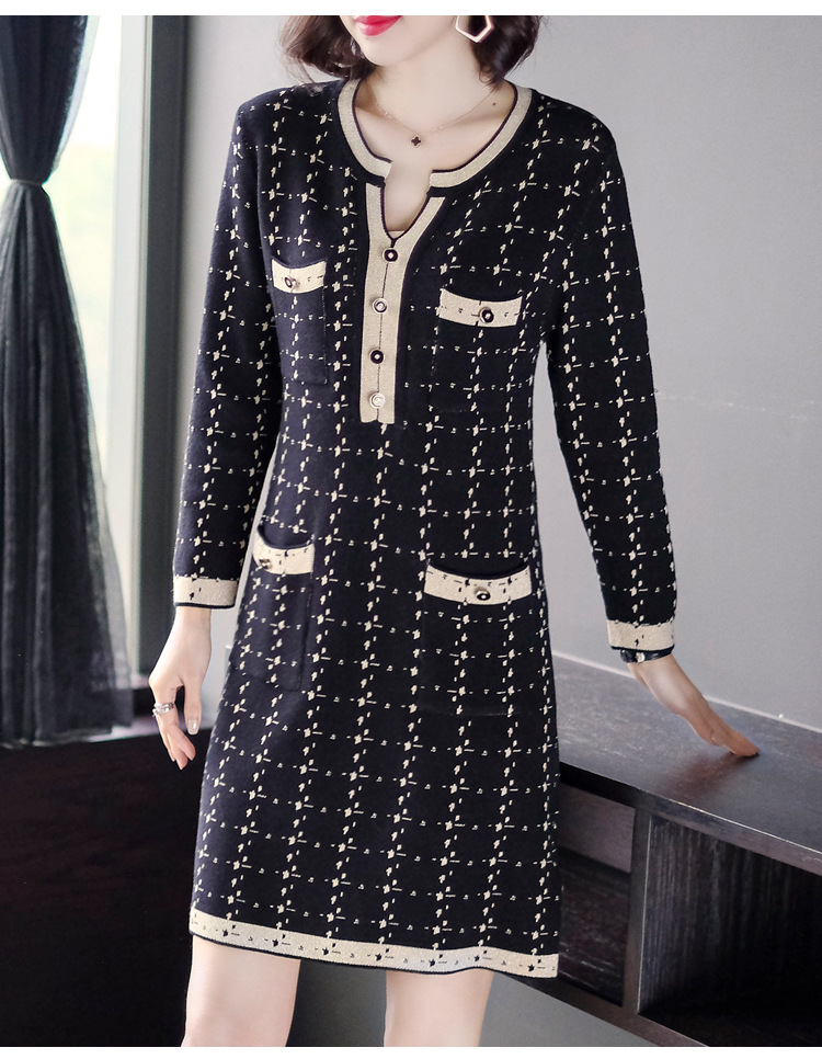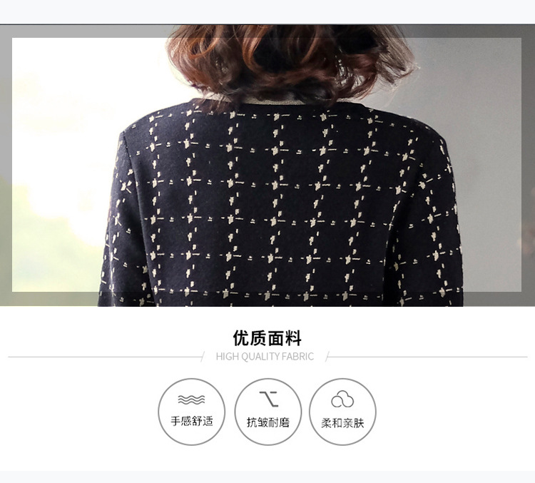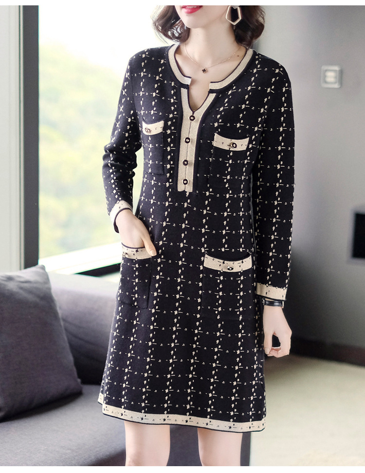 NYL-4633003新款格子长袖V领修身显瘦中长裙