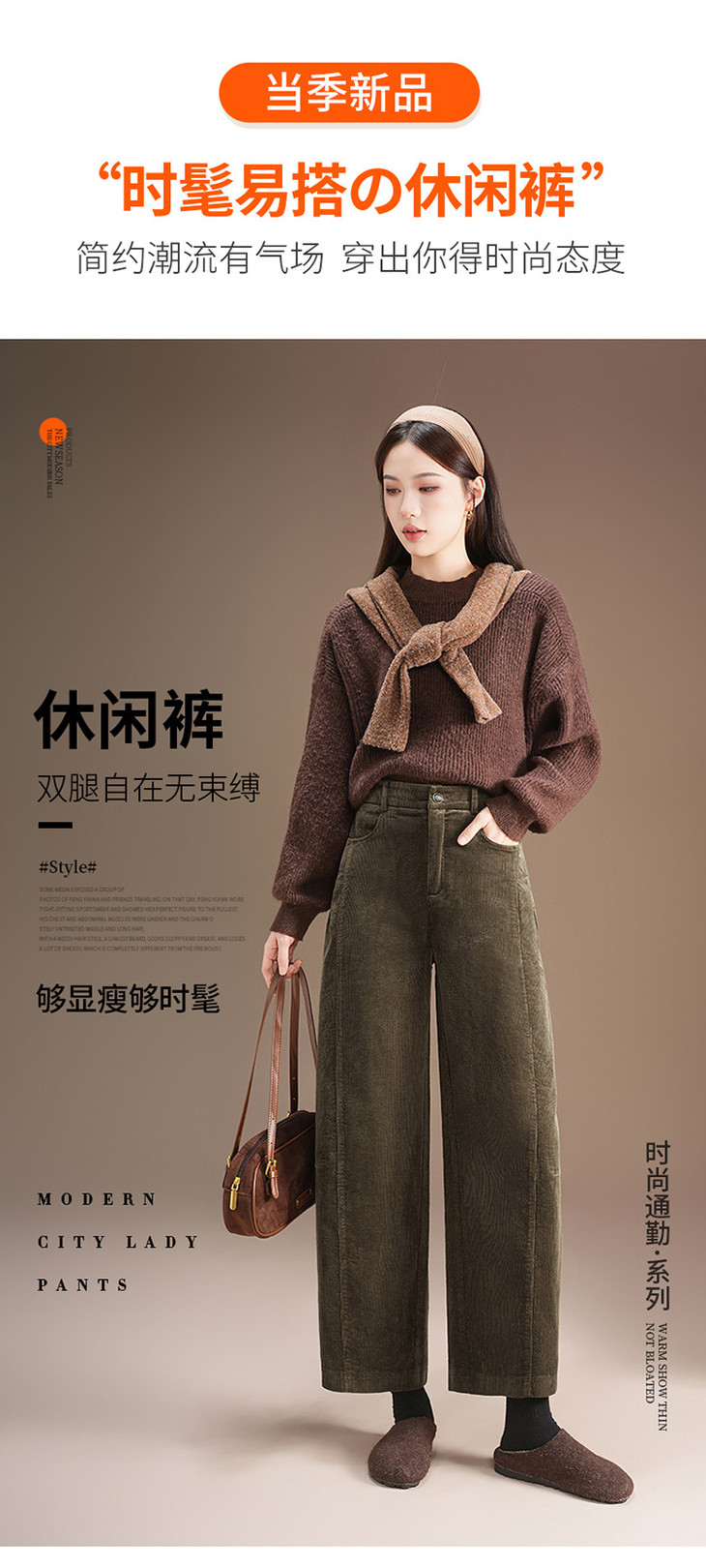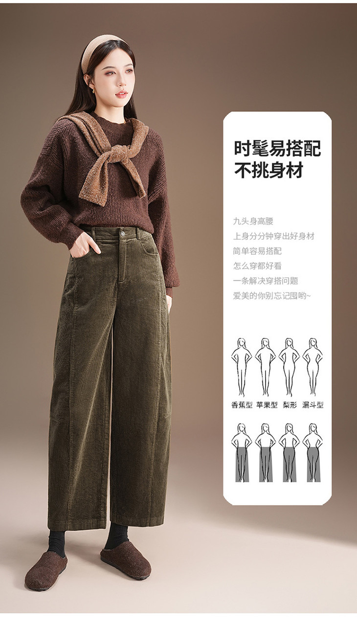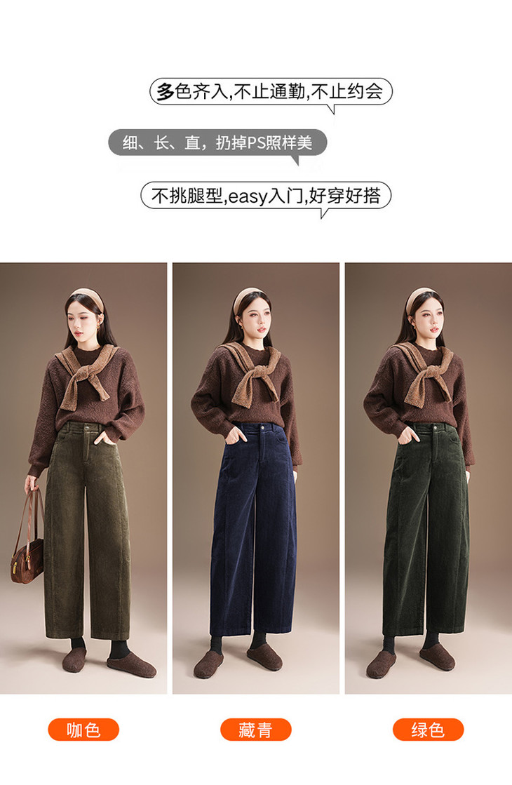 莫代尔灯心条绒裤厚款阔腿裤,气质休闲裤厚款九分裤MYX-ZL-9529-Y