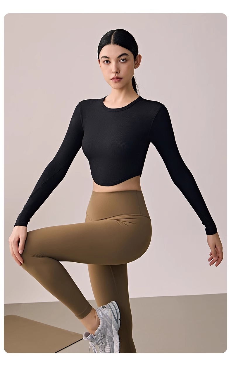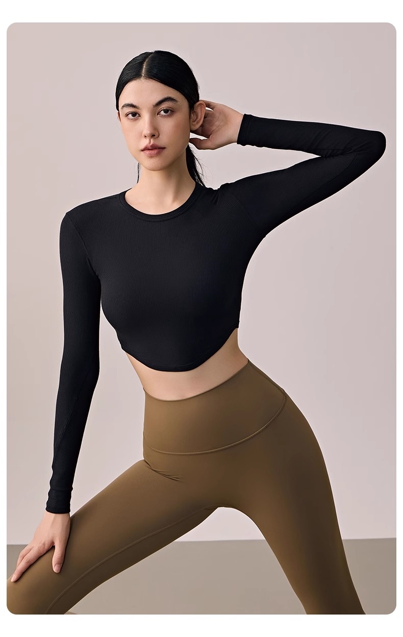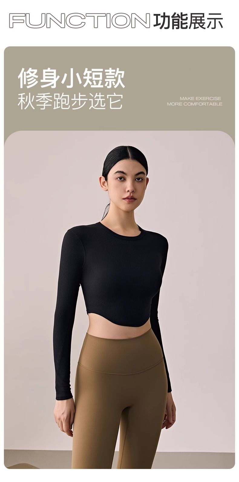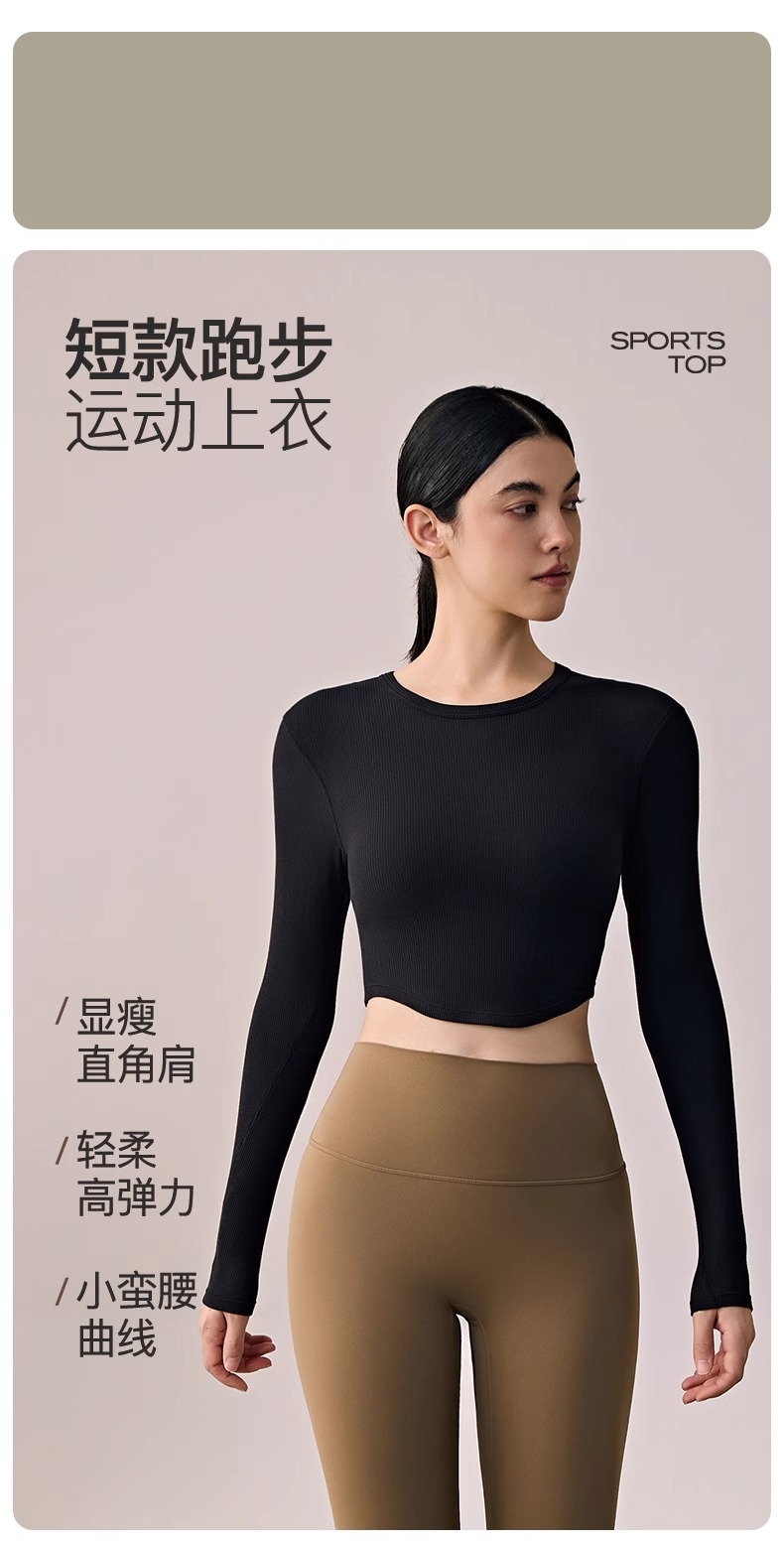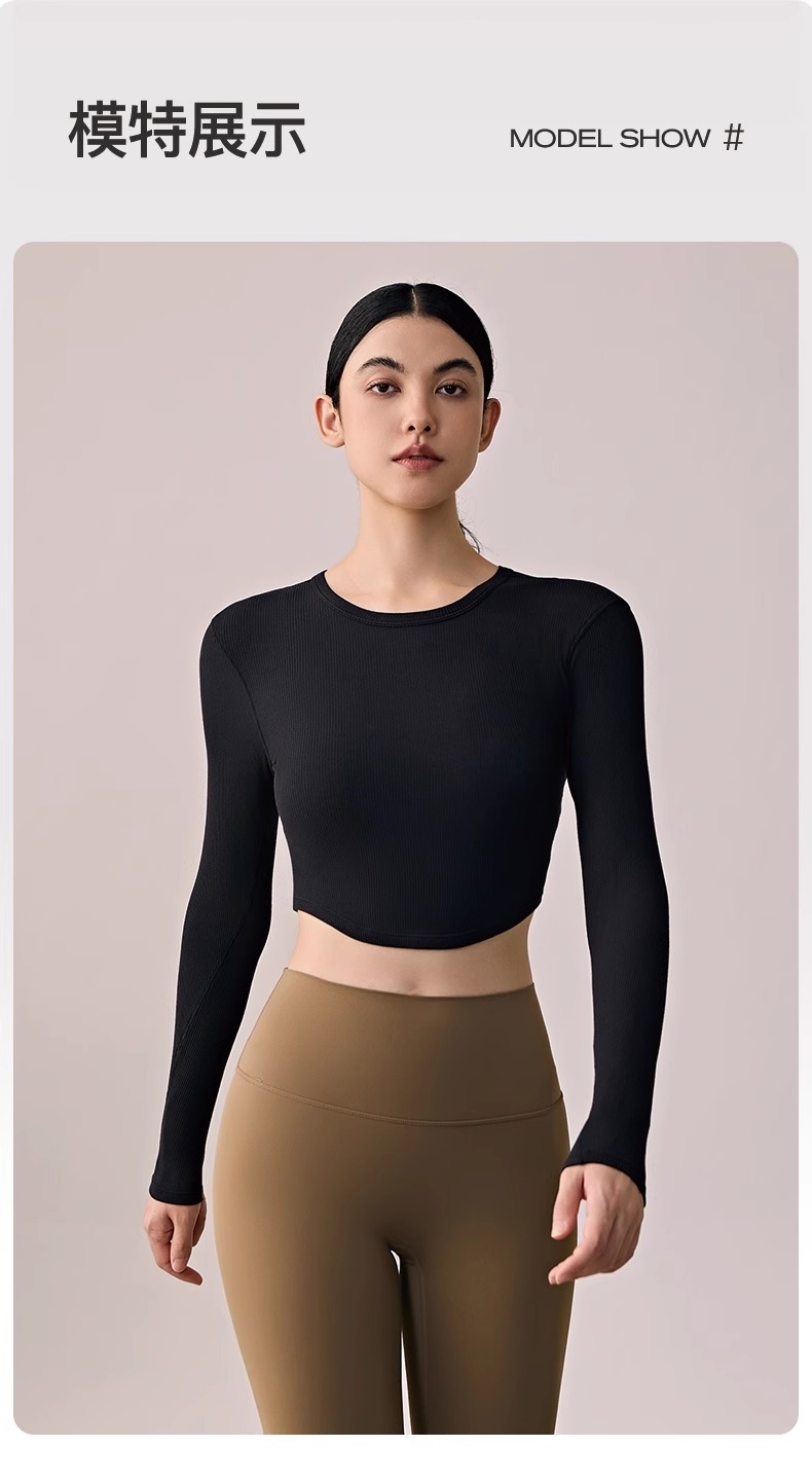 跃牌【周游世界系列】瑜伽服女螺纹短款瑜伽长袖修身运动上衣 TP0795