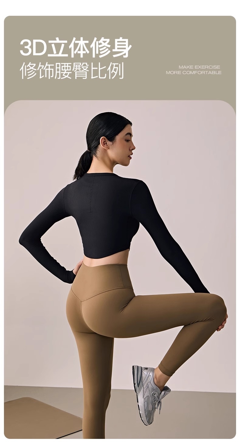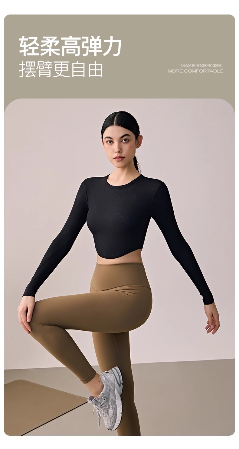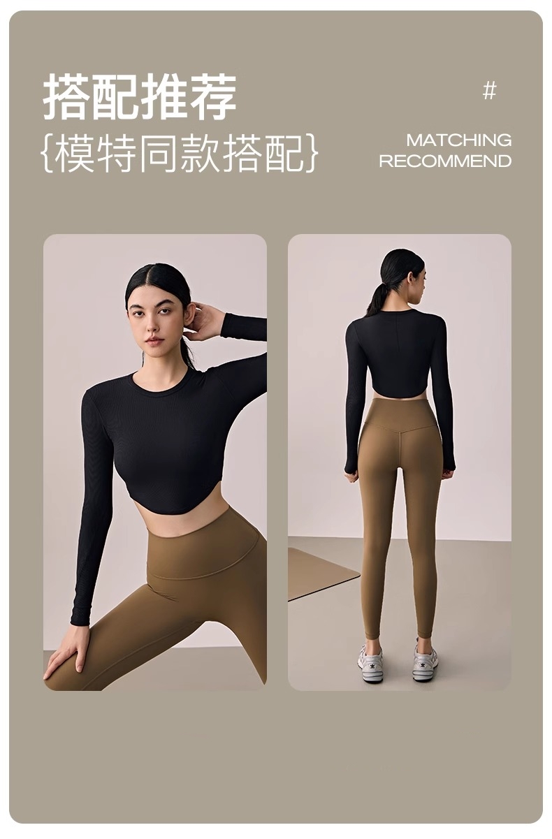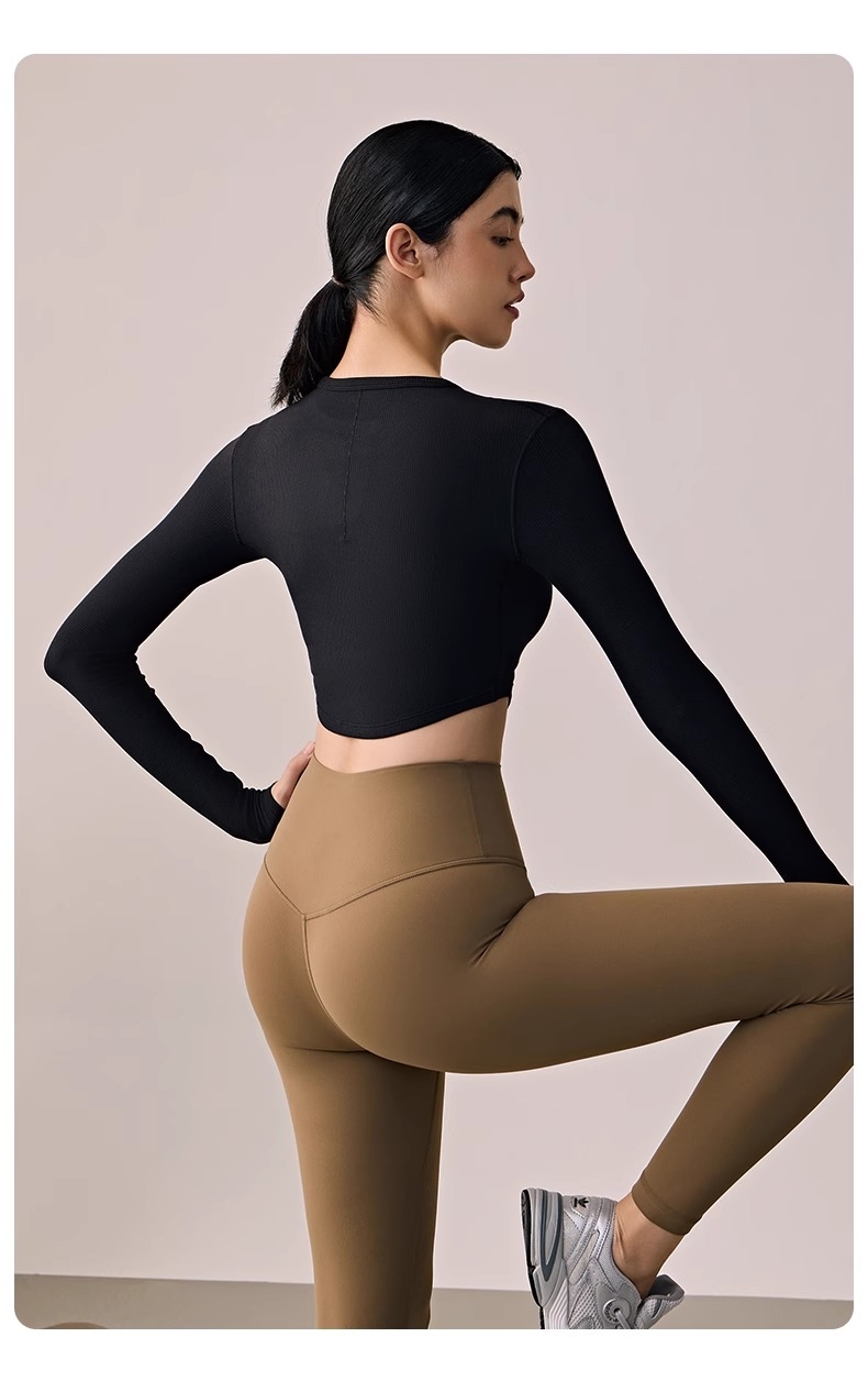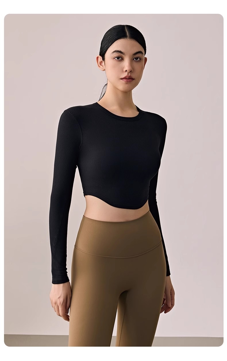 跃牌【周游世界系列】瑜伽服女螺纹短款瑜伽长袖修身运动上衣 TP0795